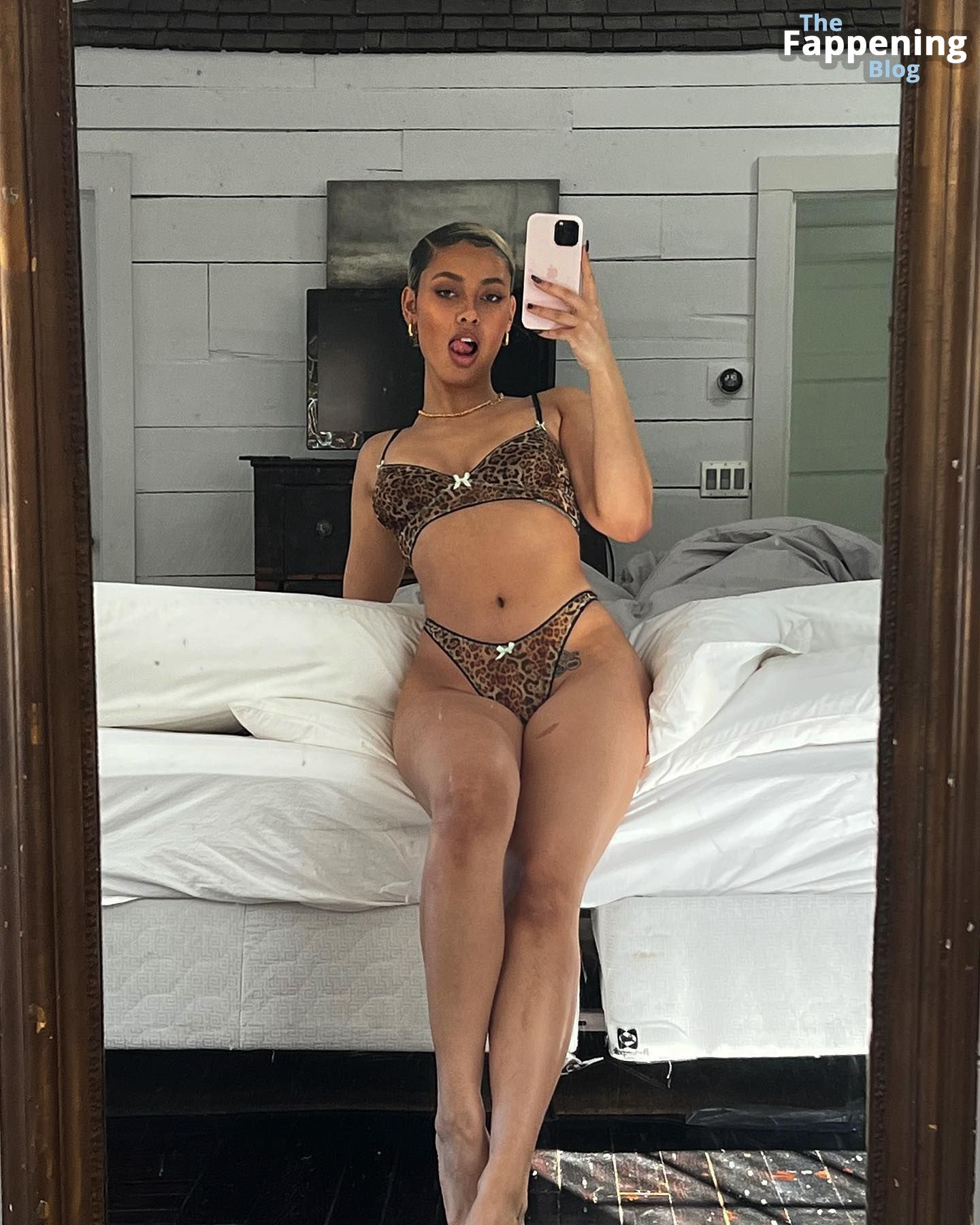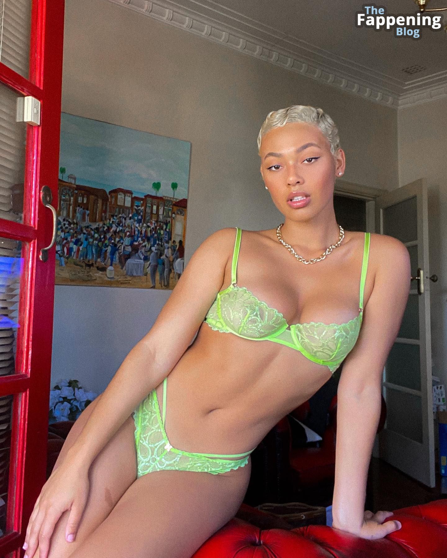 Mykeesha Nelson, una talentosa modelo británica, está robando los corazones de fans y profesionales de la industria de la moda con su belleza y gracia. Recientemente, fue noticia cuando aparecieron fotos en línea de ella usando un atrevido vestido rosa transparente, que revelaba sus pechos desnudos. Estas imágenes semi-desnudas fueron bien recibidas por los admiradores de la modelo, quienes no podían dejar de elogiar su apariencia audaz y segura.