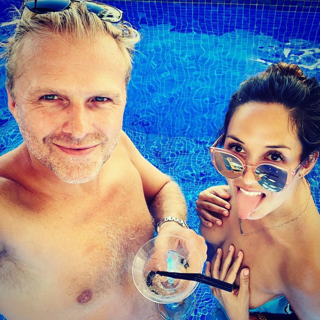 Myleene Klass compartió algunas fotos sexys y con el torso descubierto (cubierto) en Instagram (octubre de 2018). ¡La superestrella de 40 años se divirtió mucho en la piscina!