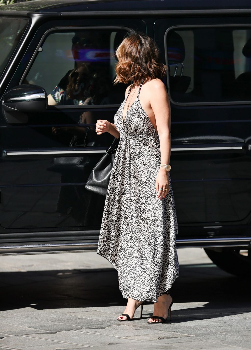 Myleene Klass lleva un vestido maxi con escote pronunciado y estampado animal en Londres (39 Fotos + Video)