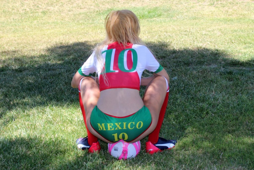 Nadeea Volianova celebra el Cinco de Mayo con una sesión de fotos de fútbol caliente para sus fans mexicanos, 04/05/2017. Nadeea Volianova es una estrella pop ruso-francesa, actriz y DJ. Edad – 30.