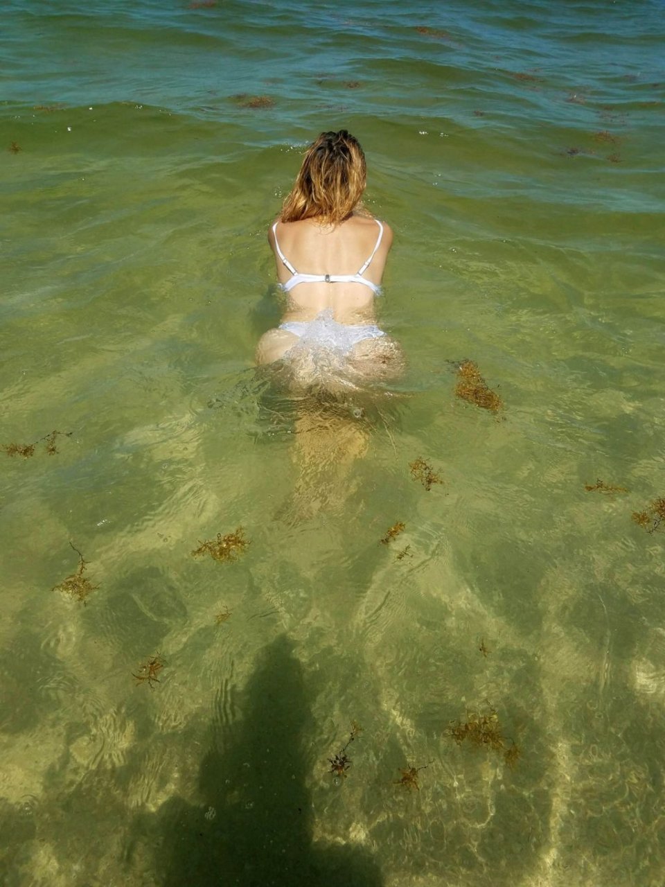 La estrella del pop ruso Nadeea Volianova fue vista con un diminuto bikini blanco en la playa de Cannes, 22/05/2019.