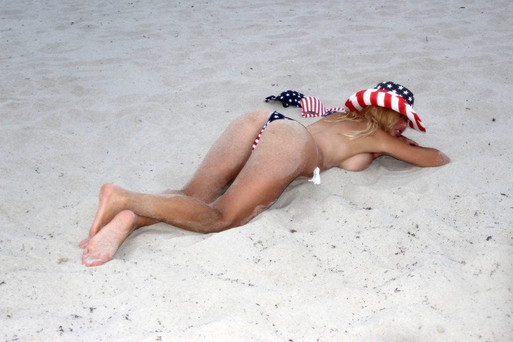 La estrella del pop ruso/francesa de 30 años Nadeea Volianova muestra su lealtad a los EE.UU. este fin de semana del 4 de julio con un bikini escaso de Estrellas y Rayas, Miami Beach, 03/07/2017.