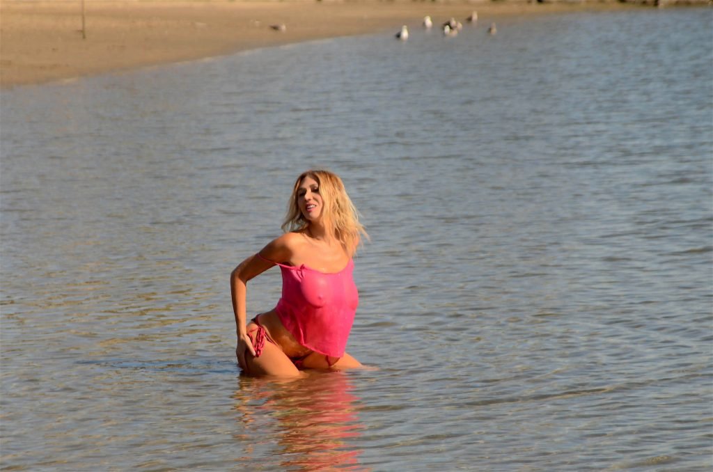 La estrella del pop rusa Nadeea Volianova (31) fue vista con una blusa escandalosamente transparente y fue captada cambiándose de ropa en Marina Del Rey, 27/06/2018.