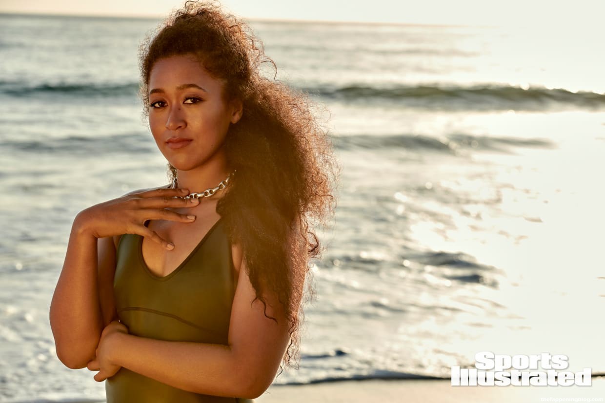 La deportista sin busto Naomi Osaka posa con trajes de baño de la colección Frankies Bikinis en la playa de Malibu en una sesión fotográfica de Yu Tsai para la edición de Trajes de Baño 2021 de Sports Illustrated.
