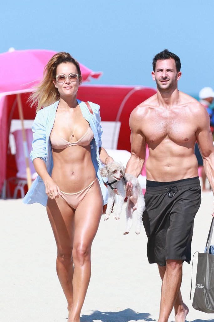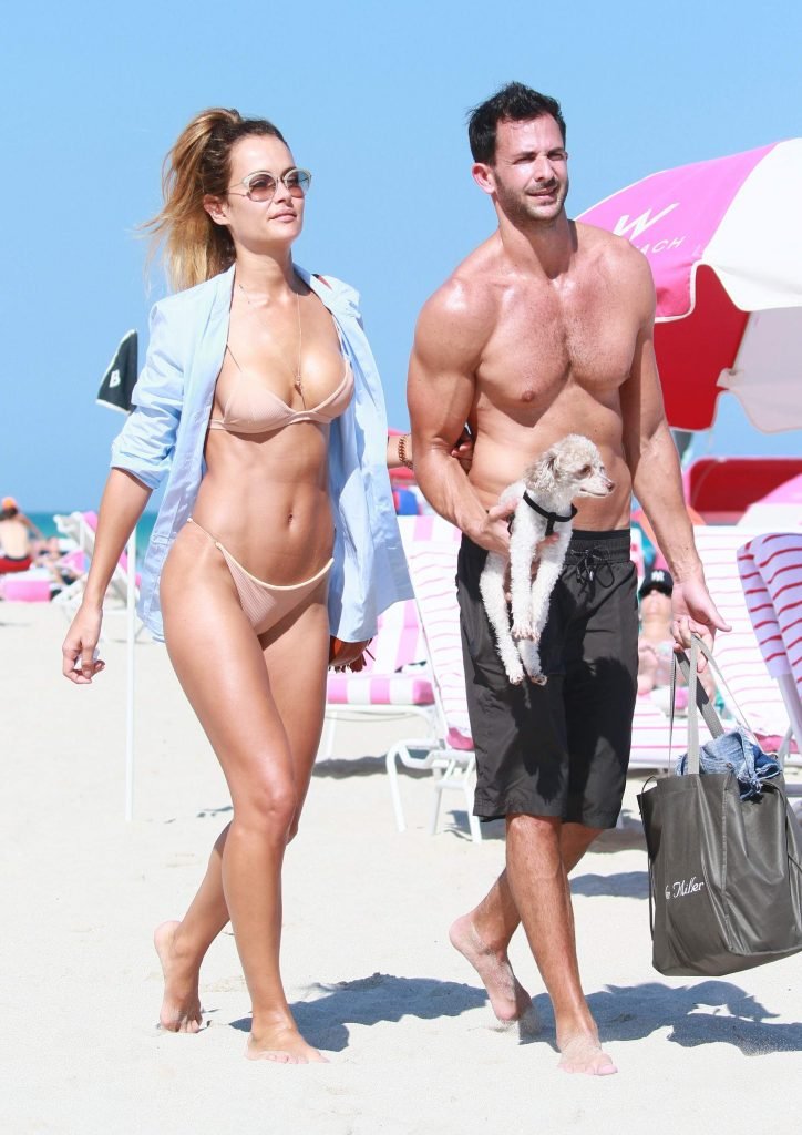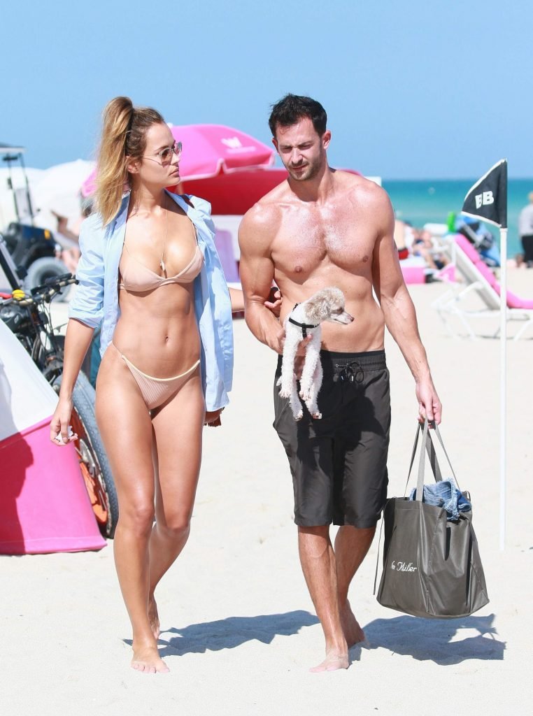 Natalia Borges lleva un bikini diminuto con su novio y cachorro en la playa de Miami, 10/03/2017. Natalia Borges es una modelo de Brasil. Edad: 31 (nacida el 25 de noviembre de 1985).