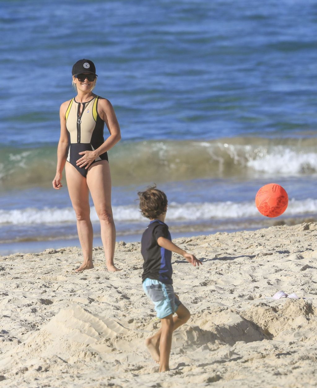 Nat Bass y su esposo Cameron McGlinchey dieron un rápido baño en el océano y jugaron algunos juegos en la arena con sus hijos, Harper y Hendrix. Nat, de 44 años, lucía sensacional, mostrando su figura en forma con un traje de baño deportivo.