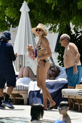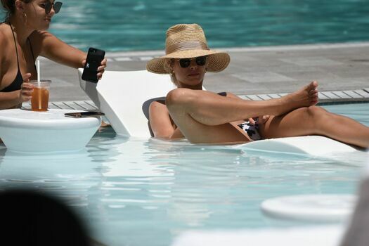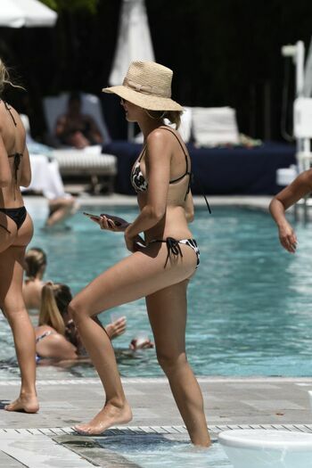 Model Natalie Roser fue vista disfrutando de un día soleado con un bikini blanco y negro en Miami Beach, 10/07/2019.
