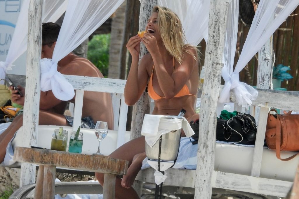 Natalie Roser disfruta de un tiempo libre con su novio en Tulum, 05/06/2019. Más tarde por la tarde, la modelo australiana posó para fotos sexys con sus amigas en bikini mientras se relajaba en la playa y bebía cócteles.