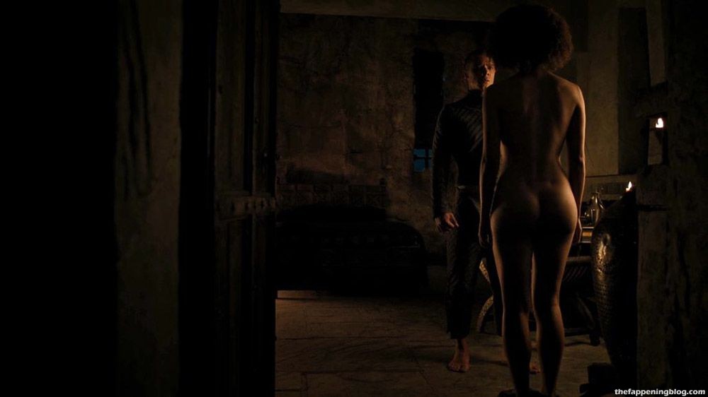Nathalie Emmanuel’s Paparazzi photos on the set of Games of Thrones are here. She showed naked tits and ass while preparing for the scene.
