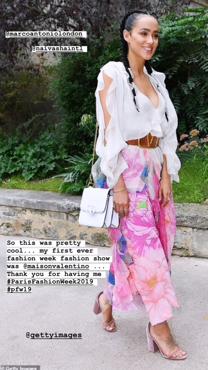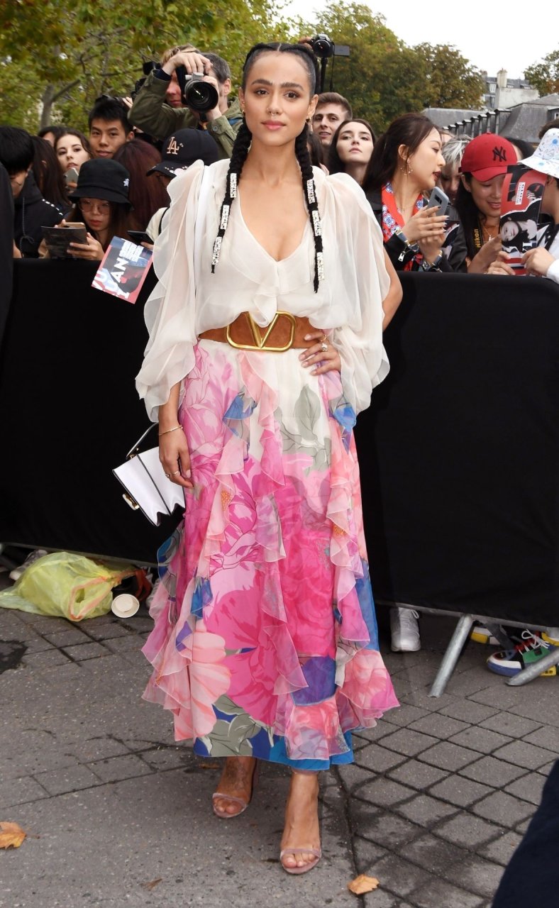 La actriz Nathalie Emmanuel llega al desfile de Valentino Womenswear Primavera/Verano 2020 como parte de la Semana de la Moda de París, 29/09/2019.