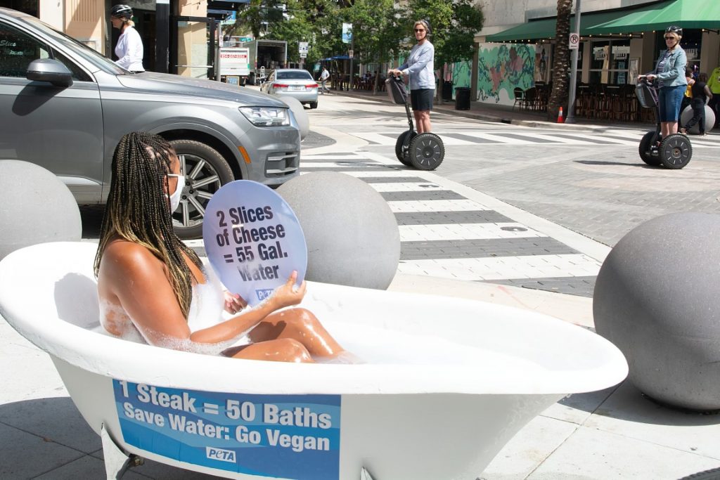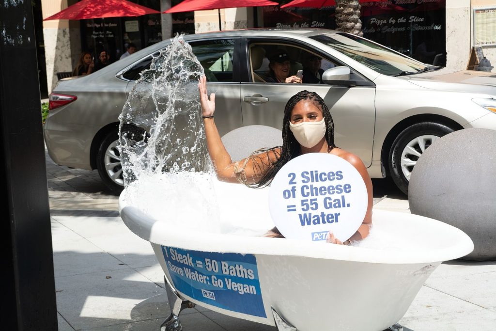 PETA insta a la gente a volverse vegana en un esfuerzo por limitar el uso de agua y ayudar a combatir el cambio climático.