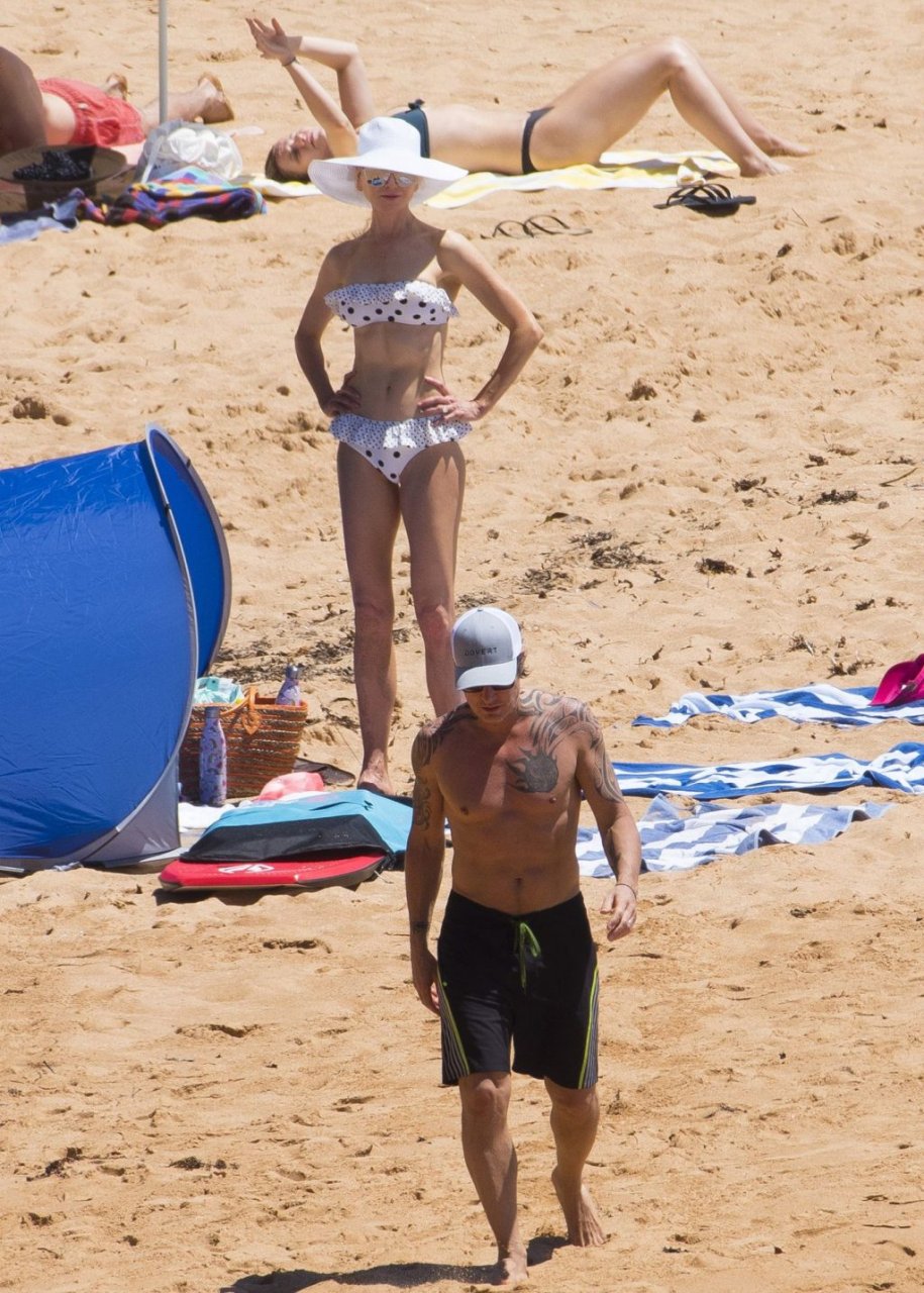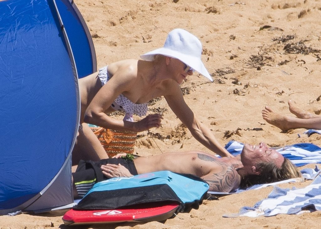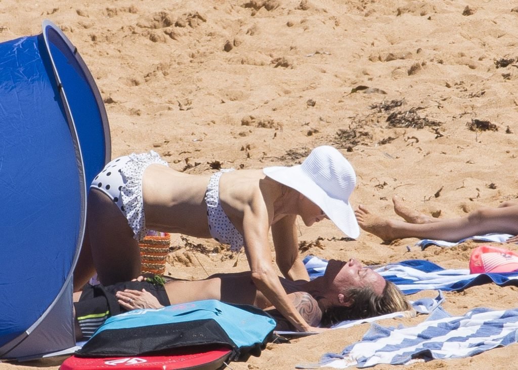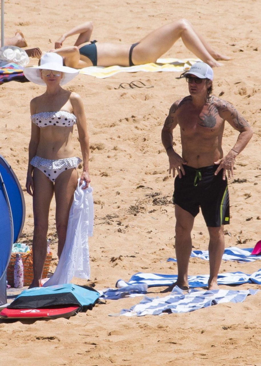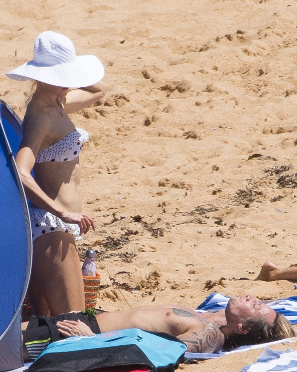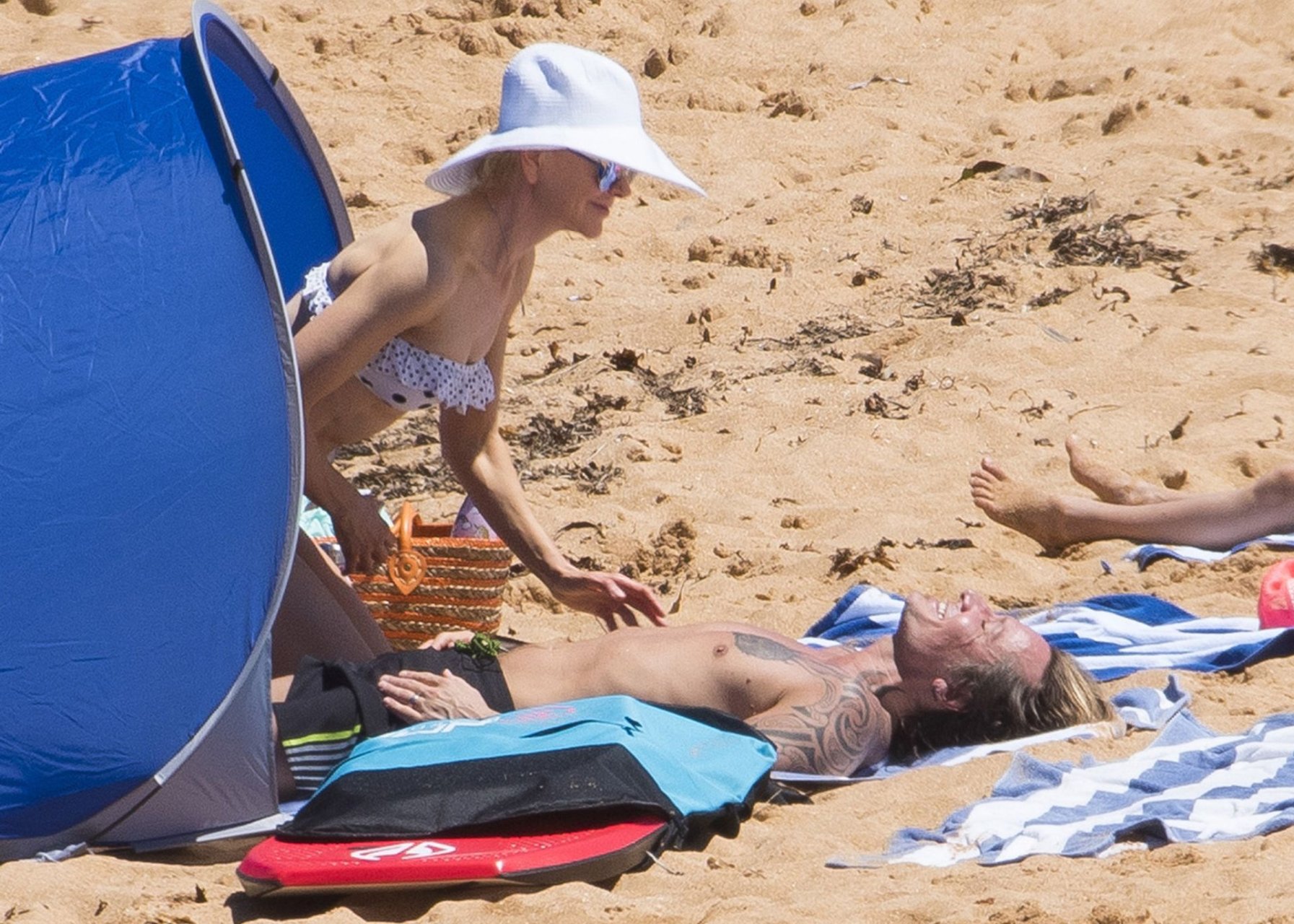 La actriz Nicole Kidman (51) fue fotografiada en un momento poco común vistiendo un bikini blanco con lunares durante la víspera de Navidad en Palm Beach, Sídney, Australia, con su esposo Keith Urban, 24/12/2018.