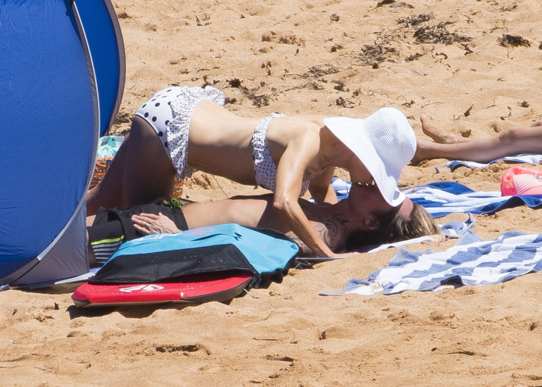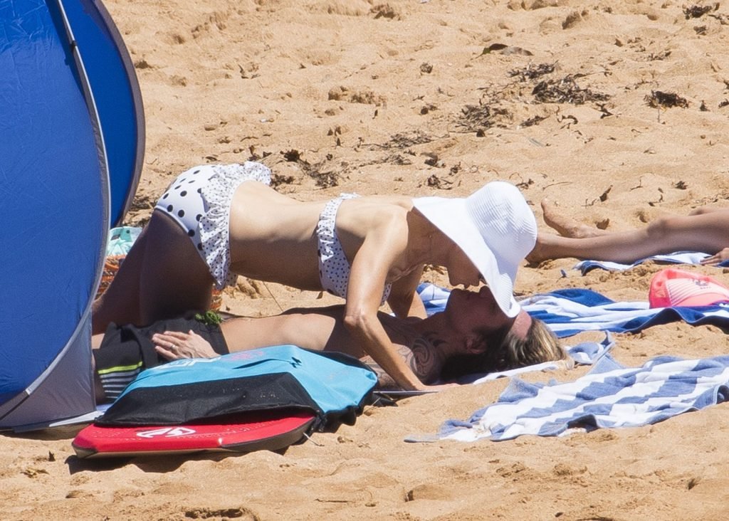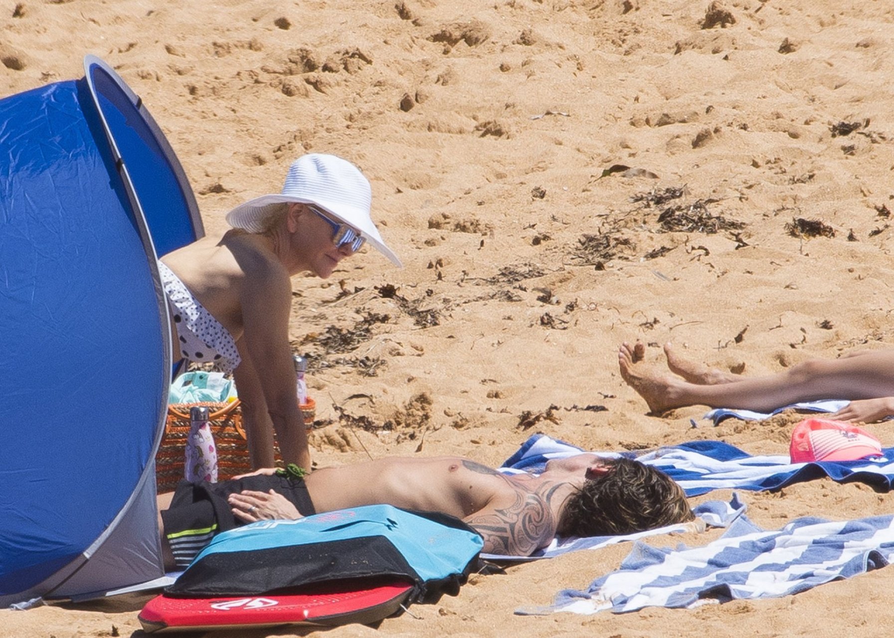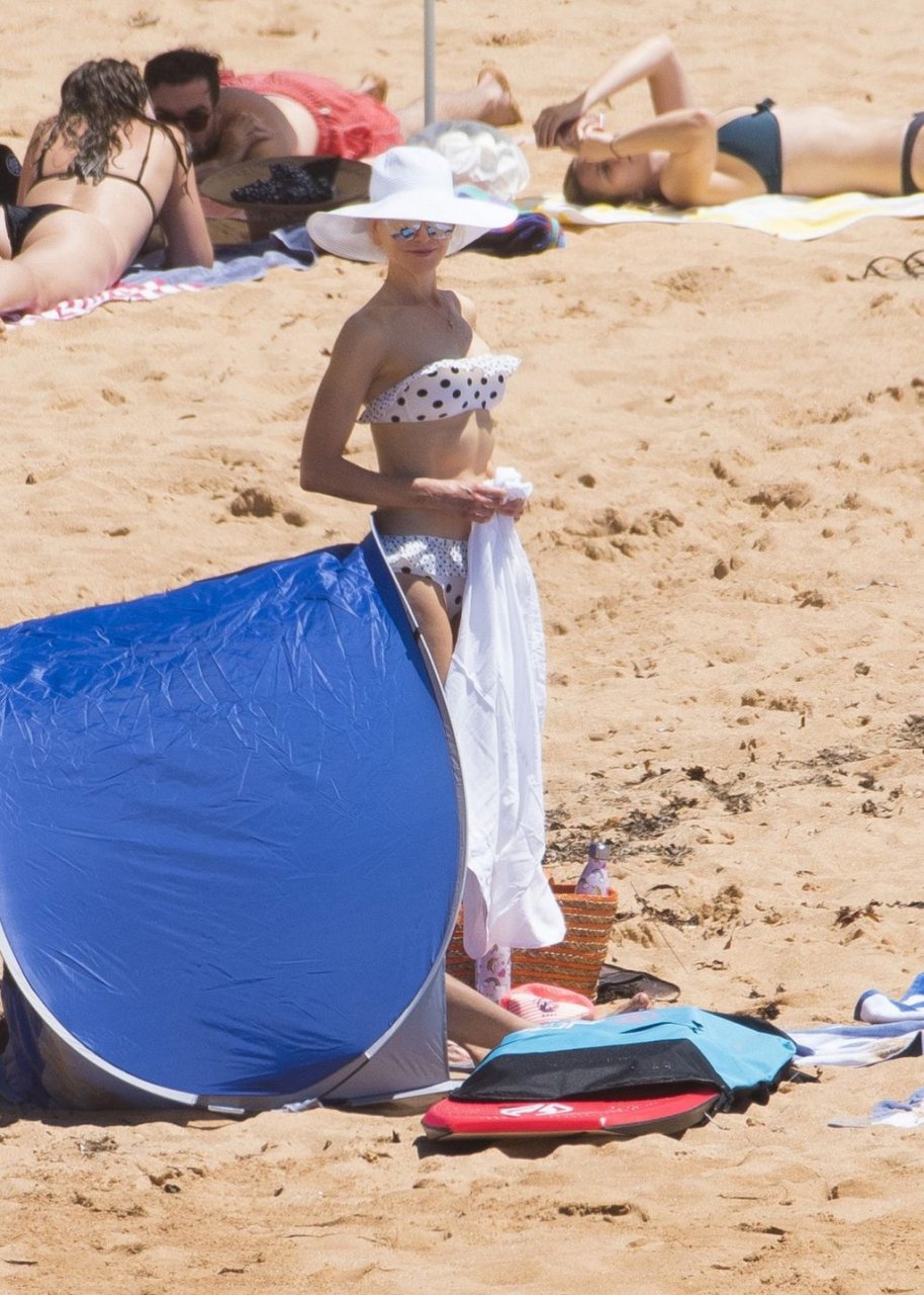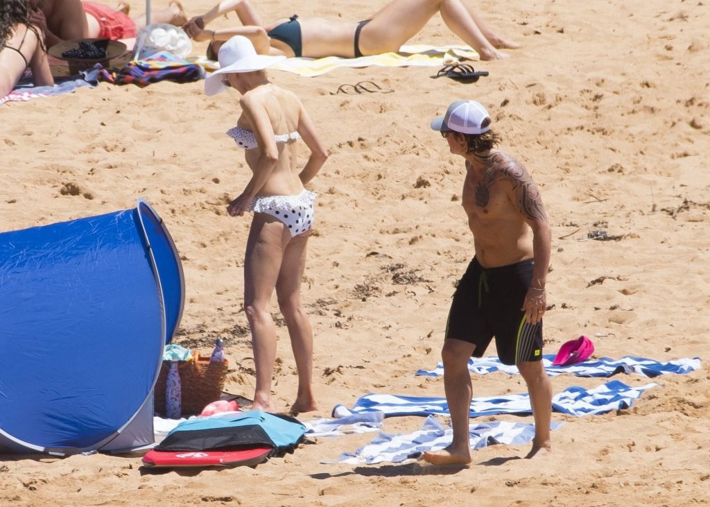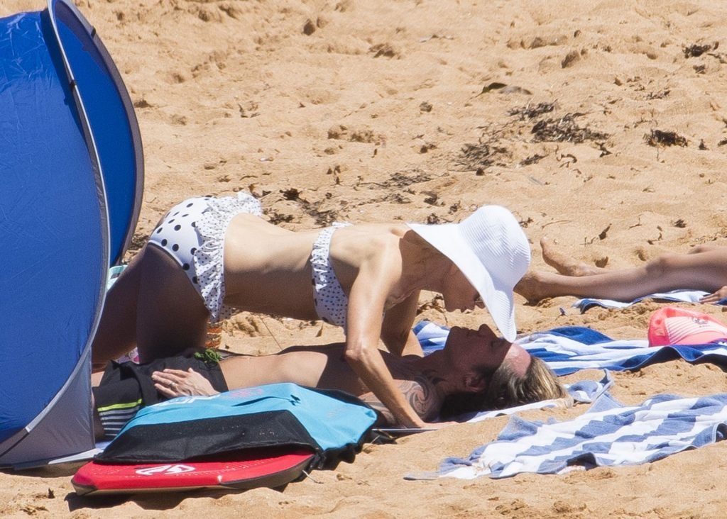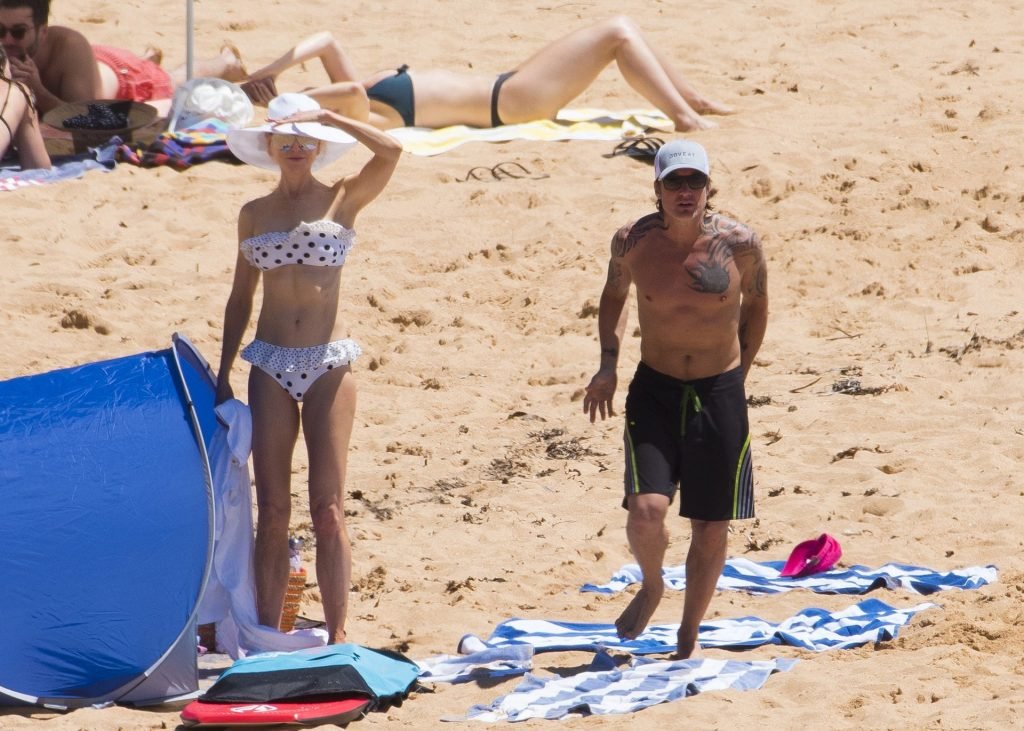 La actriz Nicole Kidman (51) fue fotografiada en un momento poco común vistiendo un bikini blanco con lunares durante la víspera de Navidad en Palm Beach, Sídney, Australia, con su esposo Keith Urban, 24/12/2018.
