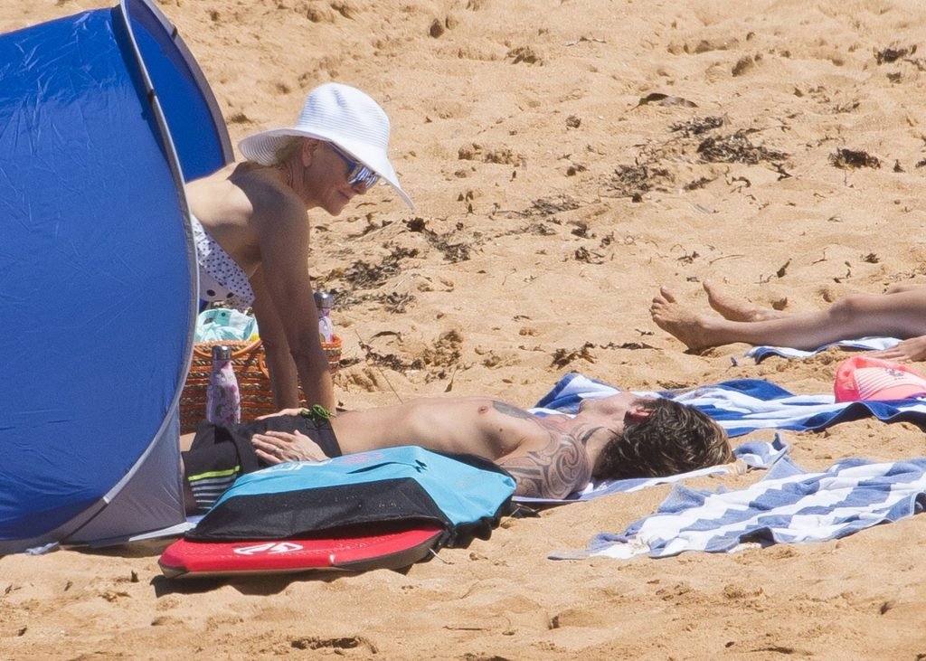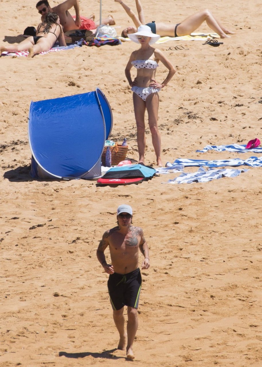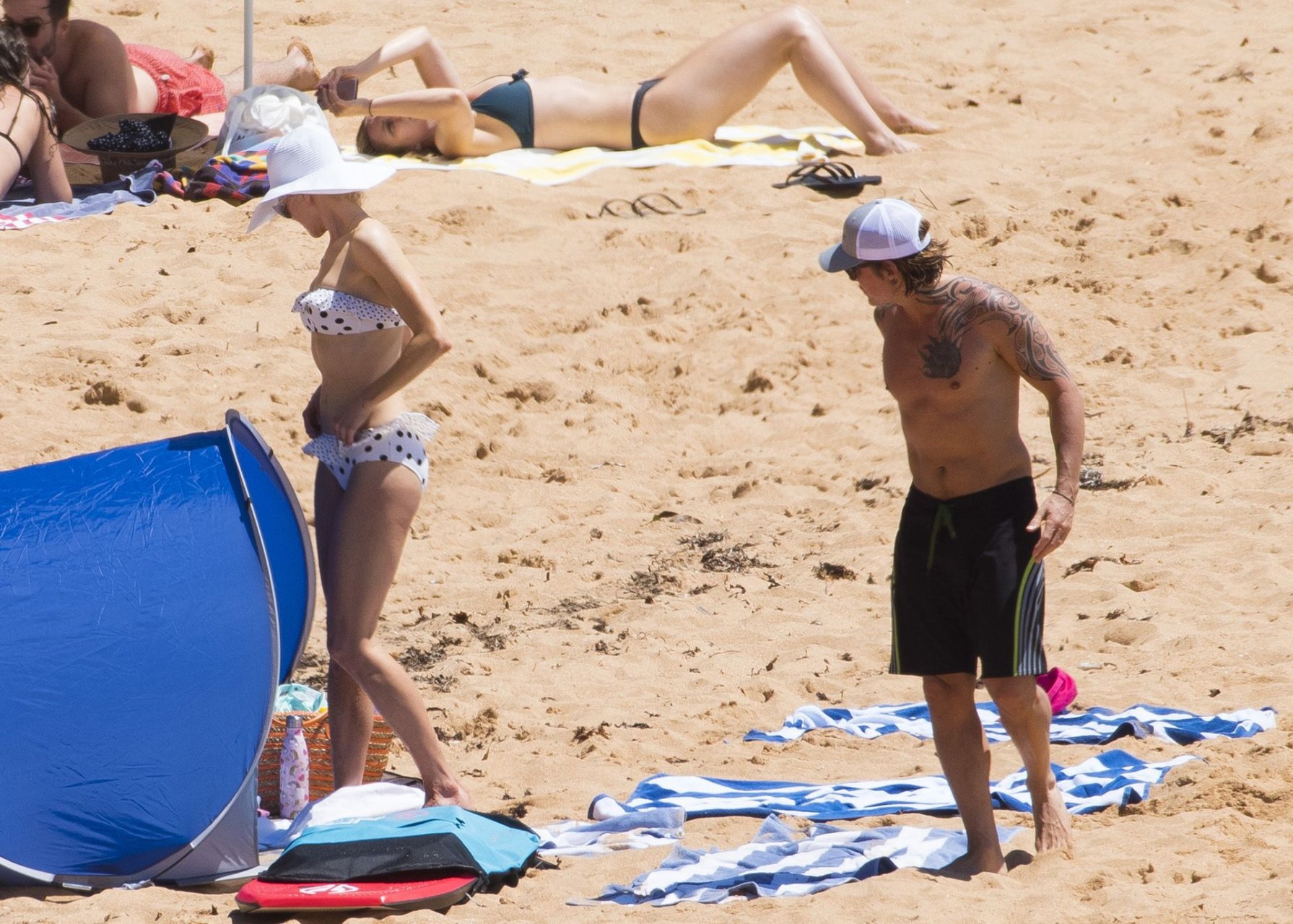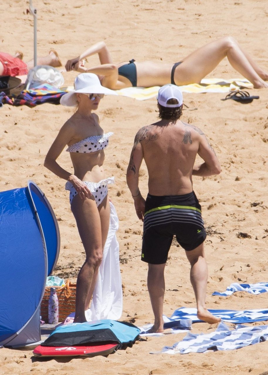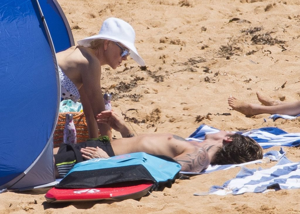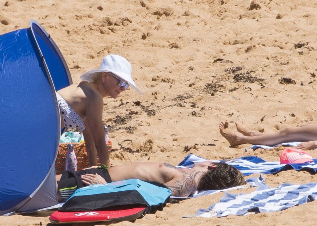 La actriz Nicole Kidman (51) fue fotografiada en un momento poco común vistiendo un bikini blanco con lunares durante la víspera de Navidad en Palm Beach, Sídney, Australia, con su esposo Keith Urban, 24/12/2018.
