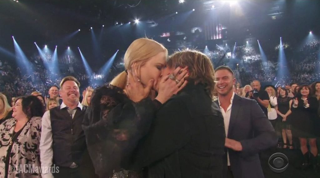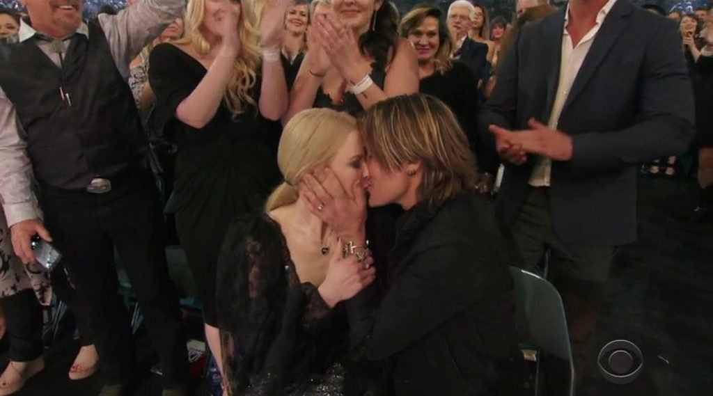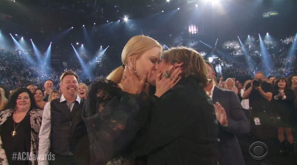 La actriz quedó momentáneamente con la boca abierta después de que Urban fuera finalmente nombrado Artista del Año, ¡tras haber sido nominado nueve veces anteriormente! La pareja se miró con sorpresa antes de abrazarse y compartir varios besos. Al subir al escenario, Urban comenzó su discurso de aceptación agradeciendo a Kidman y llamándola su “niña”.
