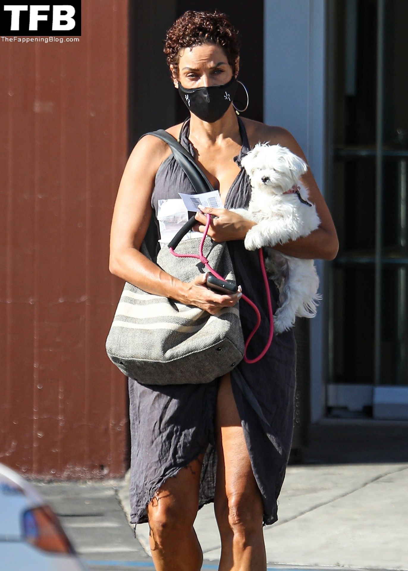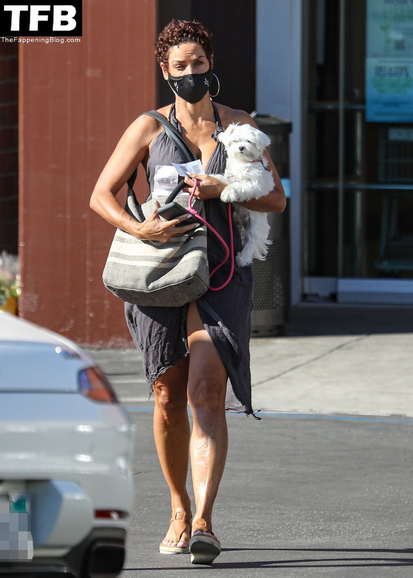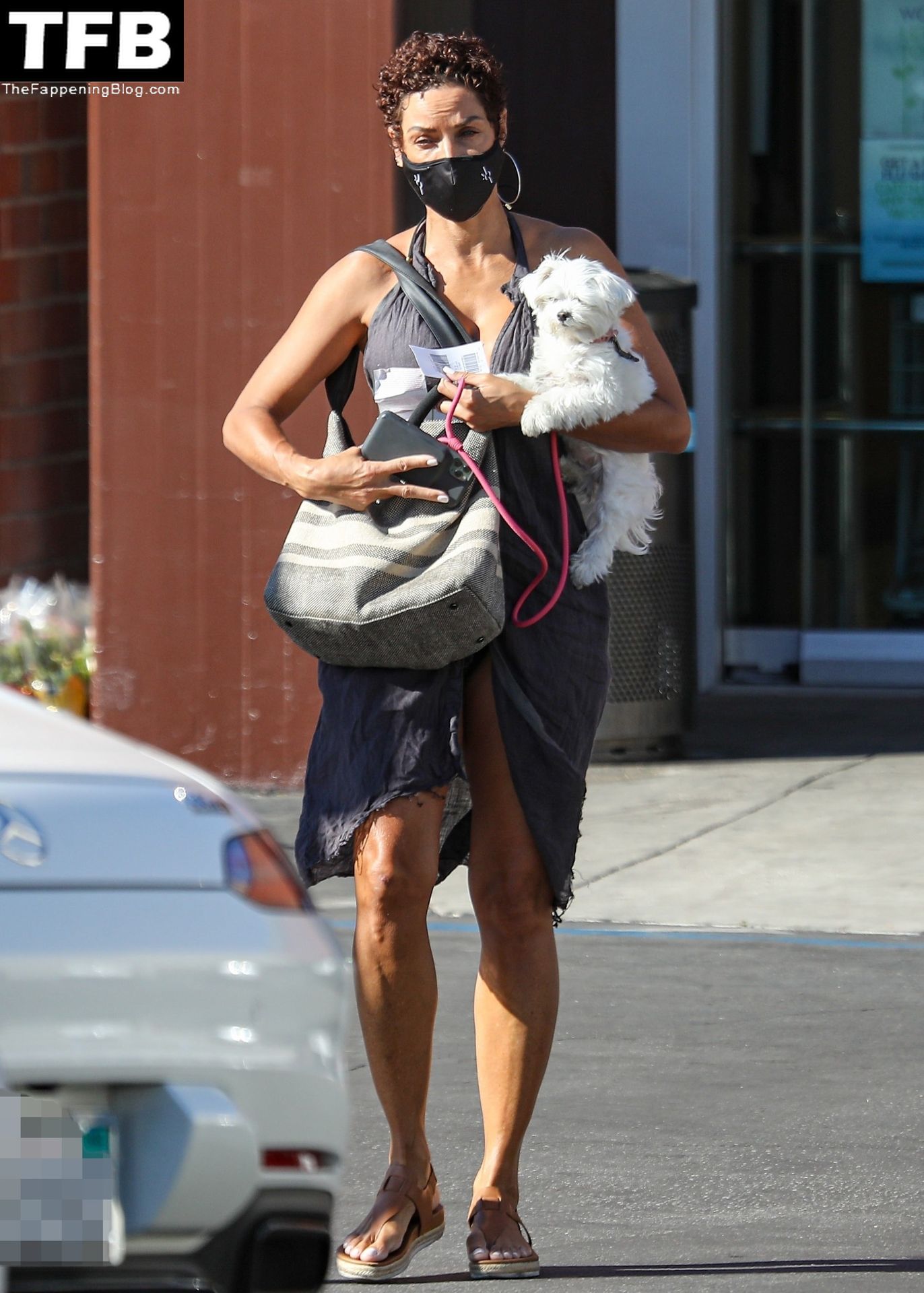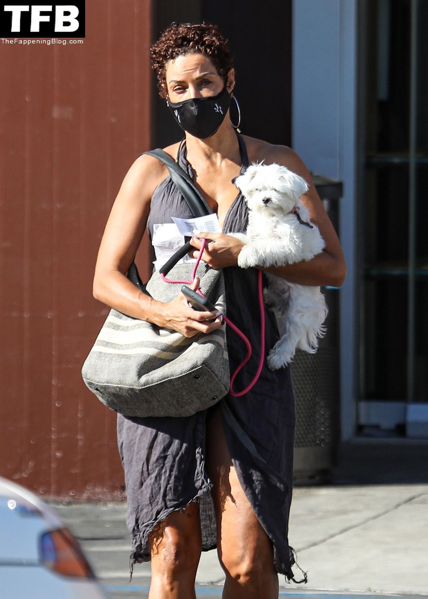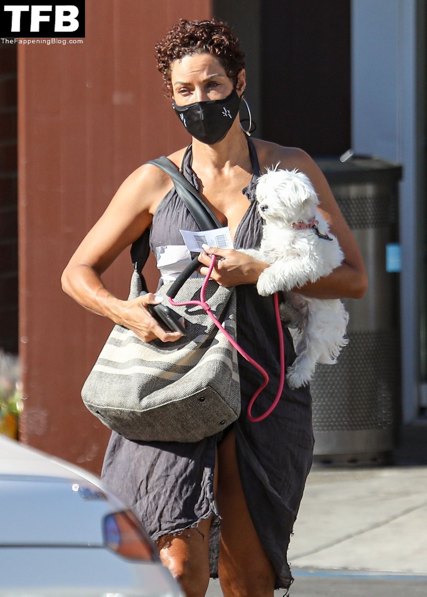 La exmodelo Nicole Murphy lleva a su perro a la tienda de mascotas en Beverly Hills por algunos esenciales, 28/11/2021.