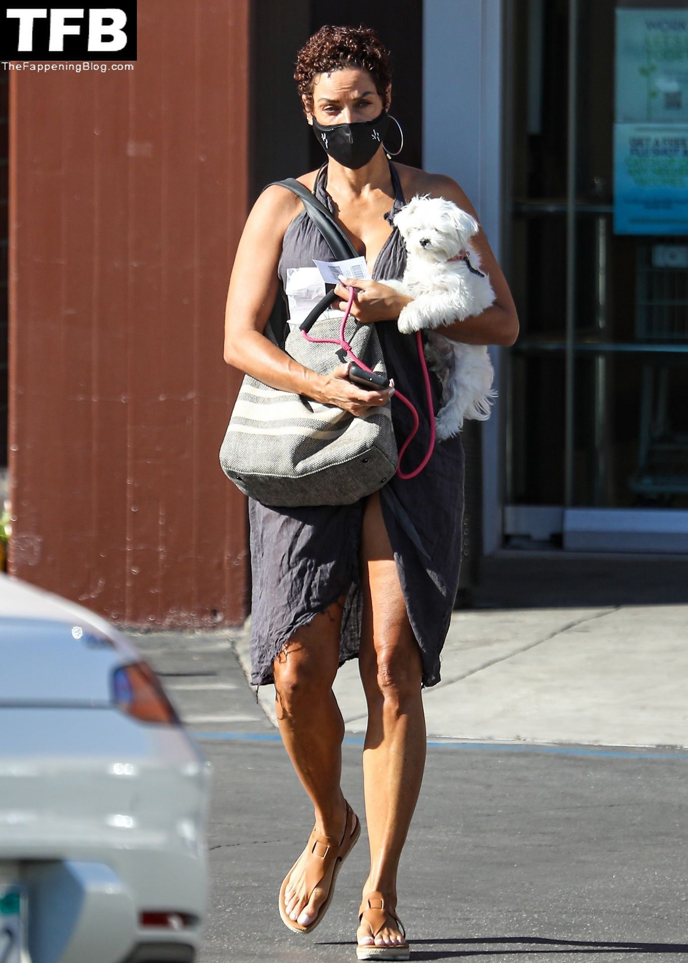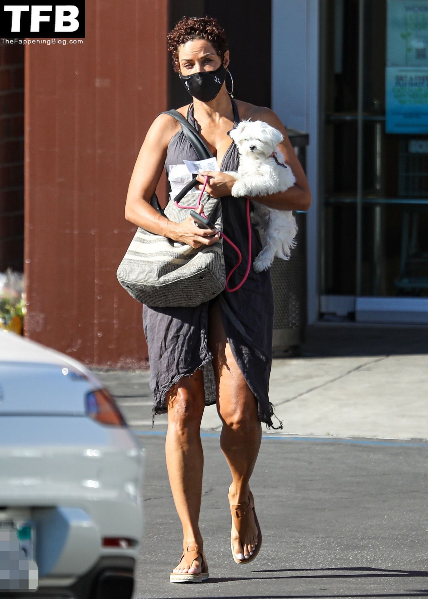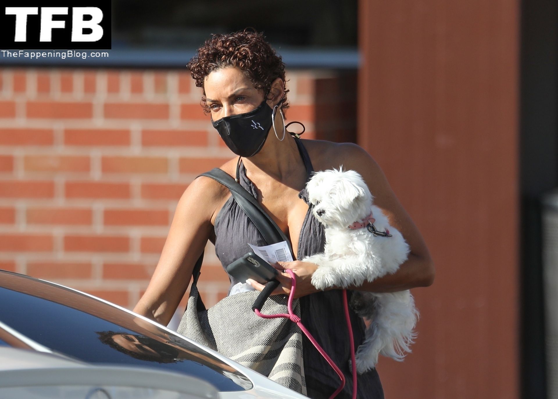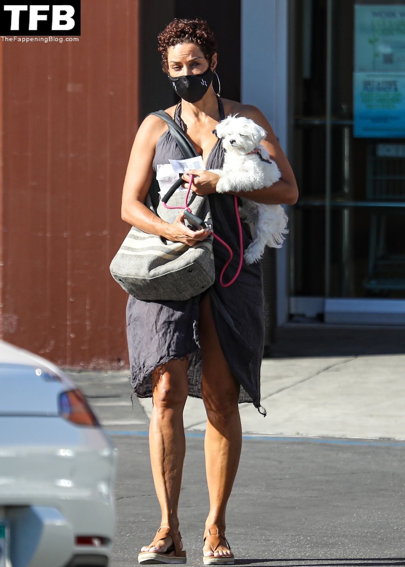 La exmodelo Nicole Murphy lleva a su perro a la tienda de mascotas en Beverly Hills por algunos esenciales, 28/11/2021.