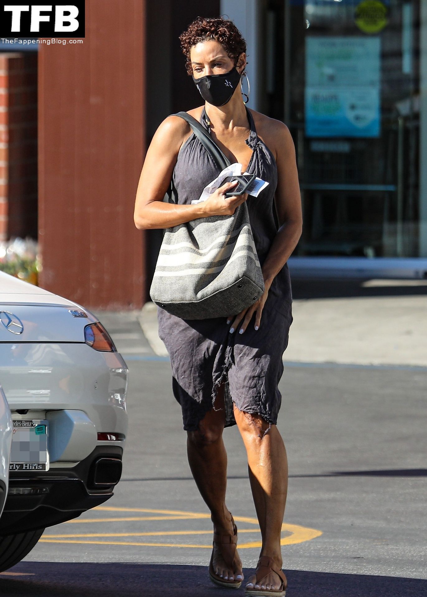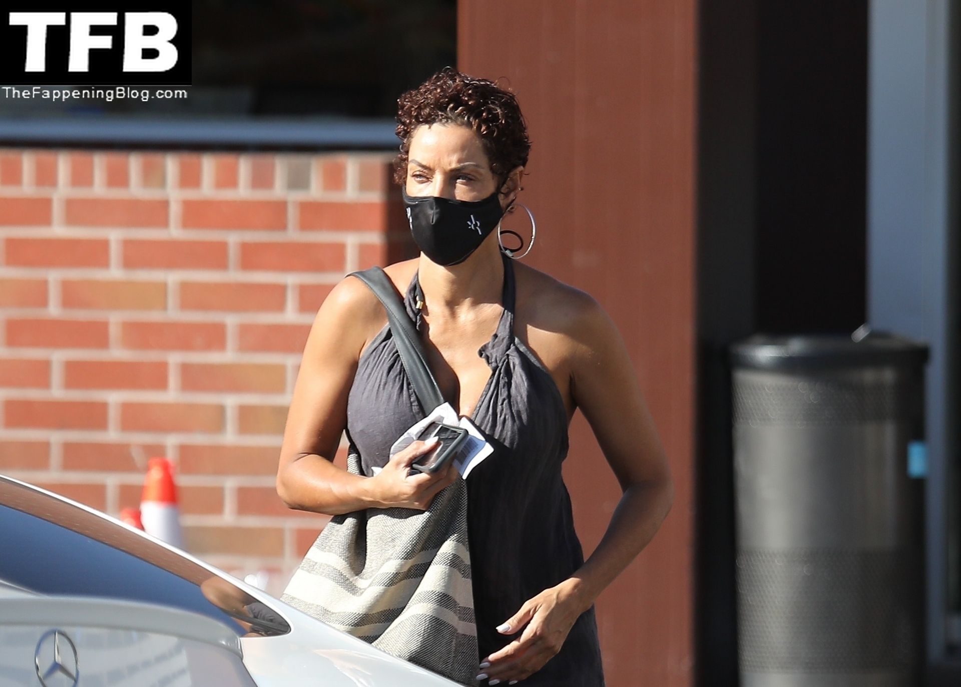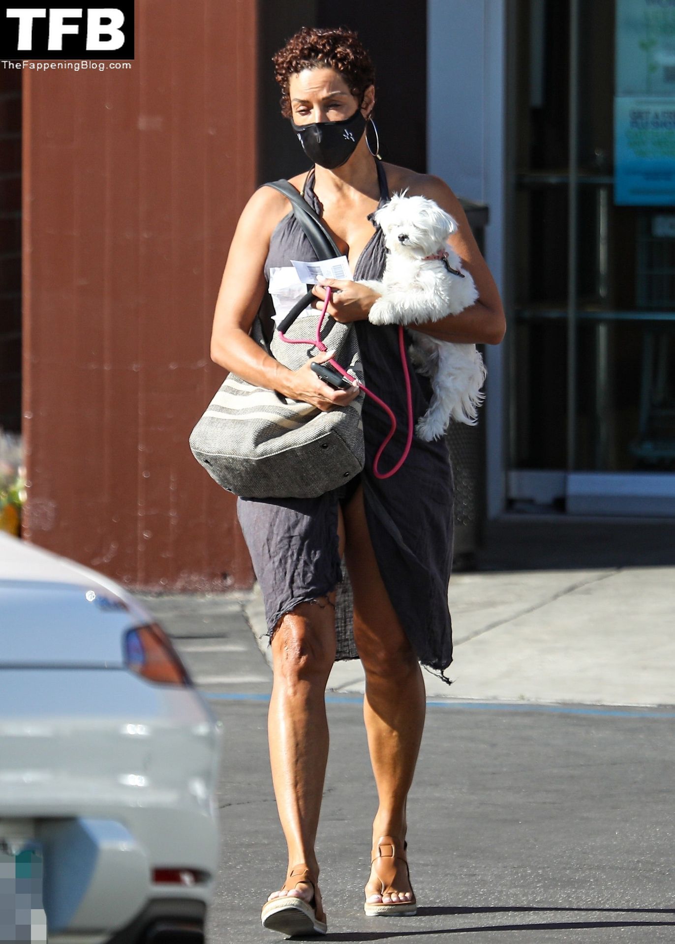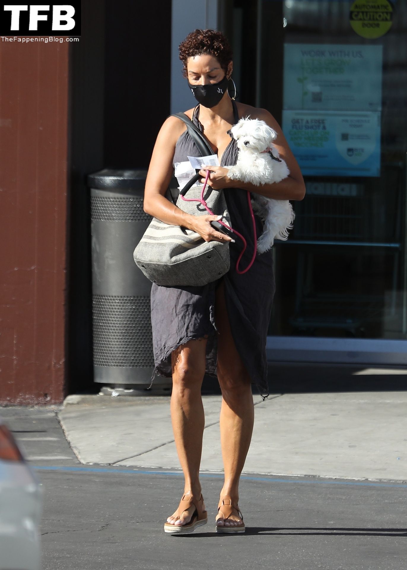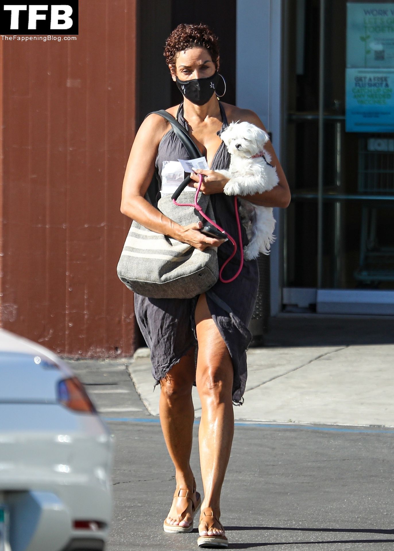 La exmodelo Nicole Murphy lleva a su perro a la tienda de mascotas en Beverly Hills por algunos esenciales, 28/11/2021.