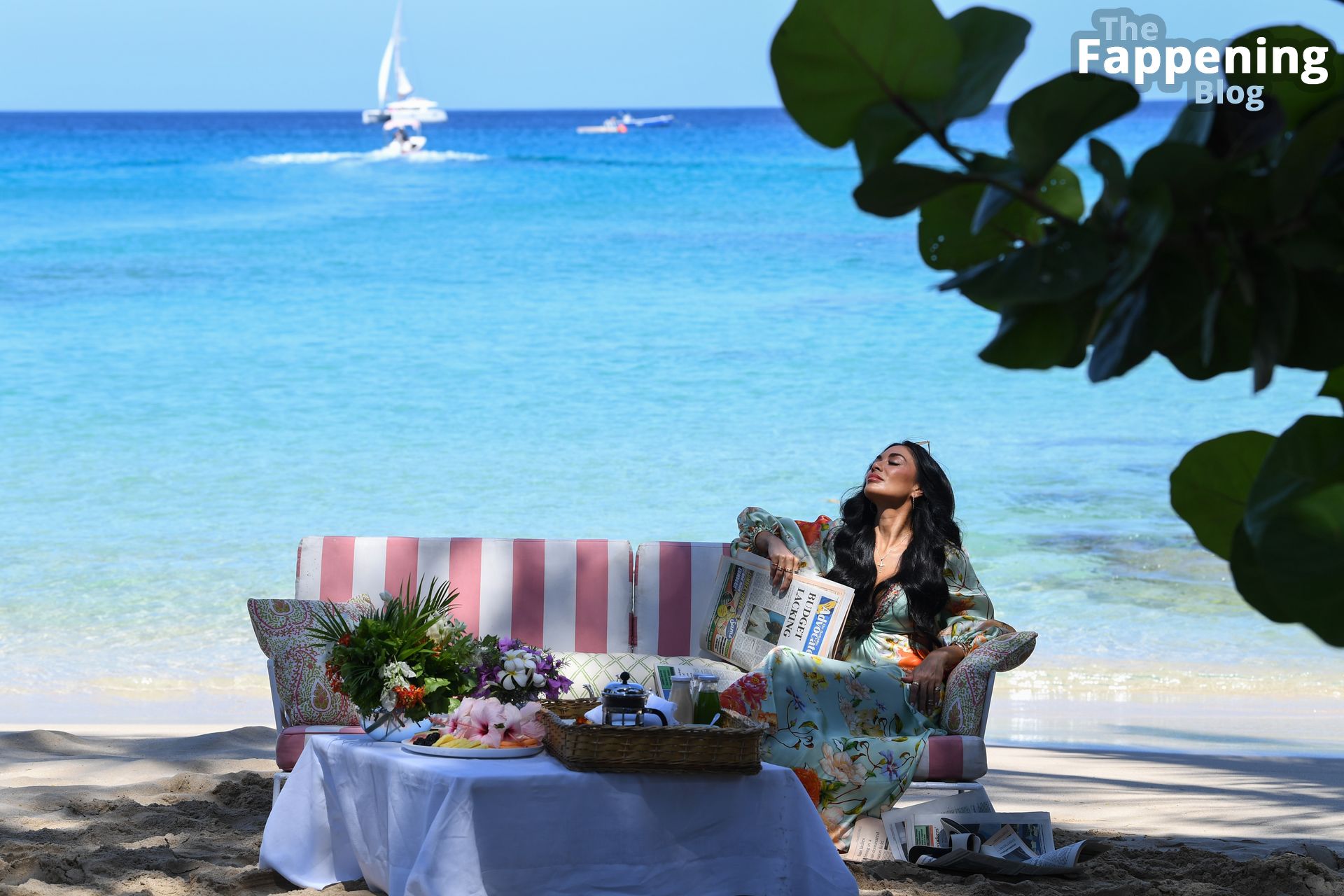 La superestrella global de la canción Nicole Scherzinger fue fotografiada en Heywoods Beach en Barbados, el día después de nombrar al nuevo barco de P&O Cruises, Arvia, en el mismo lugar, 16/03/2023. A Scherzinger se le ha otorgado el honor de ser la Madrina del barco.
