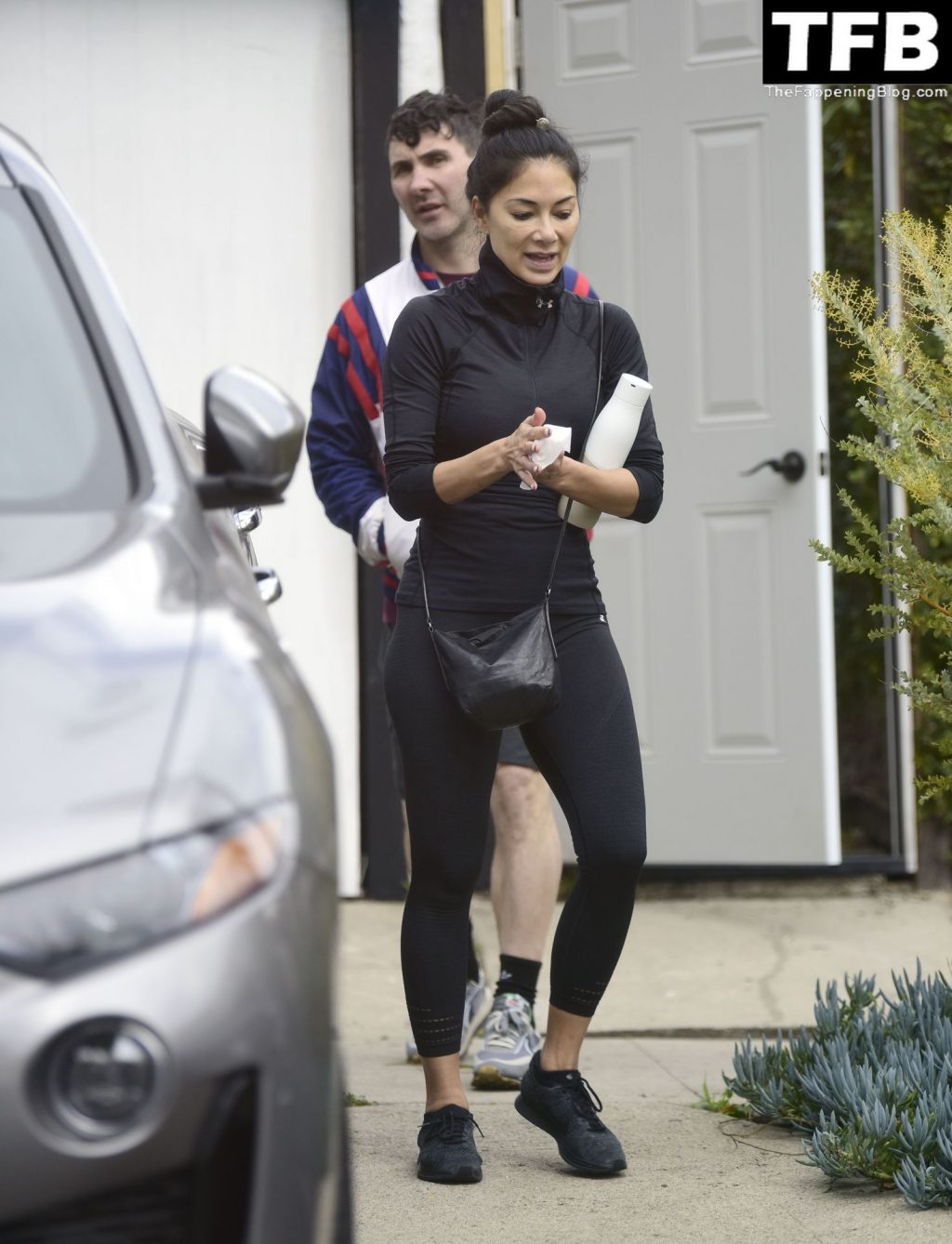 Nicole Scherzinger sale de su sesión de entrenamiento personal con ropa deportiva ajustada, 02/02/2022. La cantante y personalidad de televisión salió sin maquillaje tras su entrenamiento en Los Ángeles, mostrando sus famosas curvas con ropa deportiva negra.