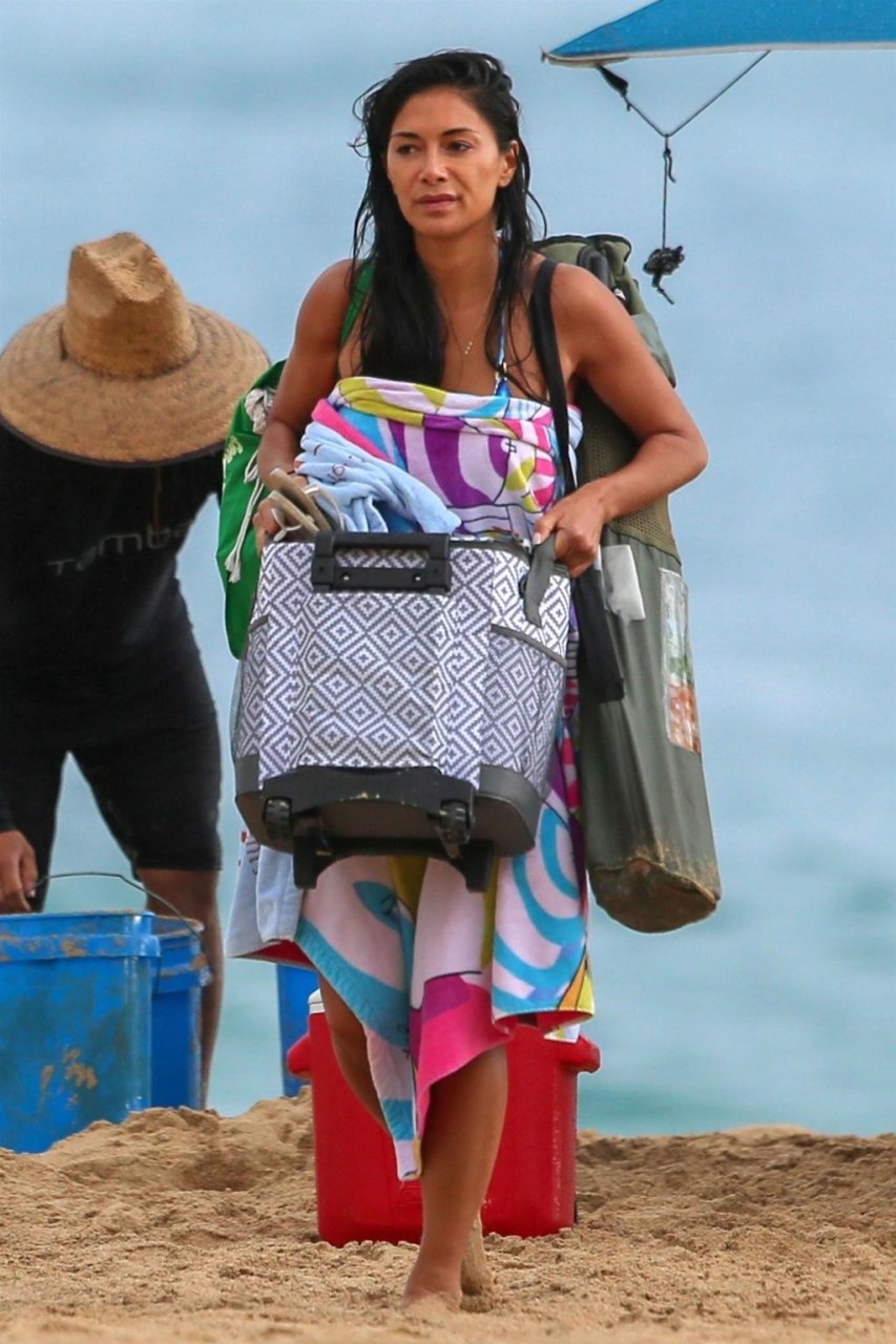 Cantante Nicole Scherzinger (40) luce un bikini y una combinación de cadena corporal para un chapuzón bajo la lluvia mientras está de vacaciones en Hawái, 14/10/2018.