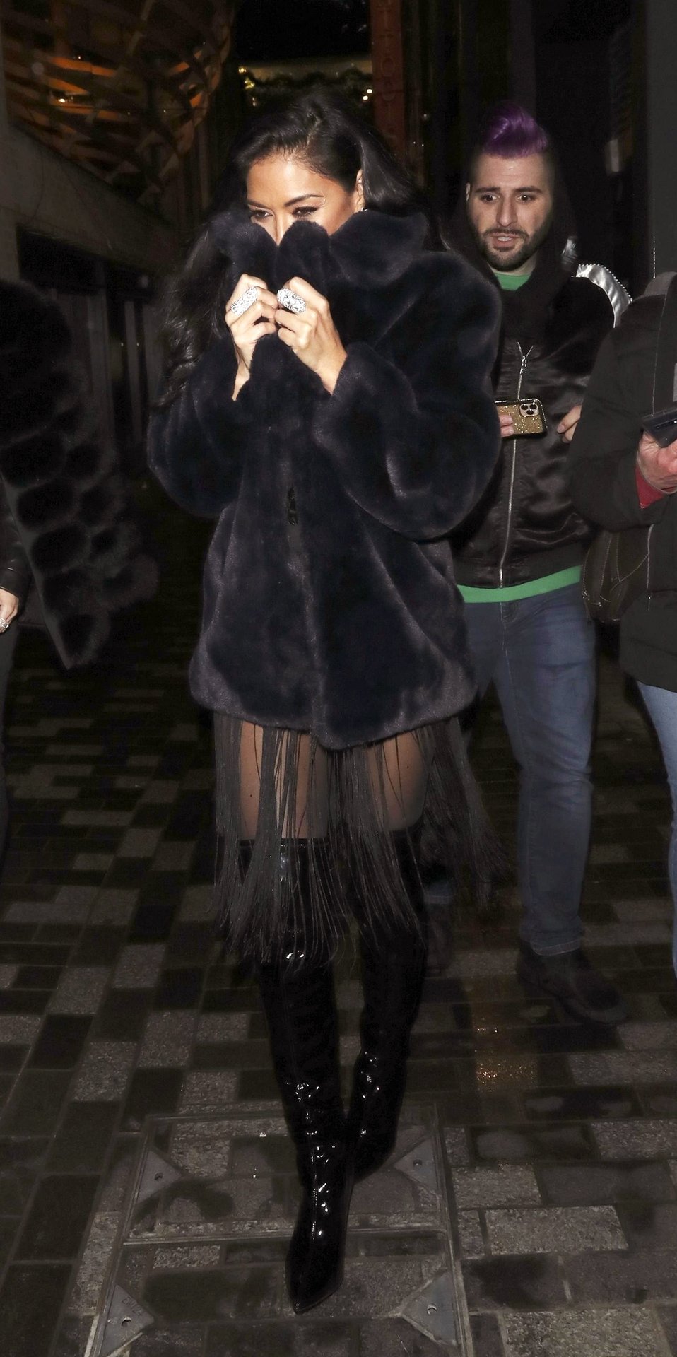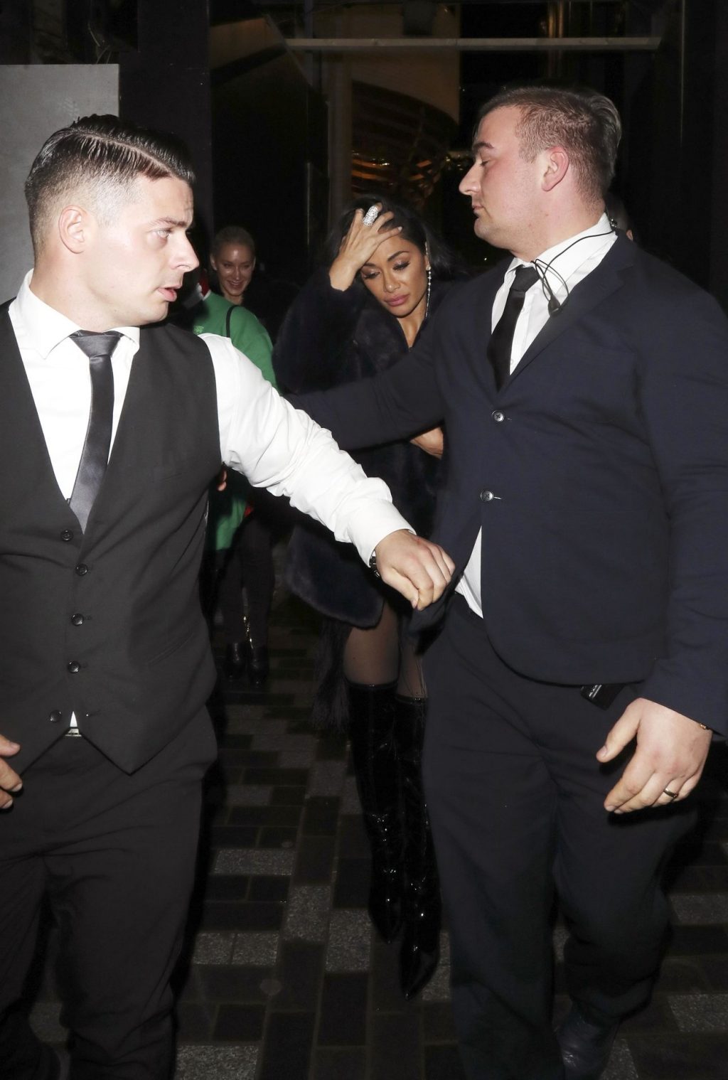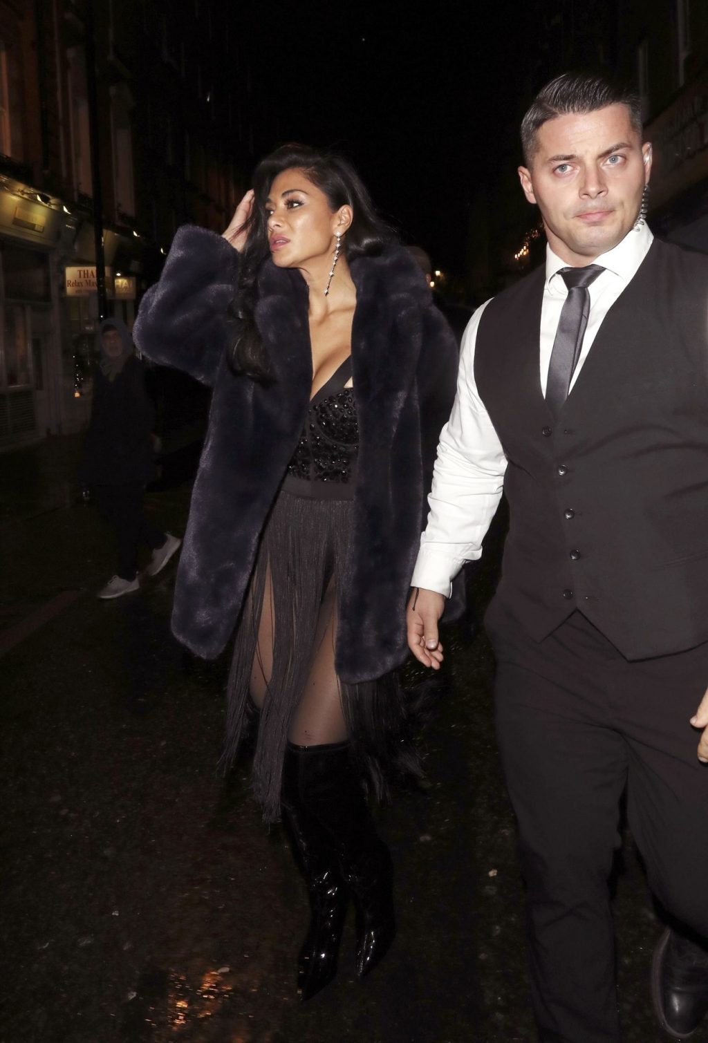 Thom Evans y Nicole Scherzinger fueron fotografiados saliendo del teatro Boulevard en Soho, Londres después del espectáculo escénico inspirado en el Teatro Musical de Nicole, 12/08/2019.