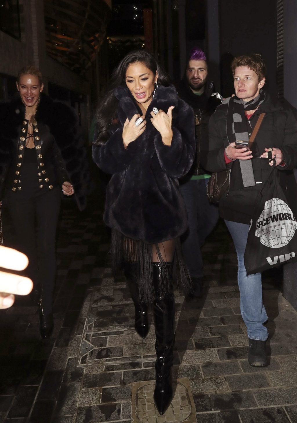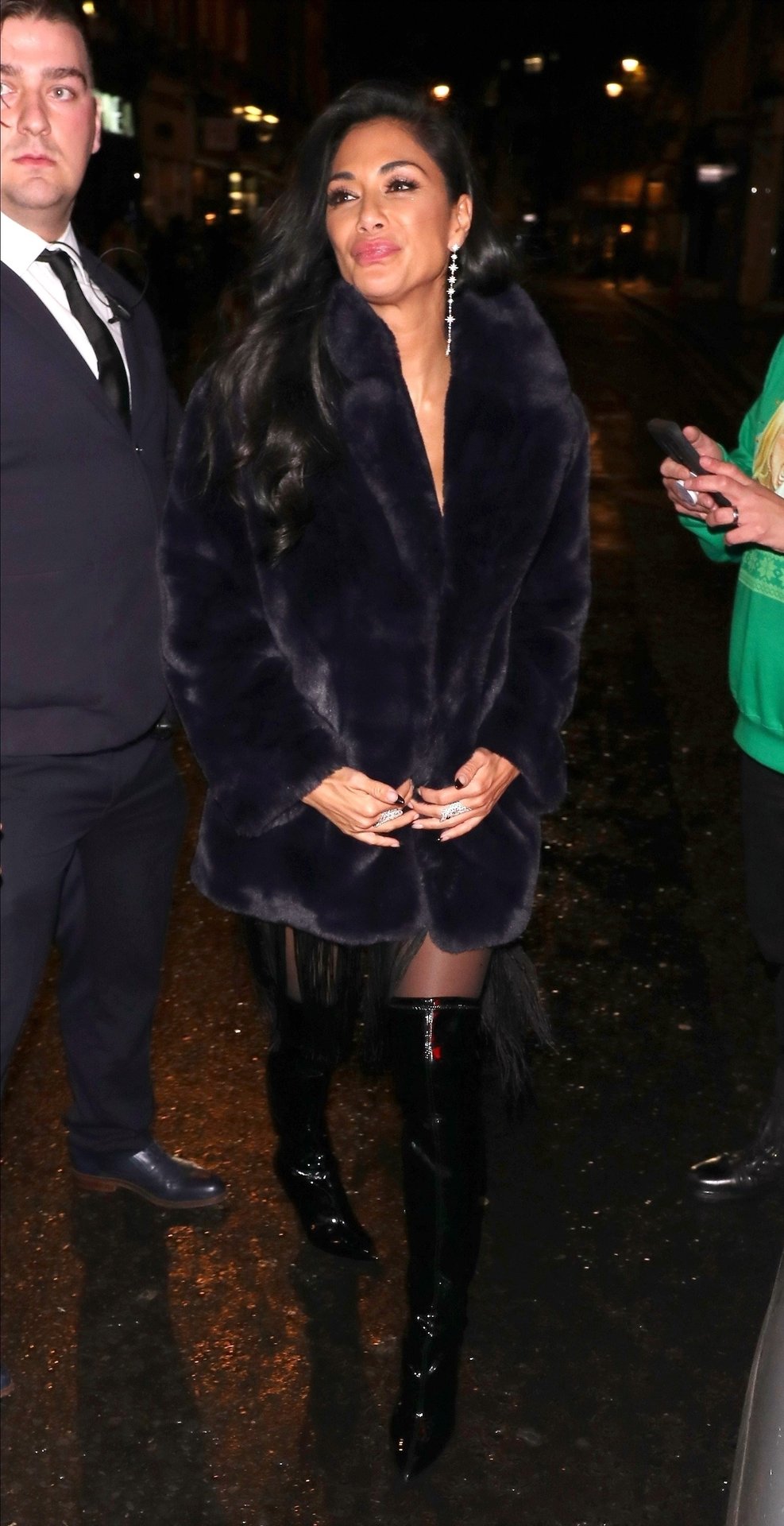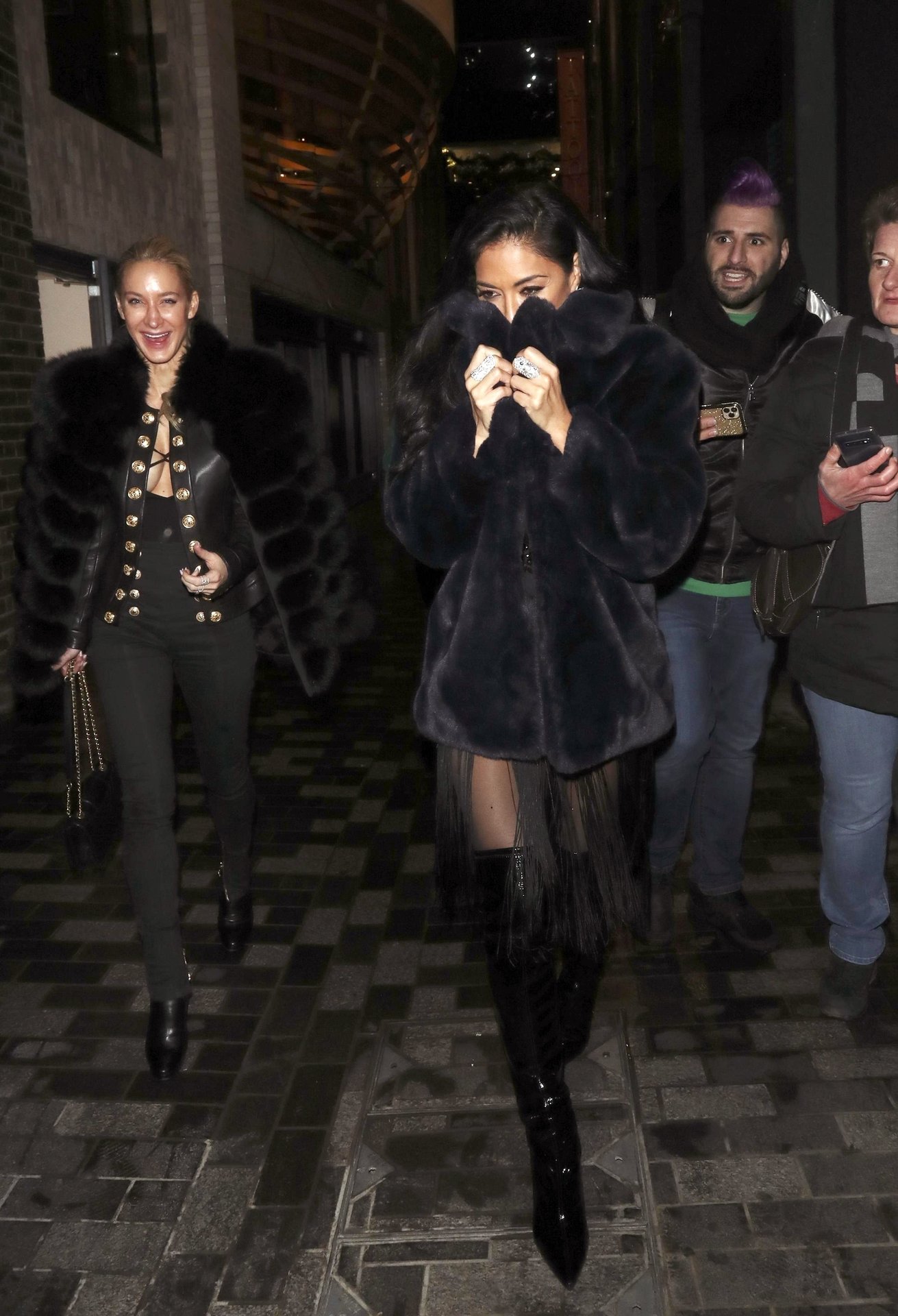 Thom Evans y Nicole Scherzinger fueron fotografiados saliendo del teatro Boulevard en Soho, Londres después del espectáculo escénico inspirado en el Teatro Musical de Nicole, 12/08/2019.
