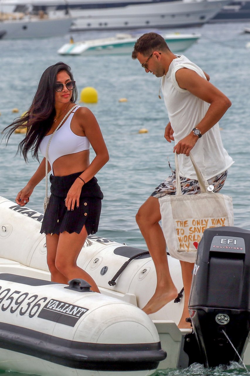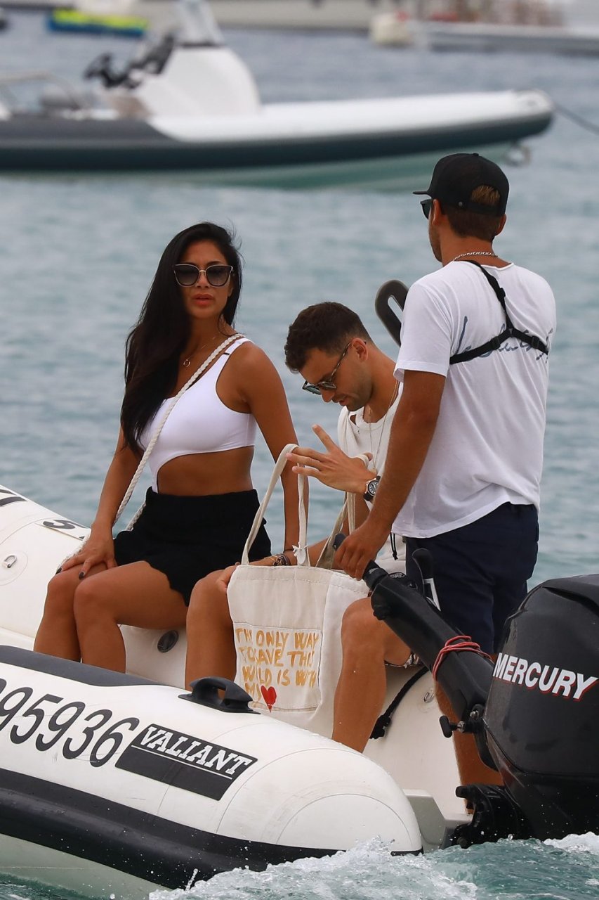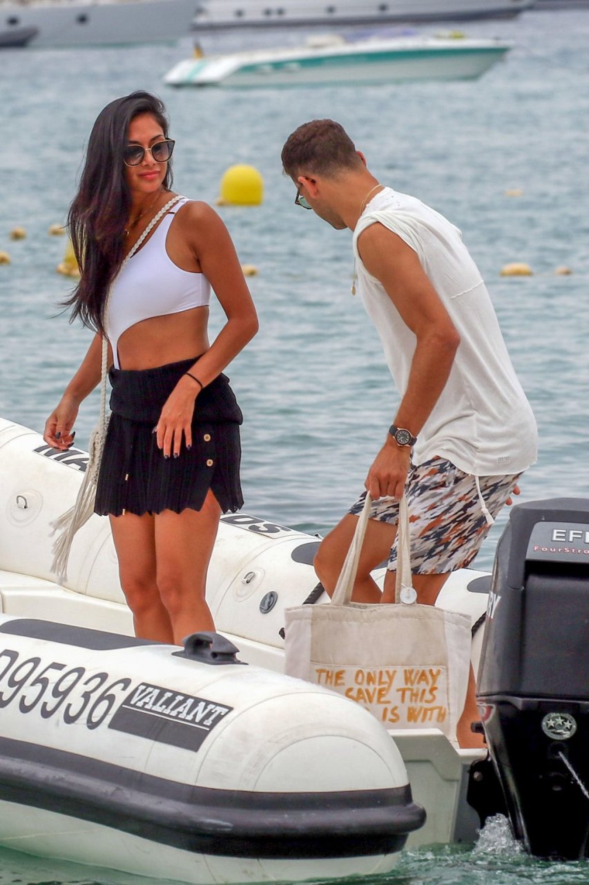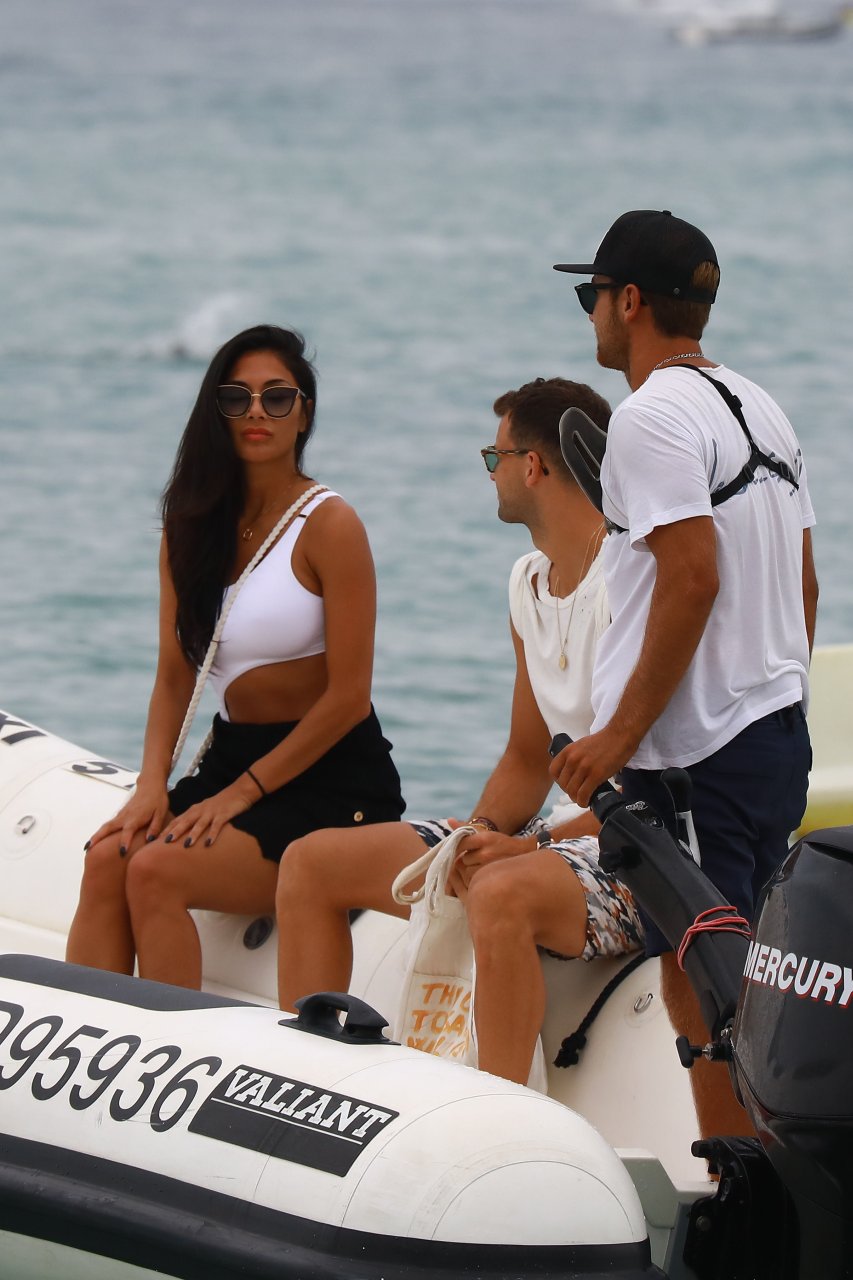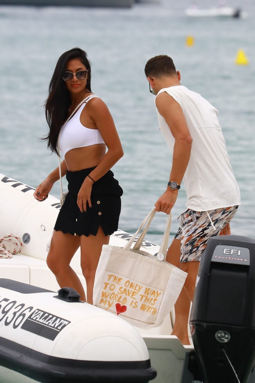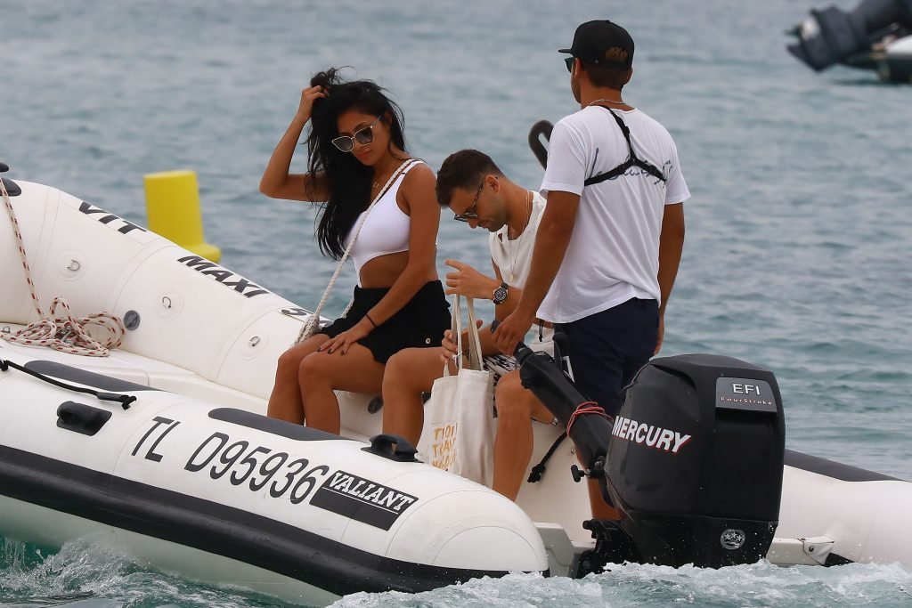 Nicole Scherzinger se ve en el Club 55 en St Tropez, sur de Francia, con su novio, 22/07/2018. La cantante fue vista en bikini en la parte trasera de una lancha rápida de lujo.