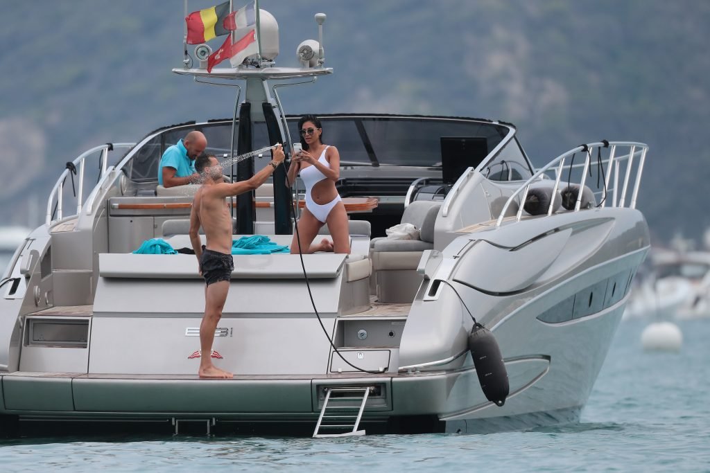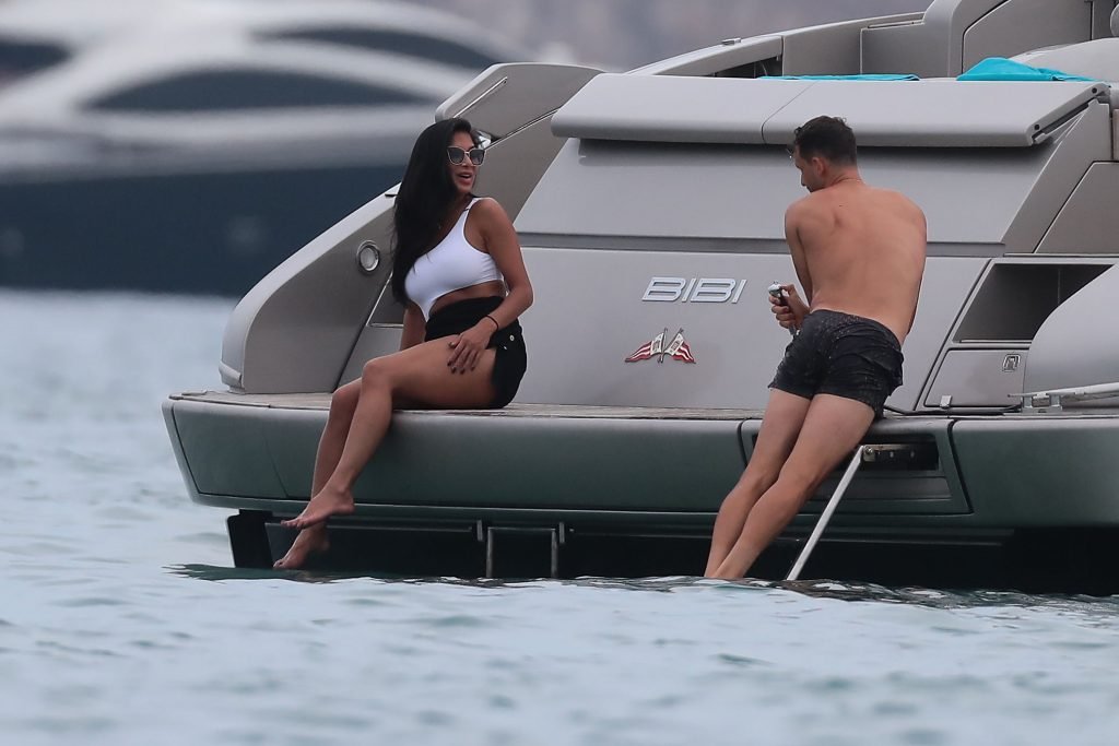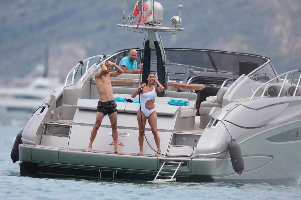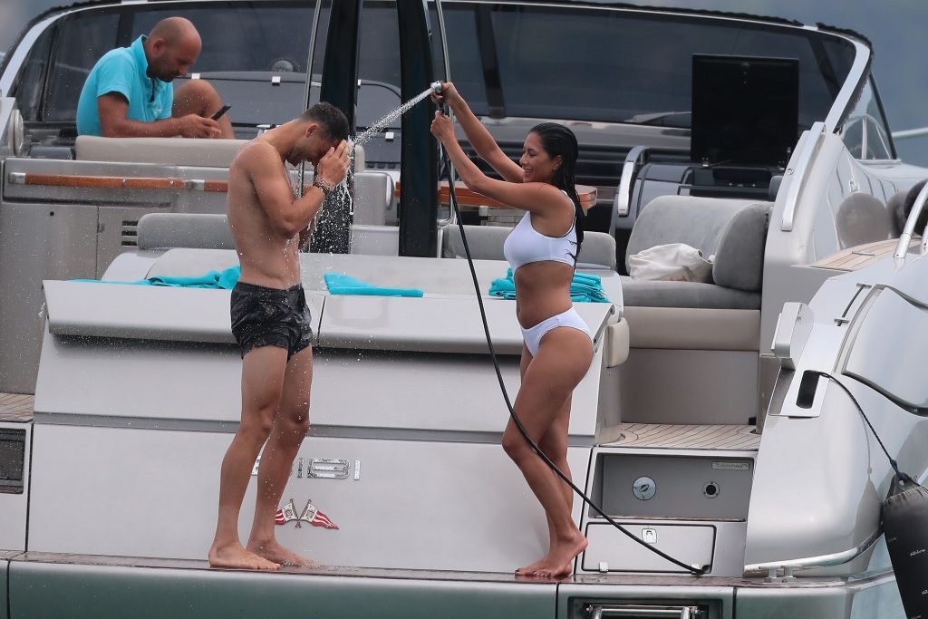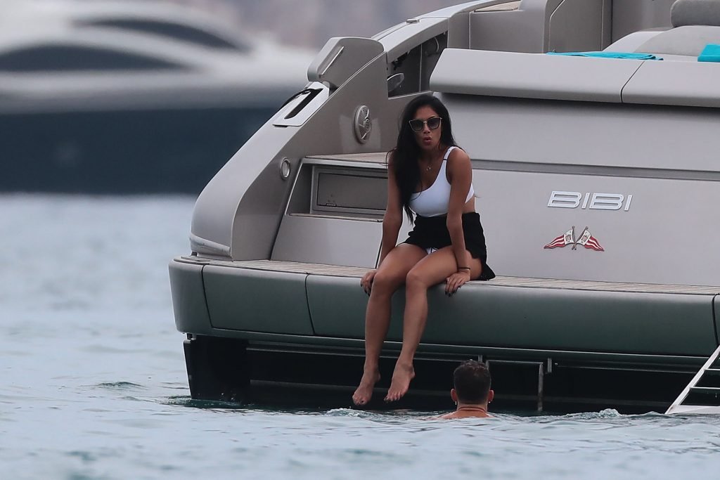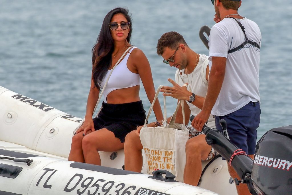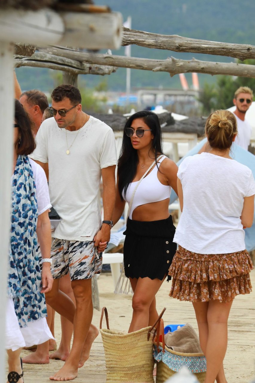 Nicole Scherzinger se ve en el Club 55 en St Tropez, sur de Francia, con su novio, 22/07/2018. La cantante fue vista en bikini en la parte trasera de una lancha rápida de lujo.