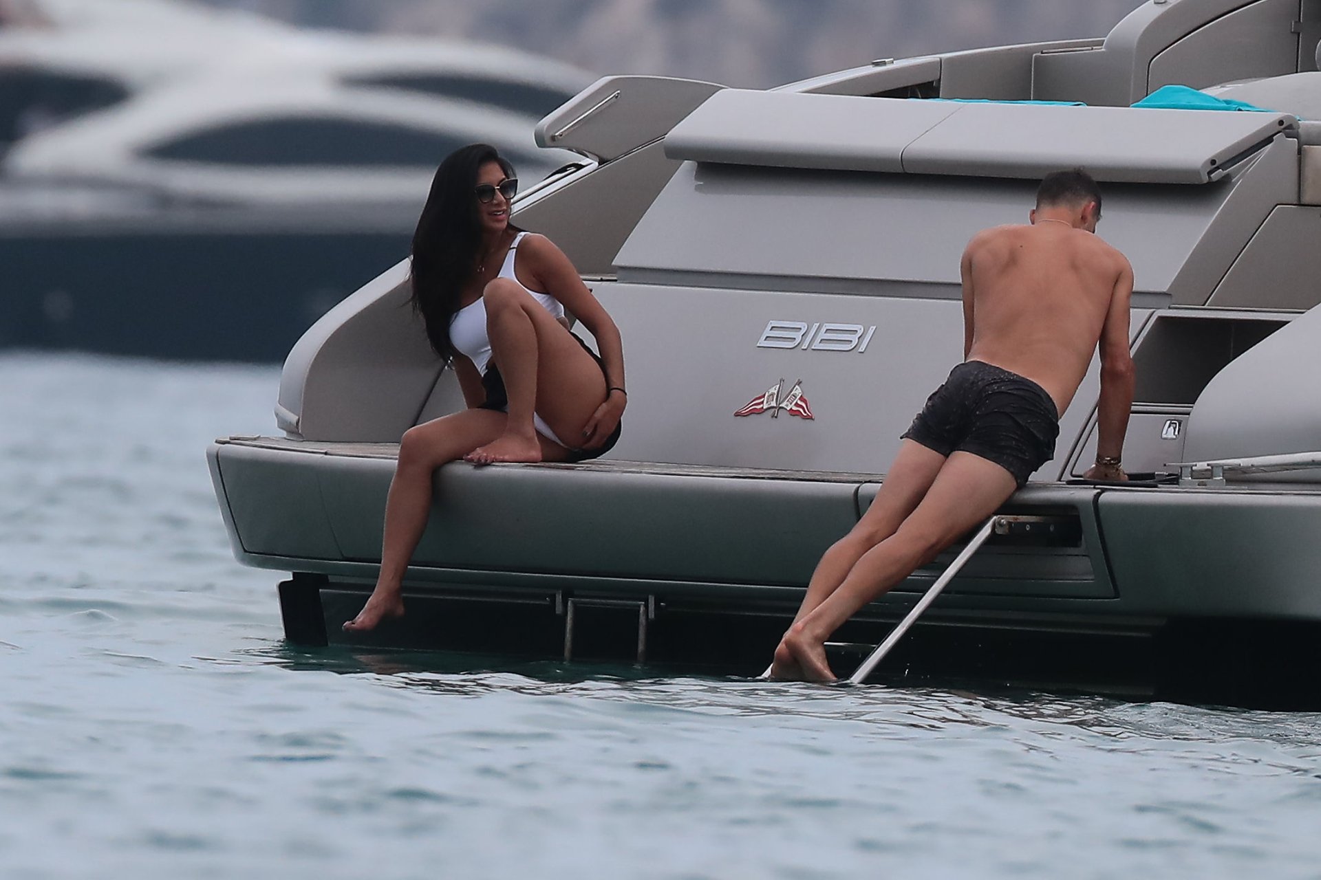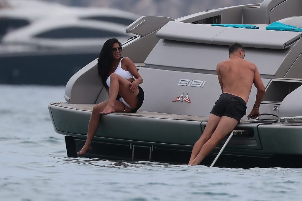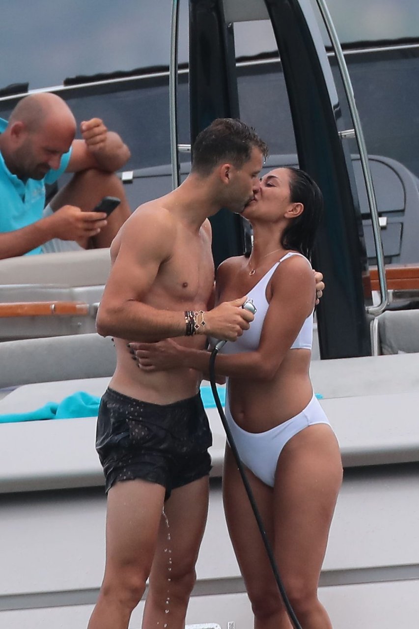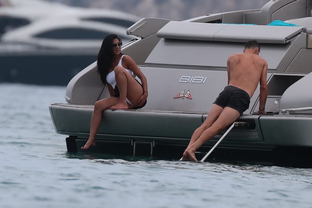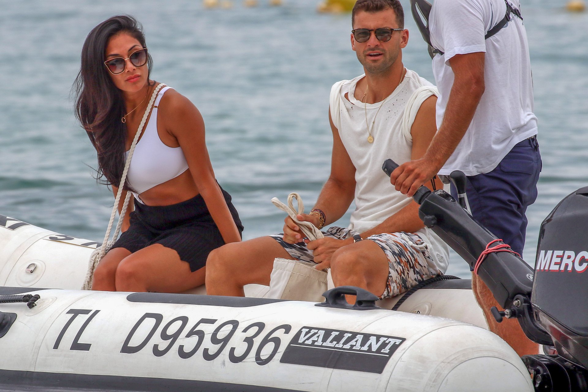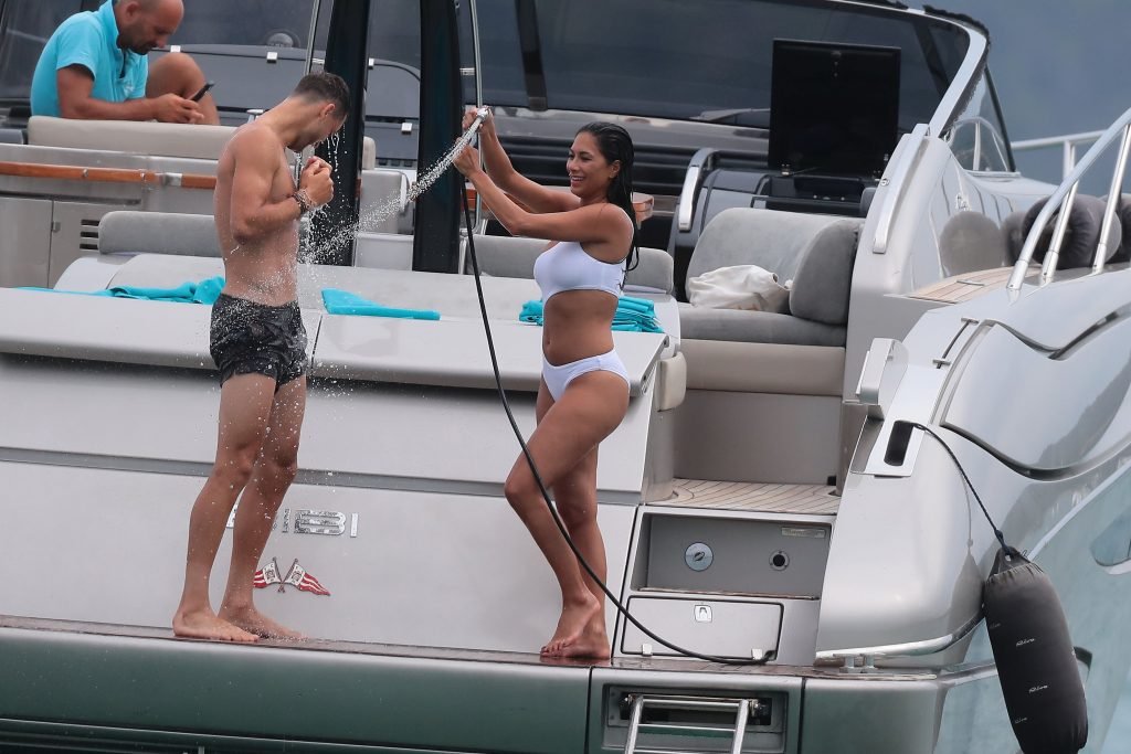 Nicole Scherzinger se ve en el Club 55 en St Tropez, sur de Francia, con su novio, 22/07/2018. La cantante fue vista en bikini en la parte trasera de una lancha rápida de lujo.