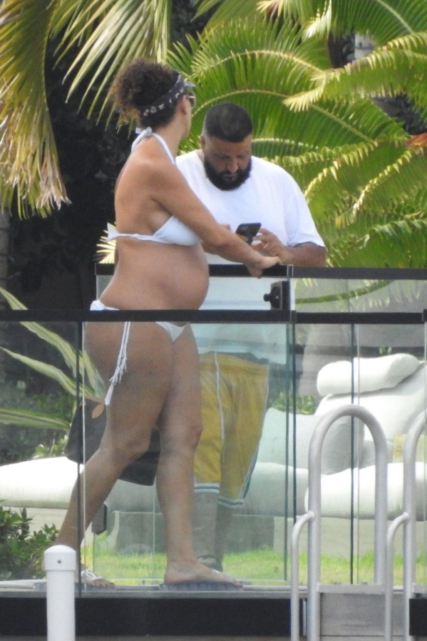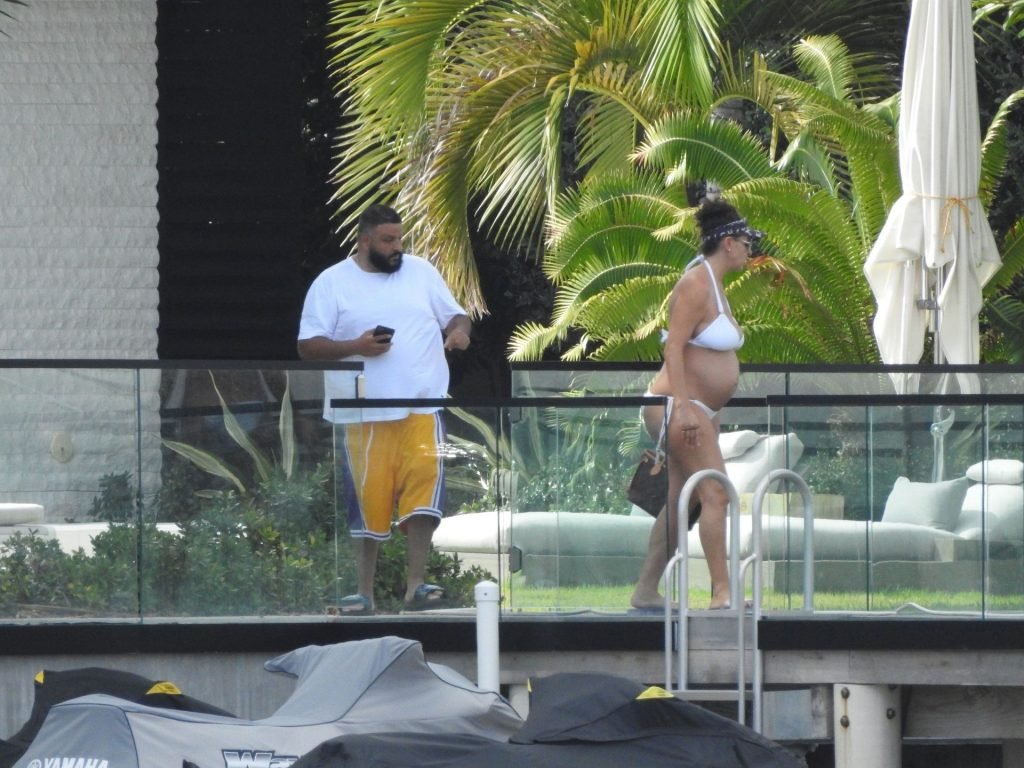 DJ Khaled tiene “Otro más” en camino! La sensación pop estadounidense DJ Khaled y su esposa embarazada de 43 años, Nicole Tuck, lució su gran barriga de embarazada mientras disfrutaban de una hermosa tarde de domingo y un paseo en bote en un enorme yate de lujo en Miami Beach, 06/10/2019.