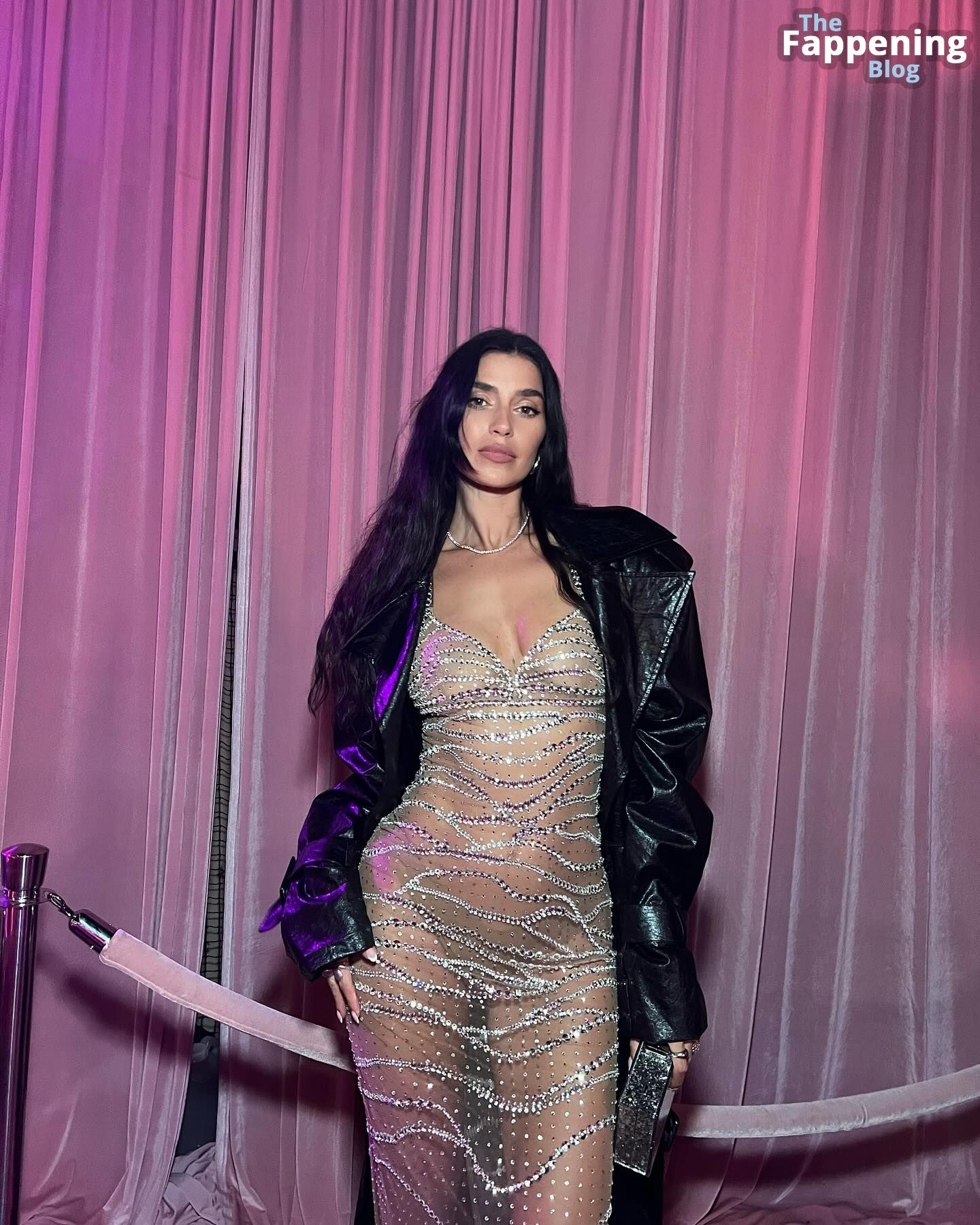 La modelo canadiense de 36 años apareció en la fiesta Slivmas de Paris Hilton con un vestido transparente sin sostén. Su atrevido look transparente llamó la atención, y los fotógrafos no pudieron resistirse a capturar imágenes de sus atributos sin sostén en este atuendo revelador.