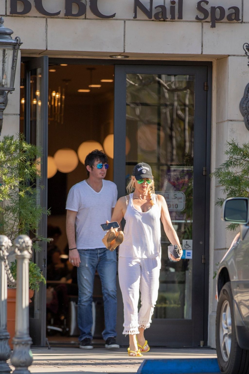 ¿Es posible que Nicollette Sheridan haya mejorado sus atributos? La actriz mostró un poco de su pecho lateral muy firme mientras se entregaba a un PDA apasionado con su novio después de hacerse una pedicura en Calabasas, 18/03/2019.