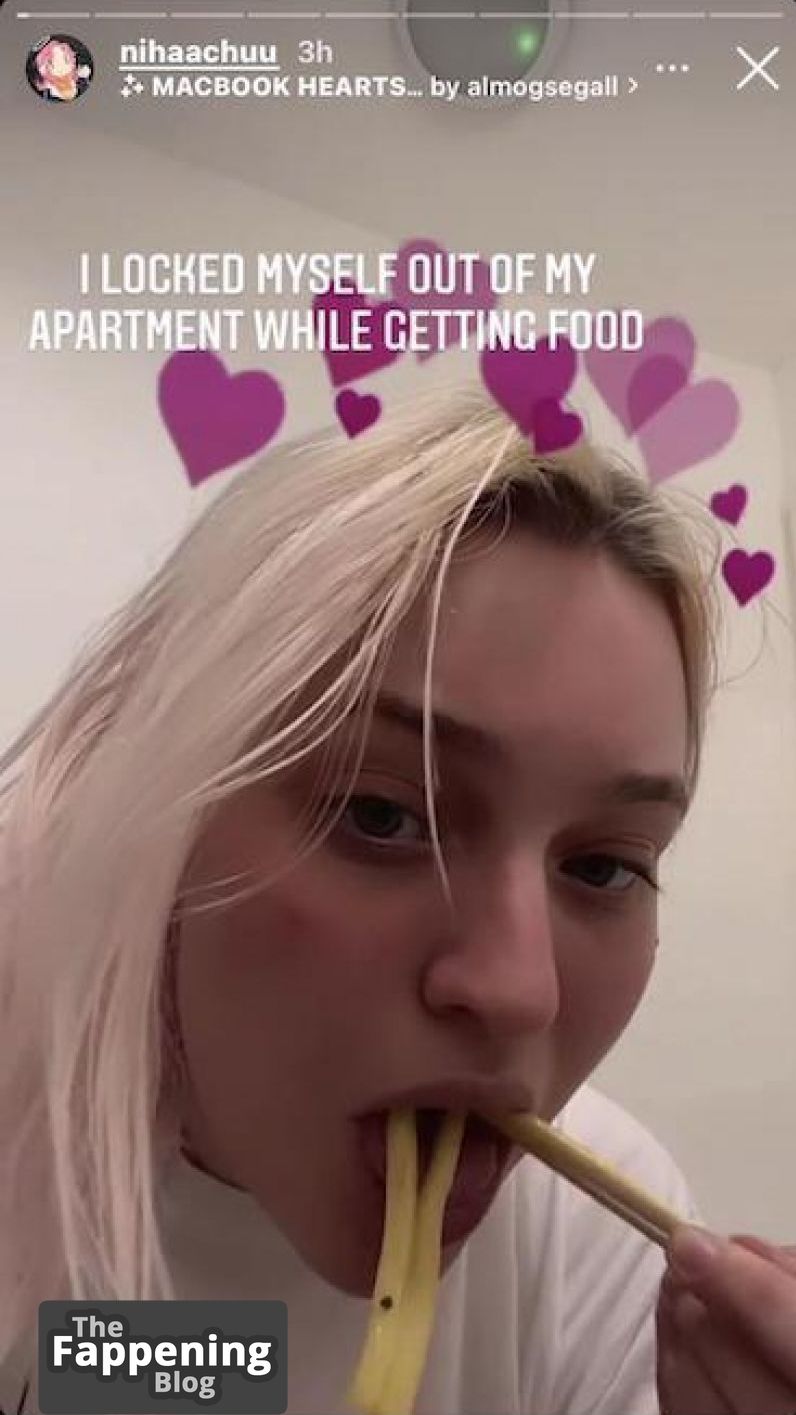 El archivo privado de Nihachu trata sobre sus pechos sin sostén mostrando un escote impresionante, junto con sus grandes y atractivos senos, un trasero seductor, piernas interminables y su cuerpo tonificado de YouTuber en bikinis y atuendos reveladores.