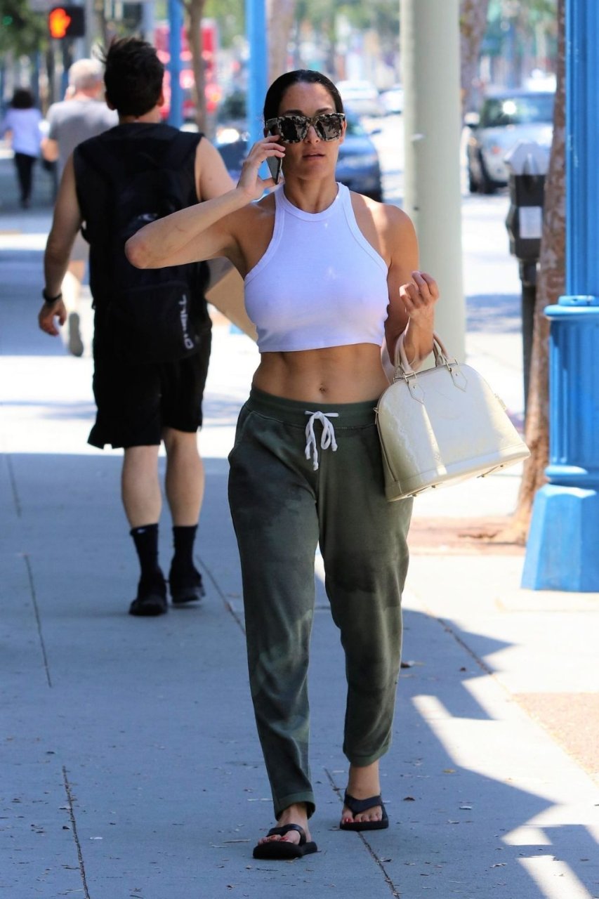 Nikki Bella fue vista paseando por Los Ángeles, 22/07/2019. La estrella de la WWE mostró sus encantos con una blusa blanca.
