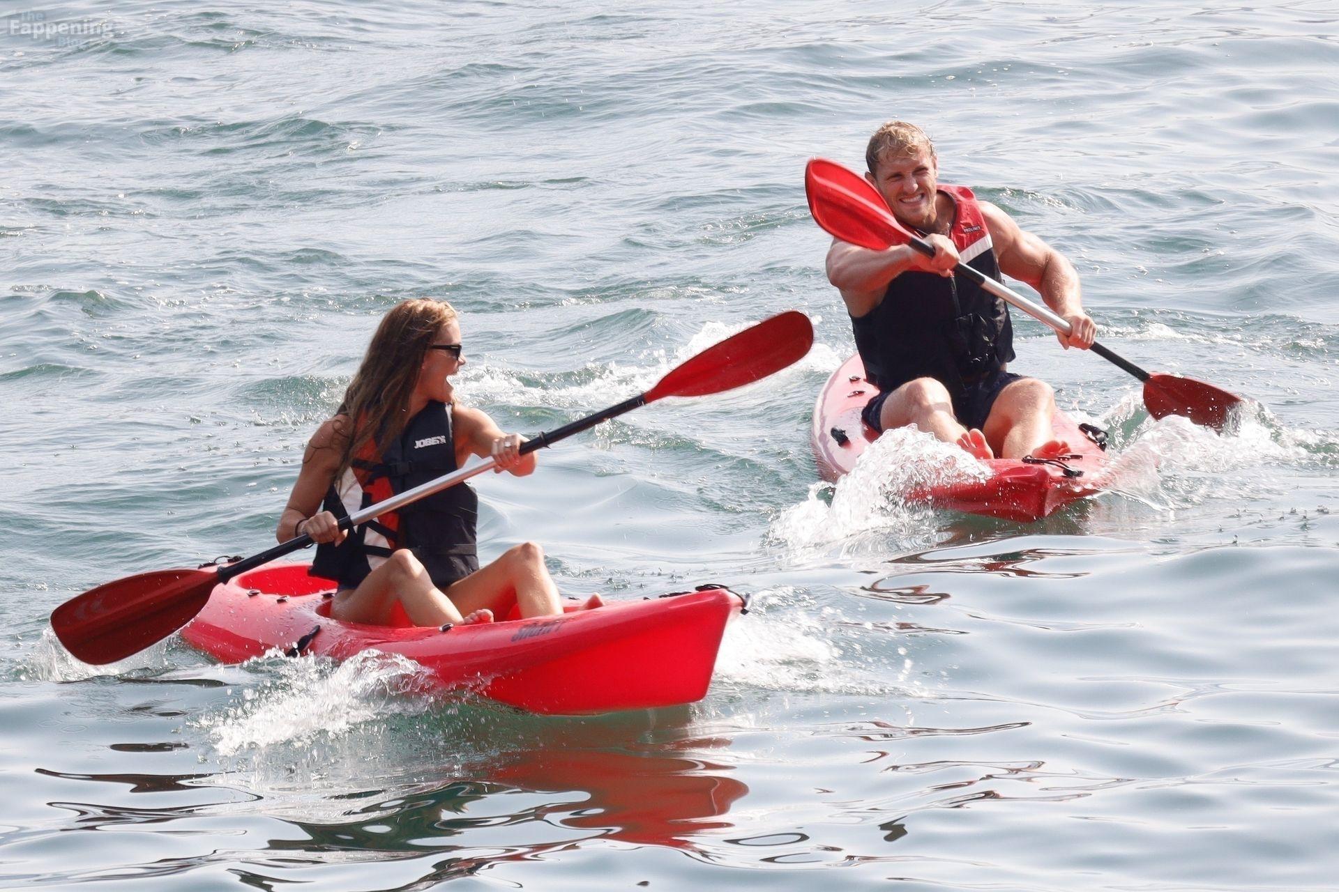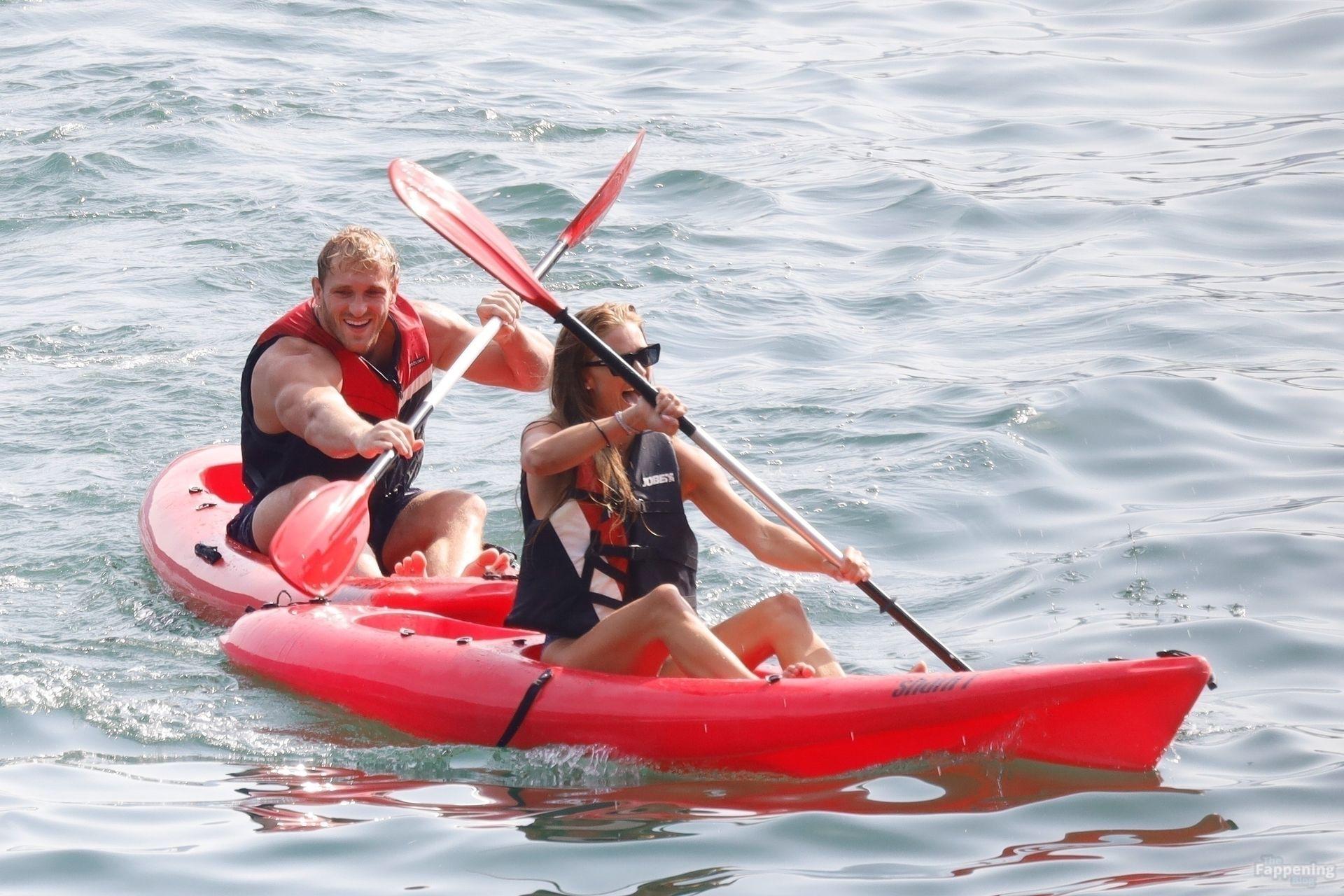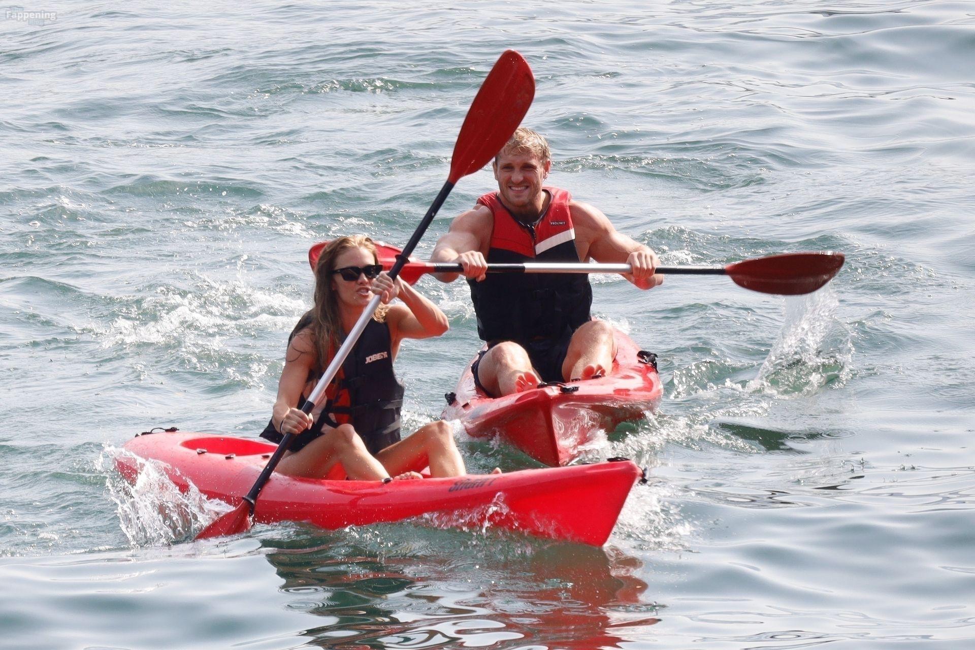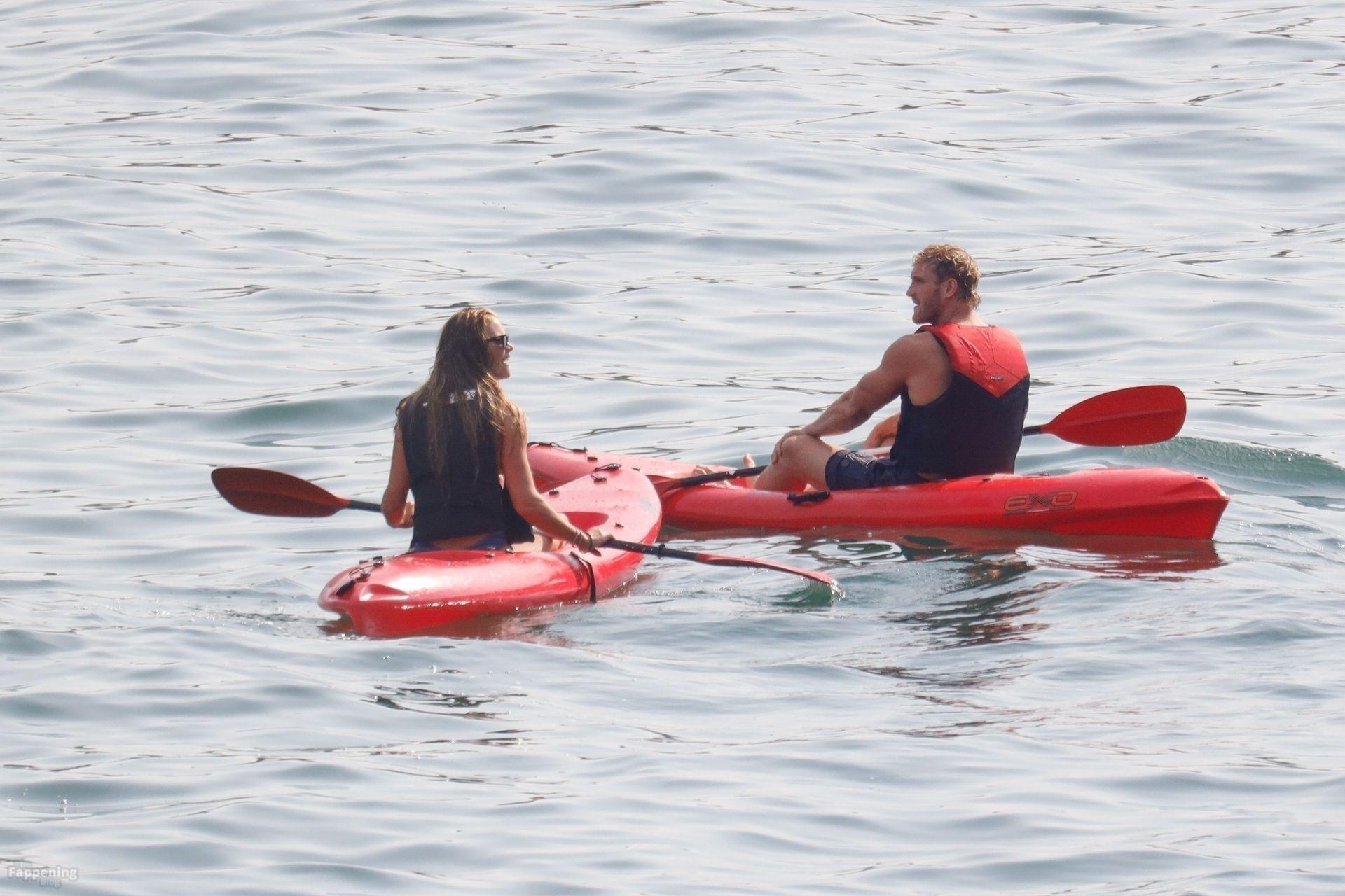 Para no quedarse atrás, la modelo danesa de Logan, Nina, lucía espectacular con un bikini diminuto, mostrando su figura lista para la playa. Ambos se divirtieron mucho en el agua, remando en kayak bajo el intenso sol italiano.