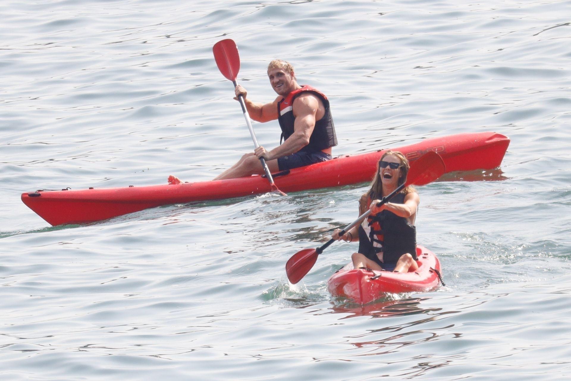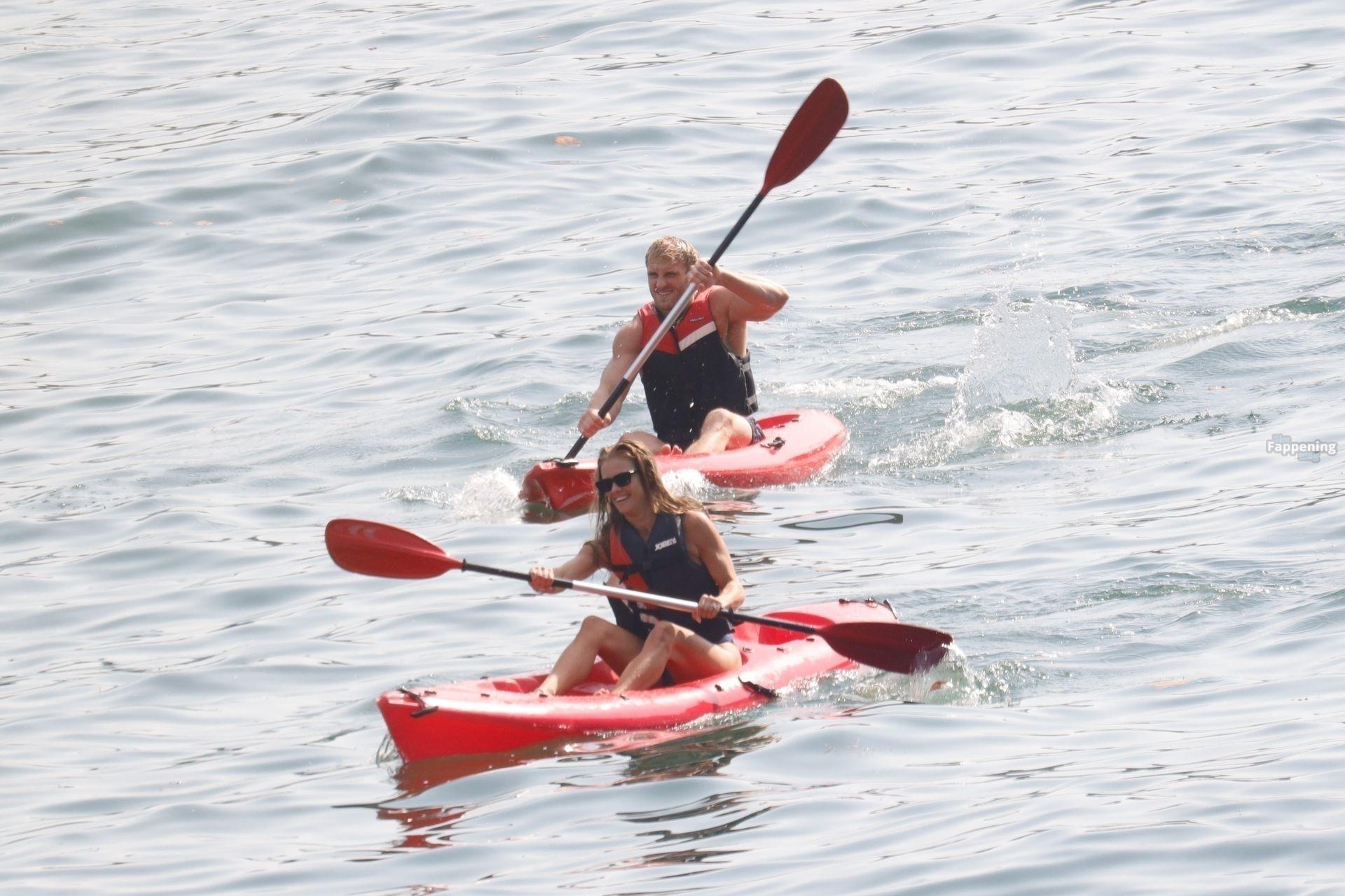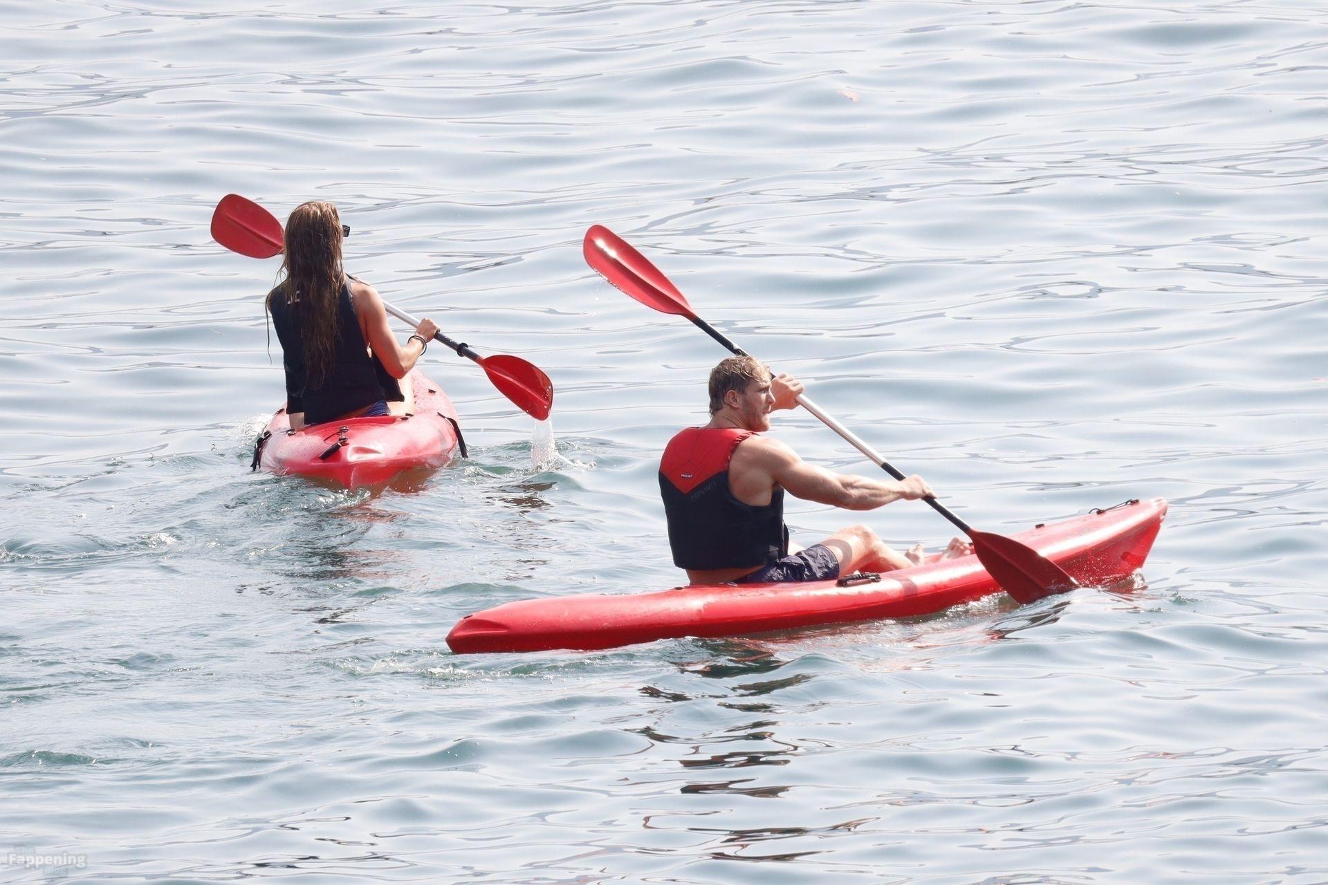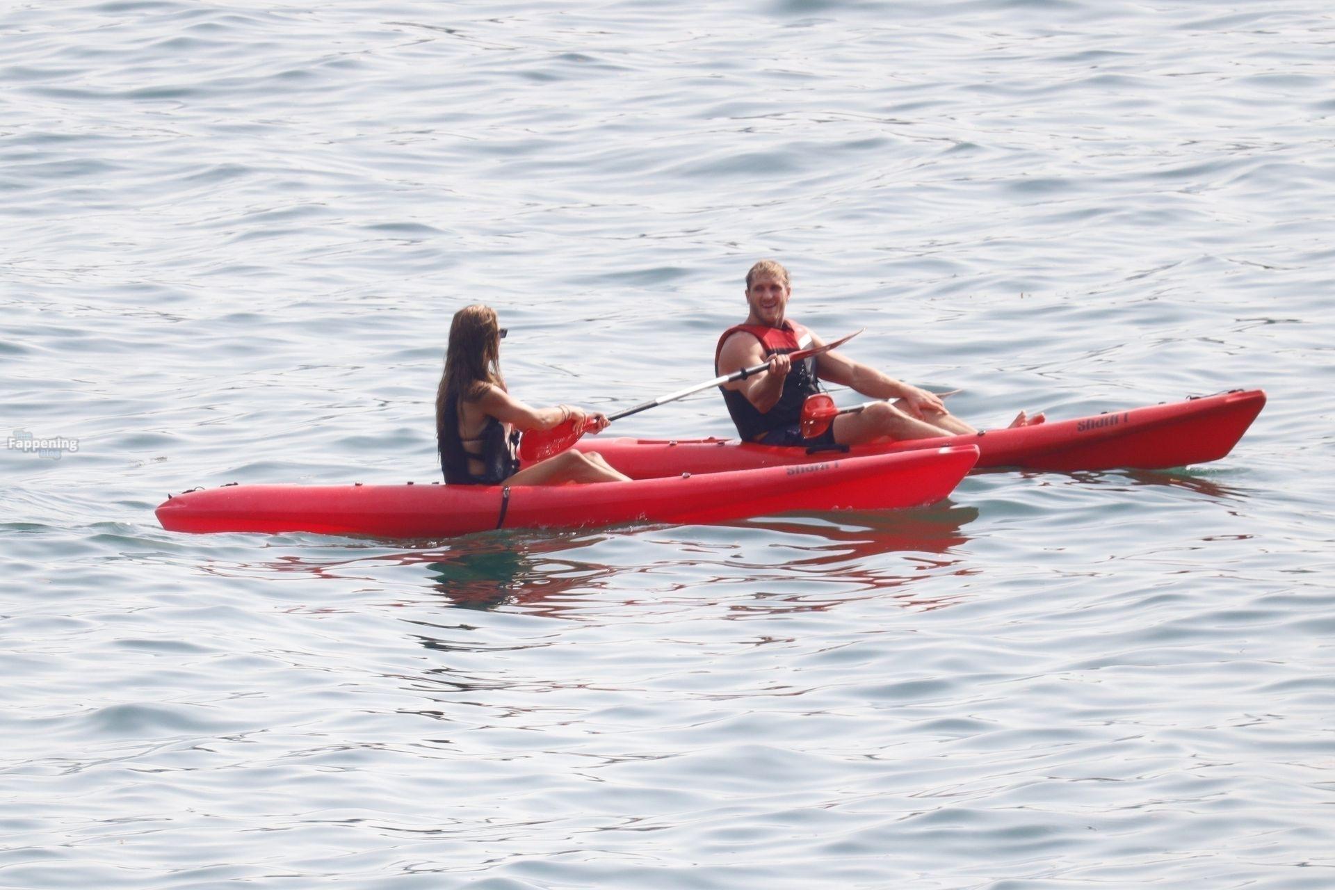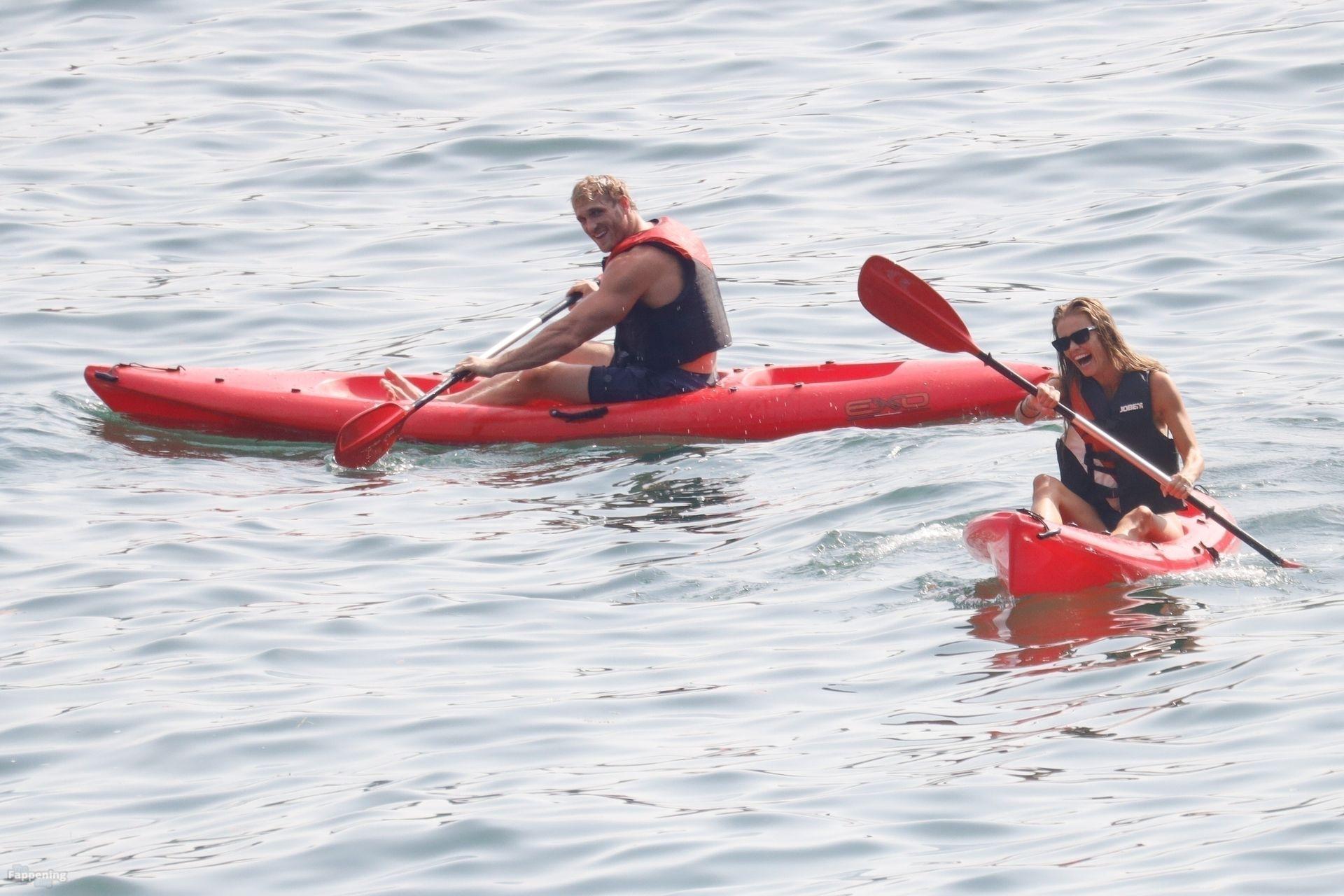 Para no quedarse atrás, la modelo danesa de Logan, Nina, lucía espectacular con un bikini diminuto, mostrando su figura lista para la playa. Ambos se divirtieron mucho en el agua, remando en kayak bajo el intenso sol italiano.