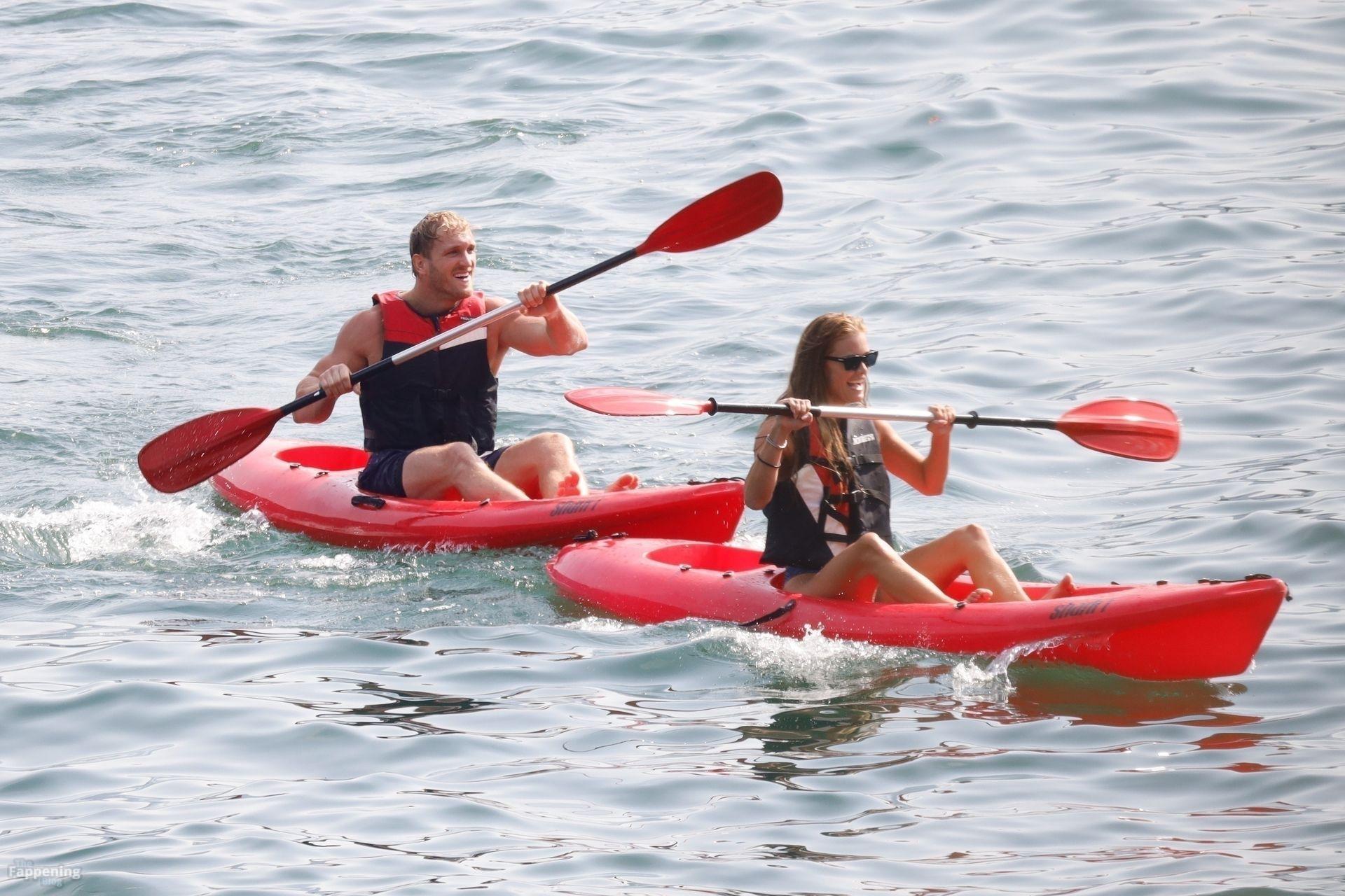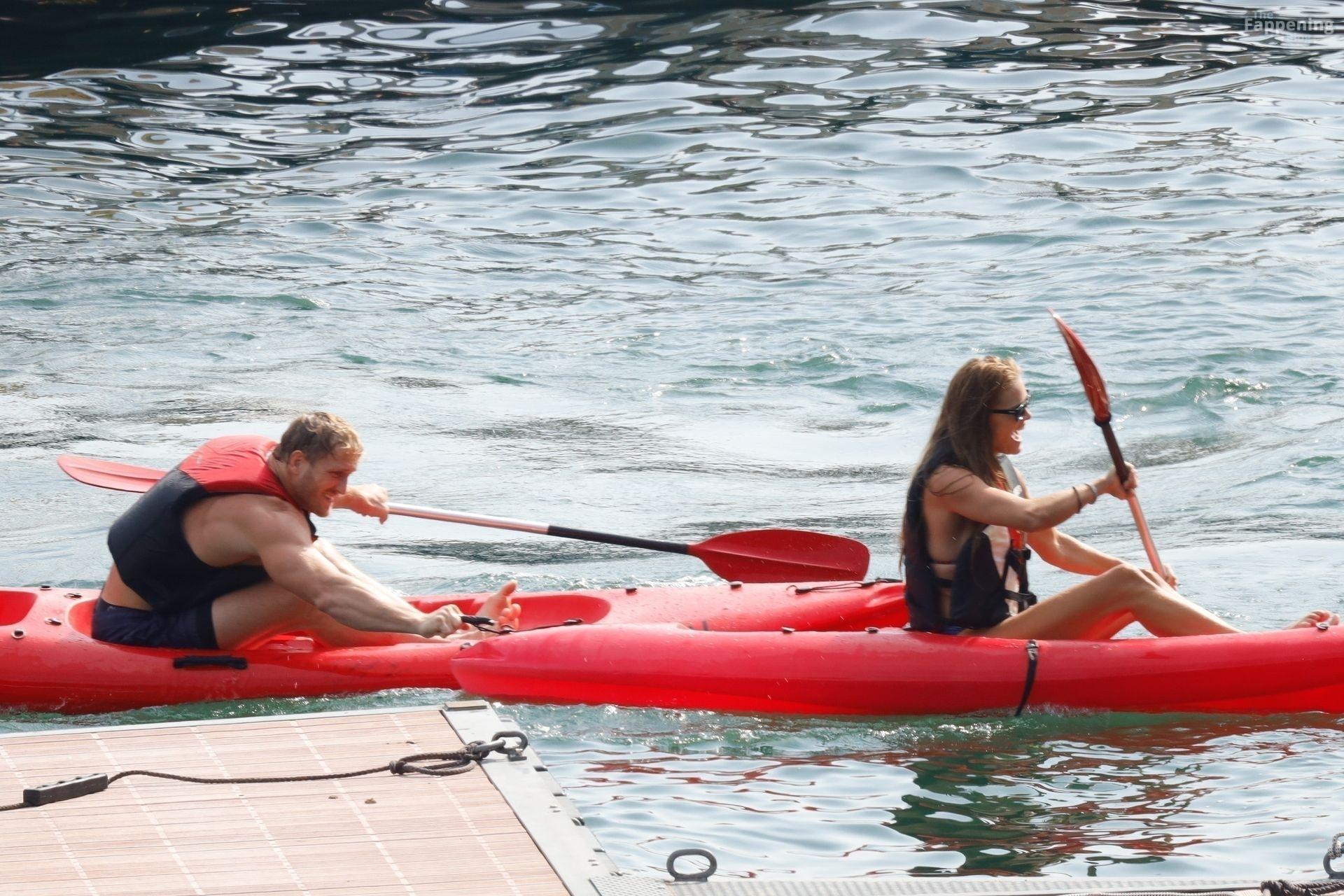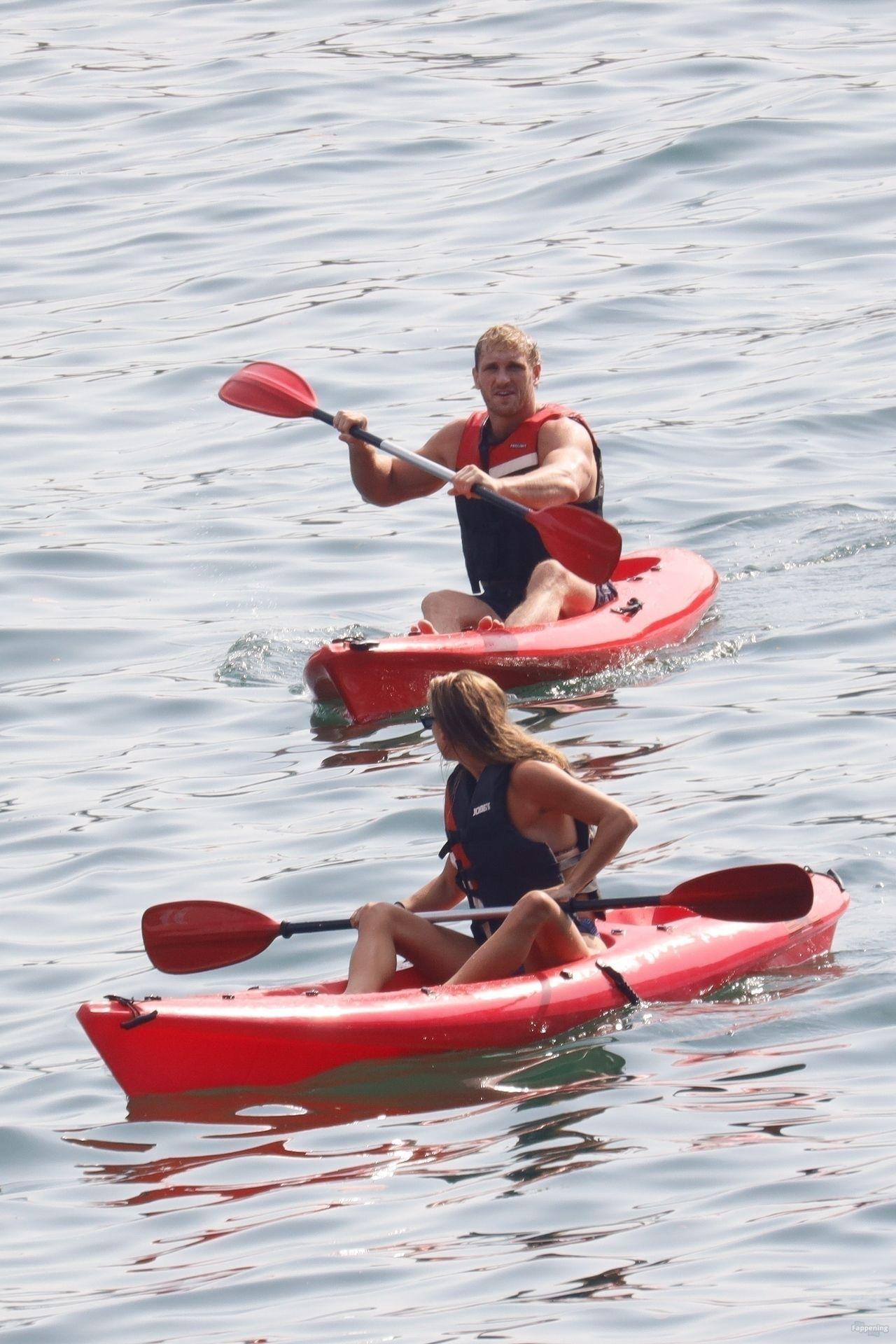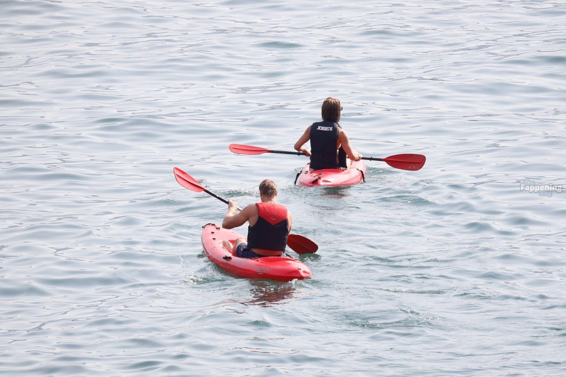 Para no quedarse atrás, la modelo danesa de Logan, Nina, lucía espectacular con un bikini diminuto, mostrando su figura lista para la playa. Ambos se divirtieron mucho en el agua, remando en kayak bajo el intenso sol italiano.