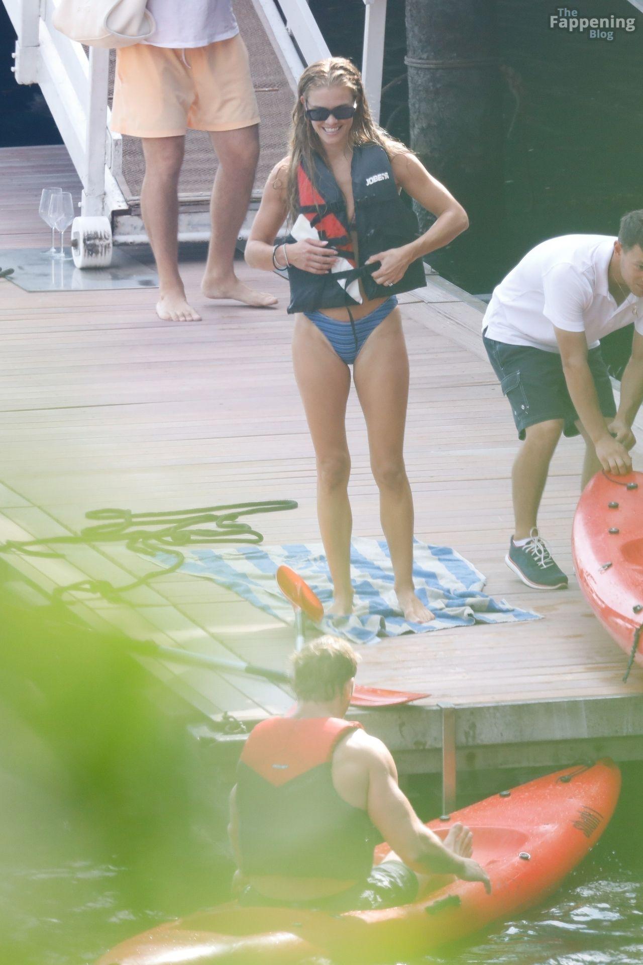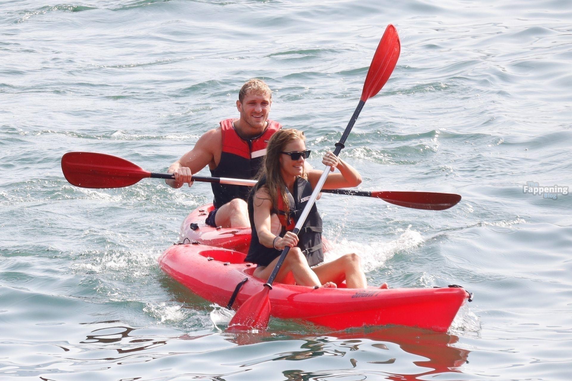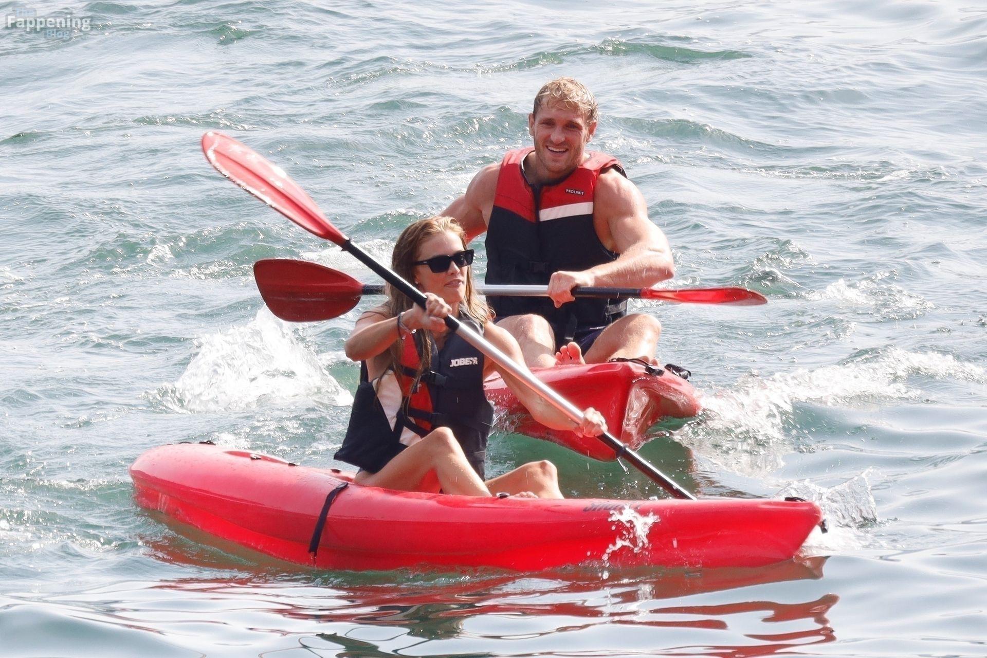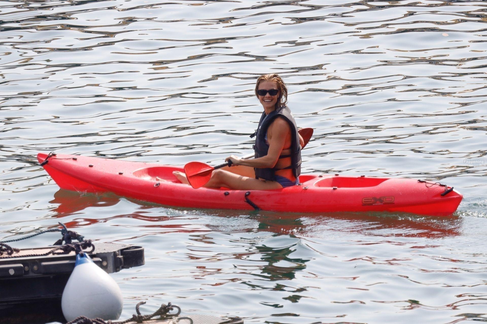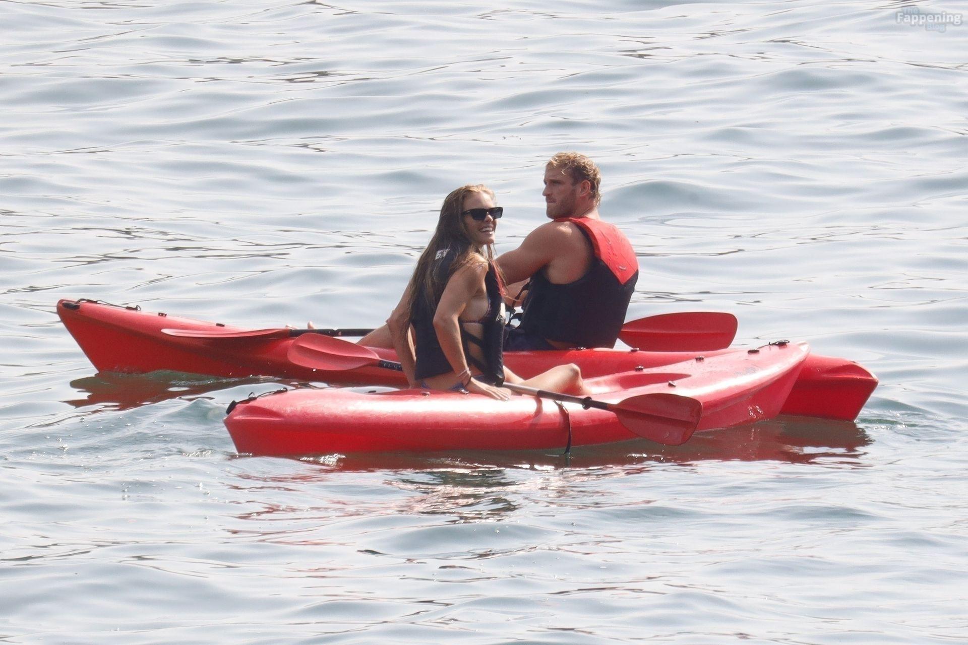 Para no quedarse atrás, la modelo danesa de Logan, Nina, lucía espectacular con un bikini diminuto, mostrando su figura lista para la playa. Ambos se divirtieron mucho en el agua, remando en kayak bajo el intenso sol italiano.