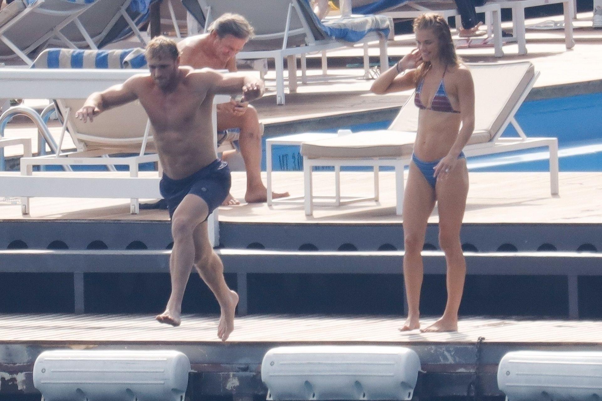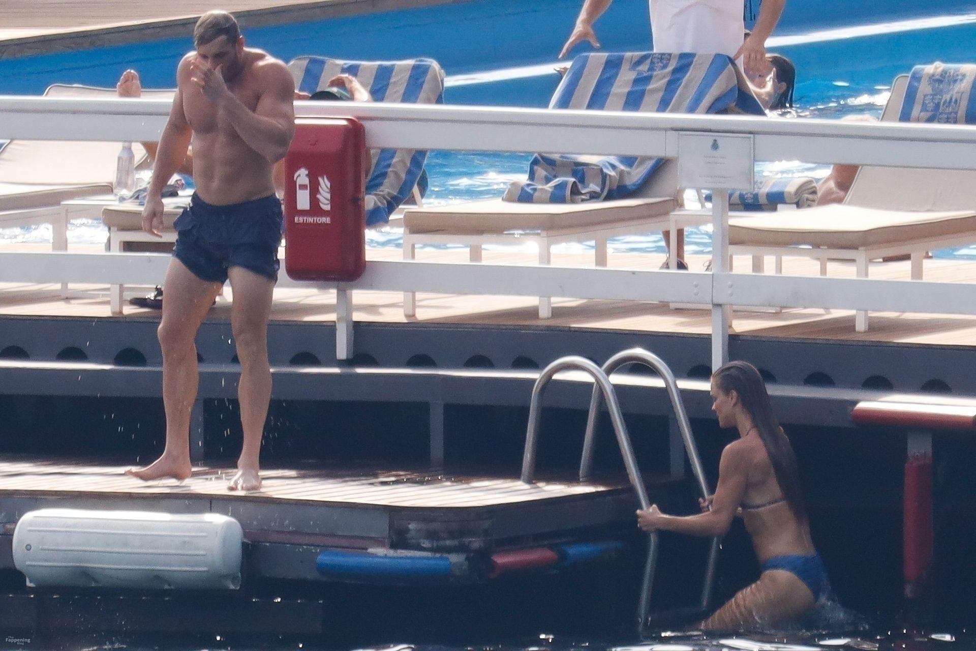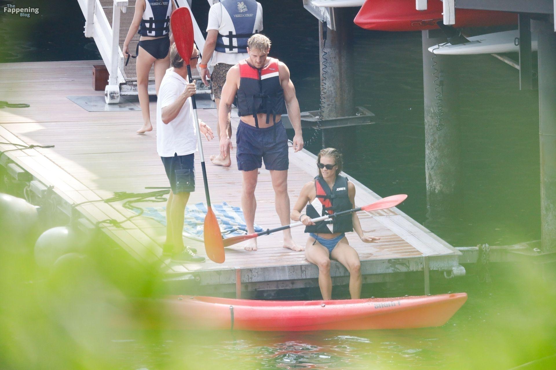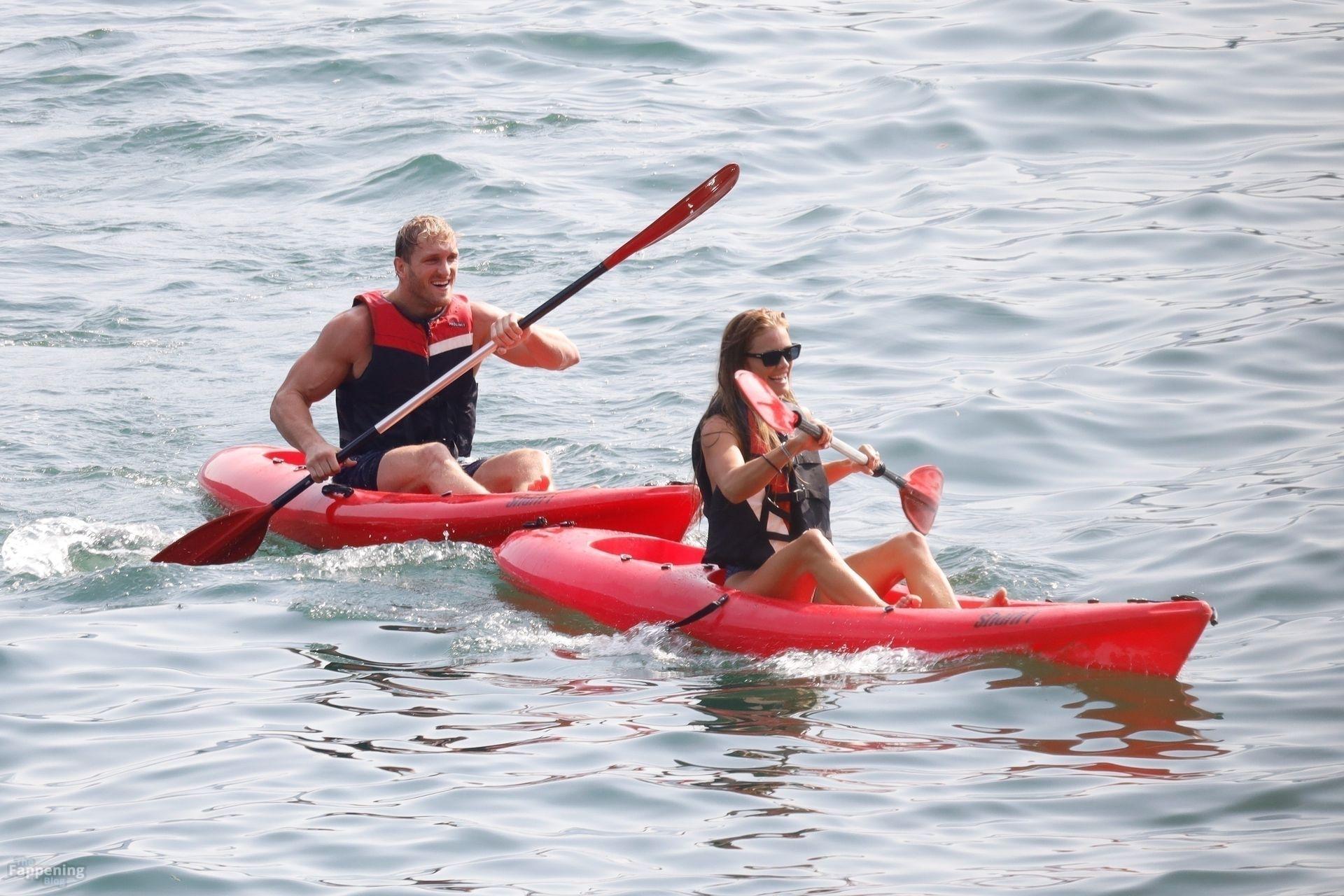 Para no quedarse atrás, la modelo danesa de Logan, Nina, lucía espectacular con un bikini diminuto, mostrando su figura lista para la playa. Ambos se divirtieron mucho en el agua, remando en kayak bajo el intenso sol italiano.