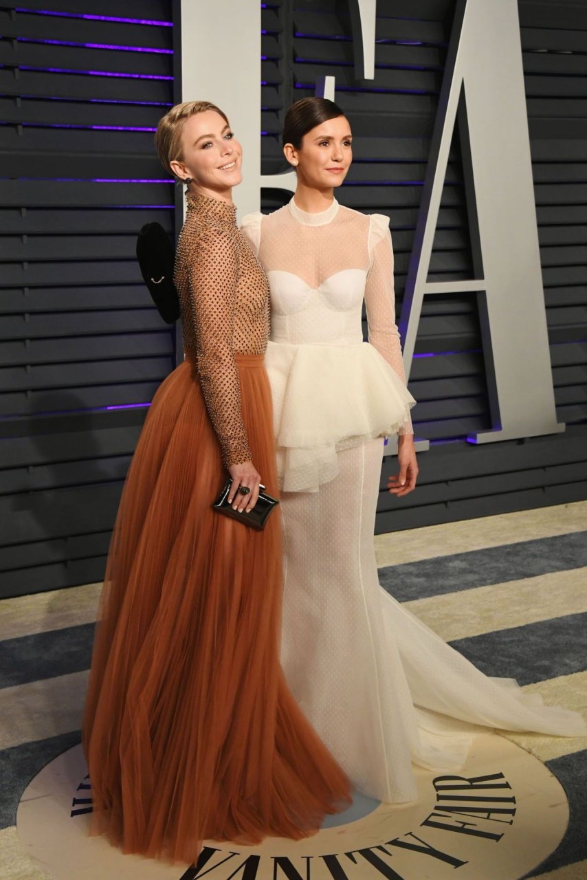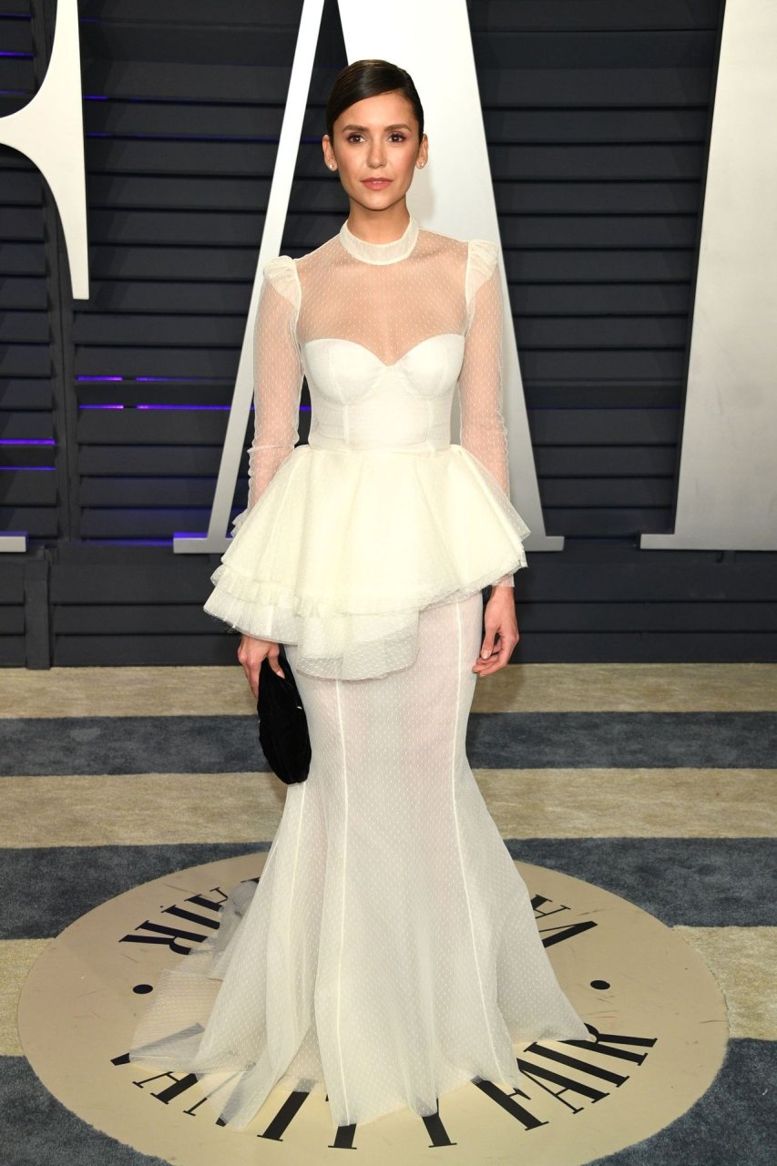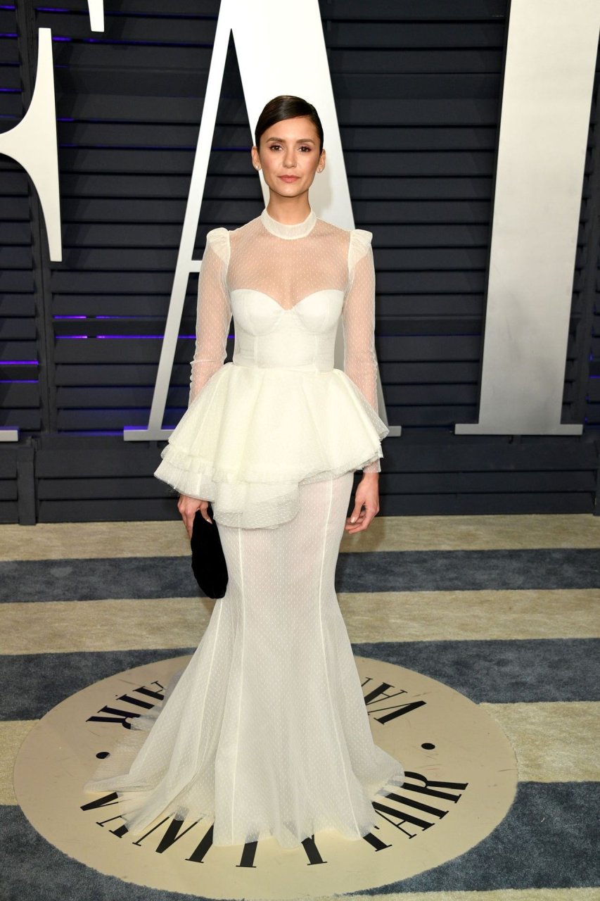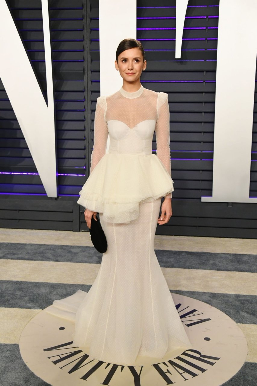 Nina Dobrev asiste a la Fiesta de los Oscar Vanity Fair 2019 en Beverly Hills, 24/02/2019. La actriz canadiense de 30 años apostó por el color blanco del vestido.