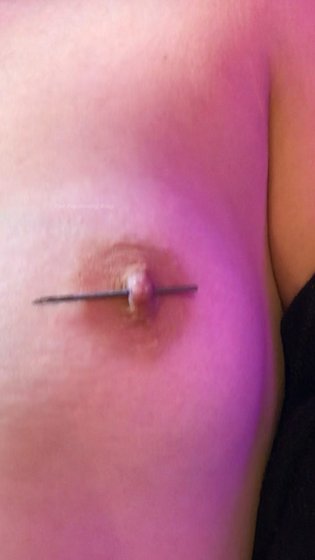 Nuestra querida hermana de Miley se está perforando los pezones, mostrando sus pequeños senos. También hay un gif del baño, donde está sin bragas.