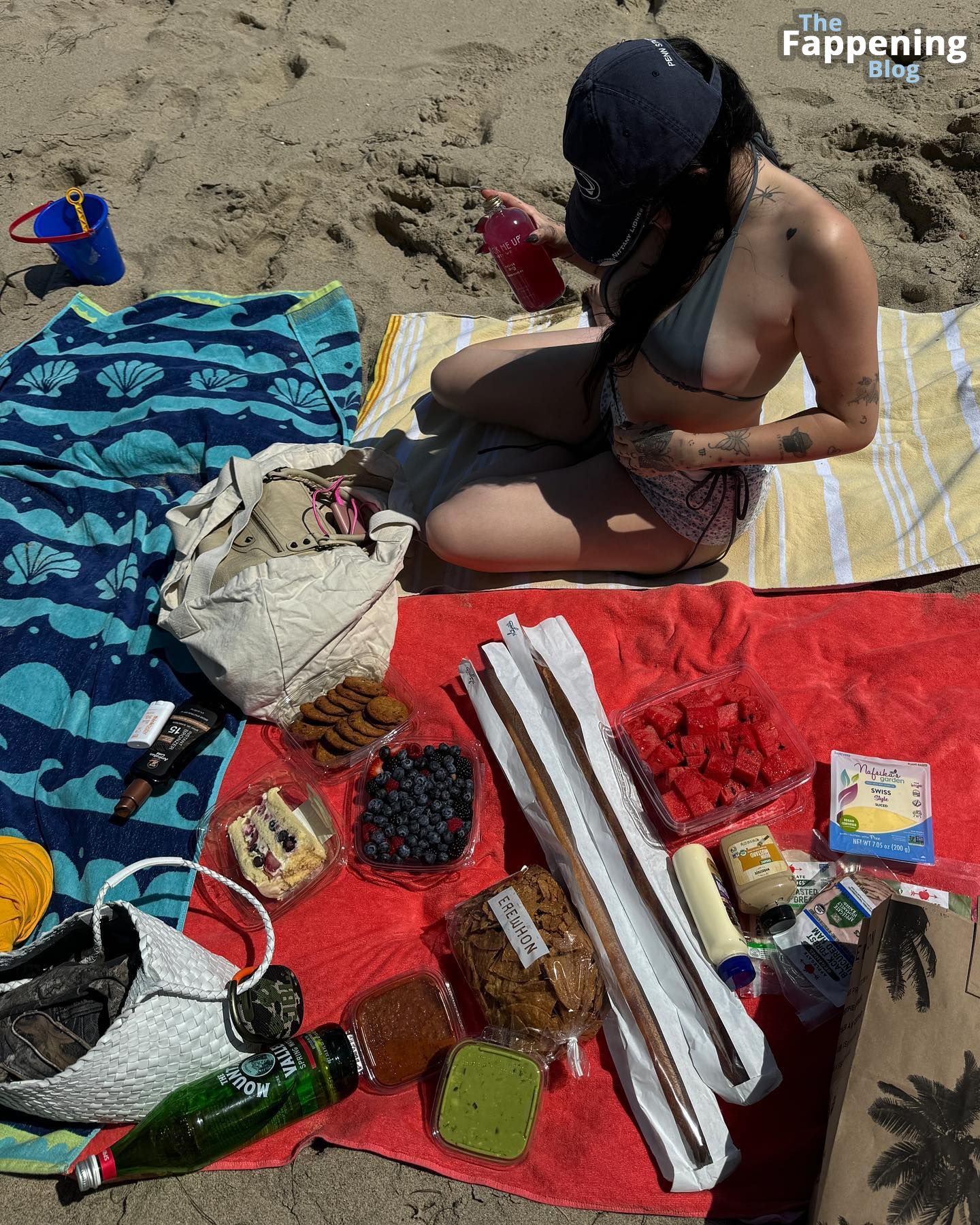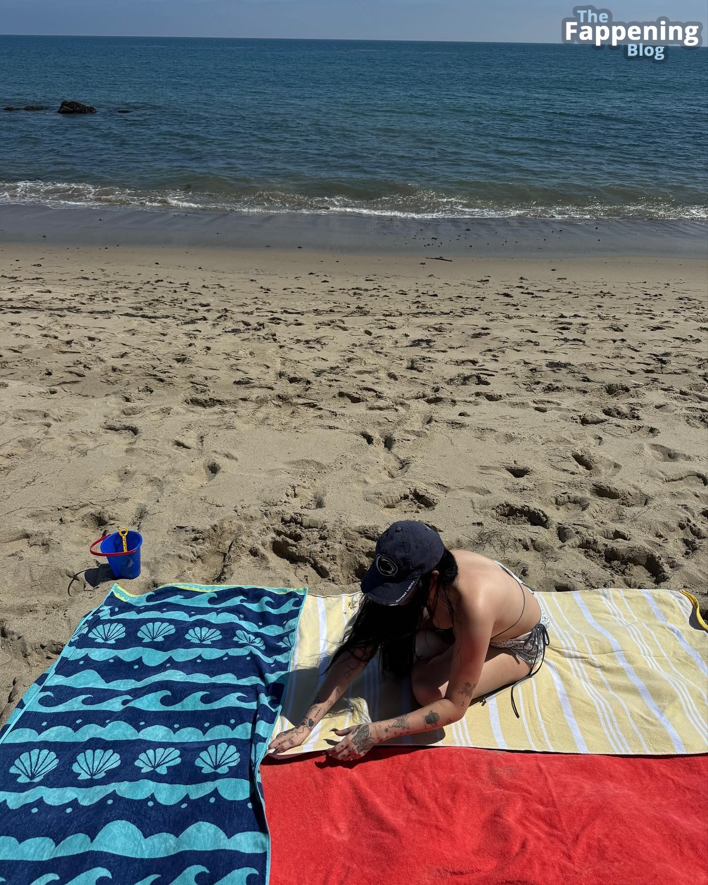 Noah Cyrus se ve muy atractiva con un diminuto bikini mientras pasea tranquilamente hacia el océano y luego se relaja con un picnic en la orilla.