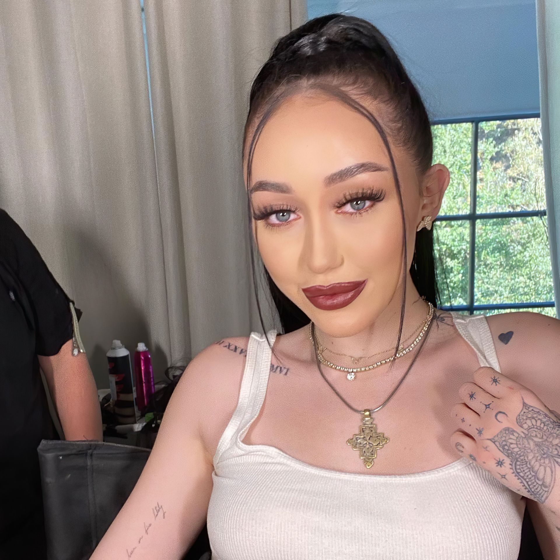 Jesús. ¿Por dónde empezar? Además de que su cabeza es demasiado grande para su cuerpo... su cara parece la de una persona trans joven intentando parecer una Cher vieja... coloración sifilítica alrededor de su área inguinal y los tatuajes que parecen hechos por Miley cuando estaba drogada... Parece que huele a orina de gato.