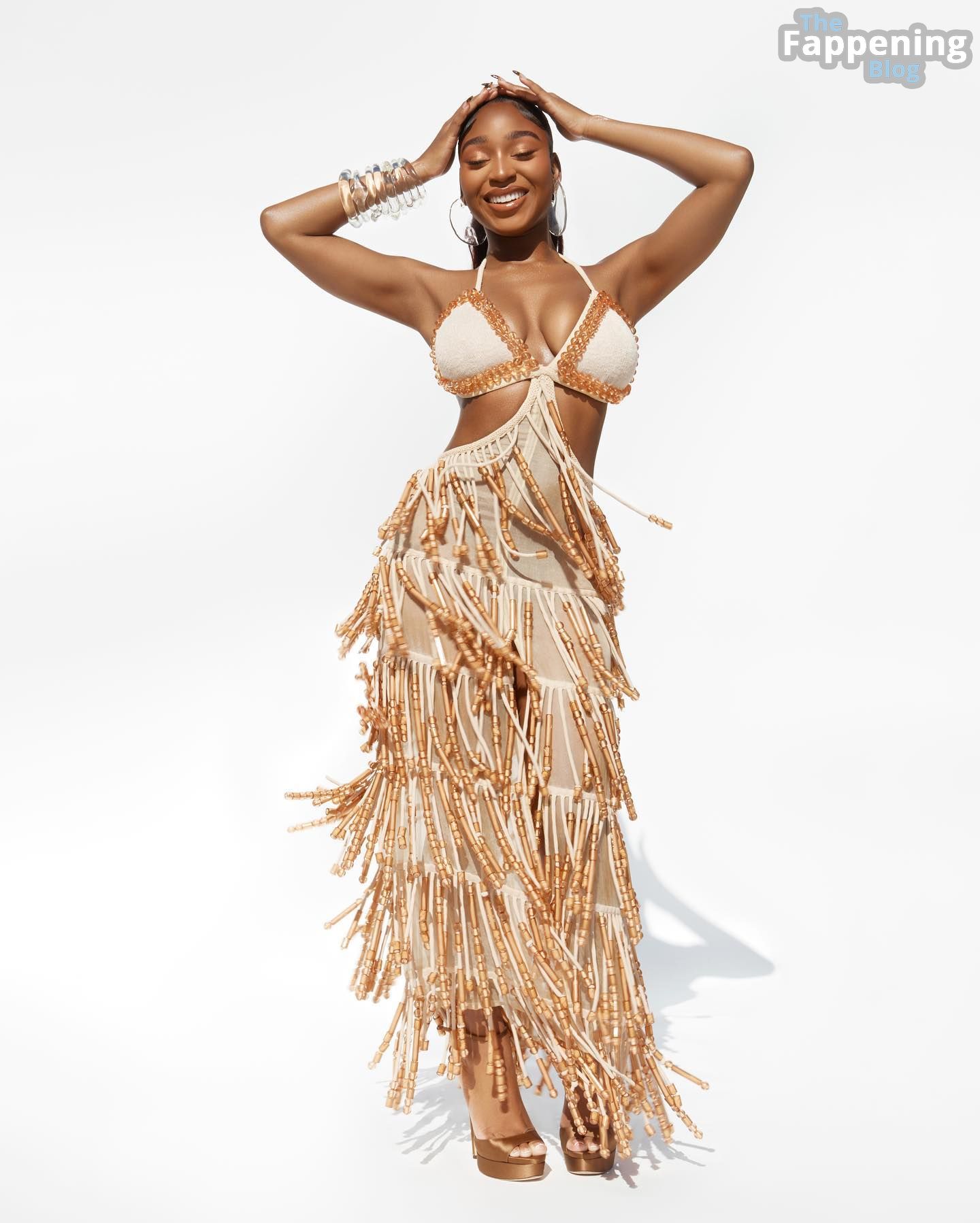 La cantante Normani muestra sus sensuales pechos en las fotos con bikini y atuendo a continuación.
