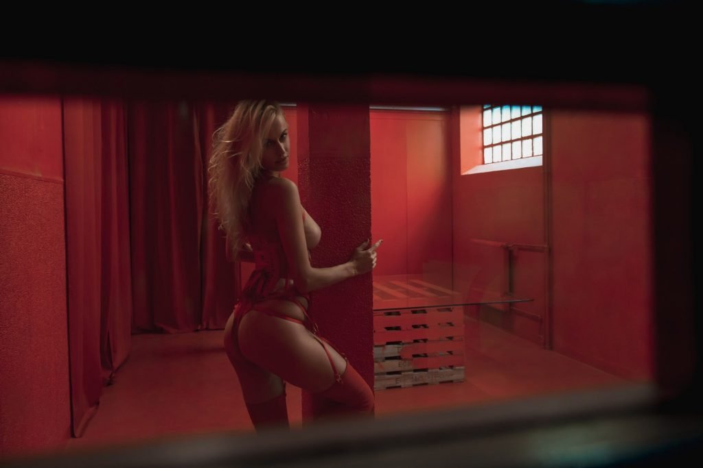 La modelo rubia Olga de Mar mostró su cuerpo perfecto en una sesión de fotos estilo BDSM realizada por Jeremy Gibbs (2018).