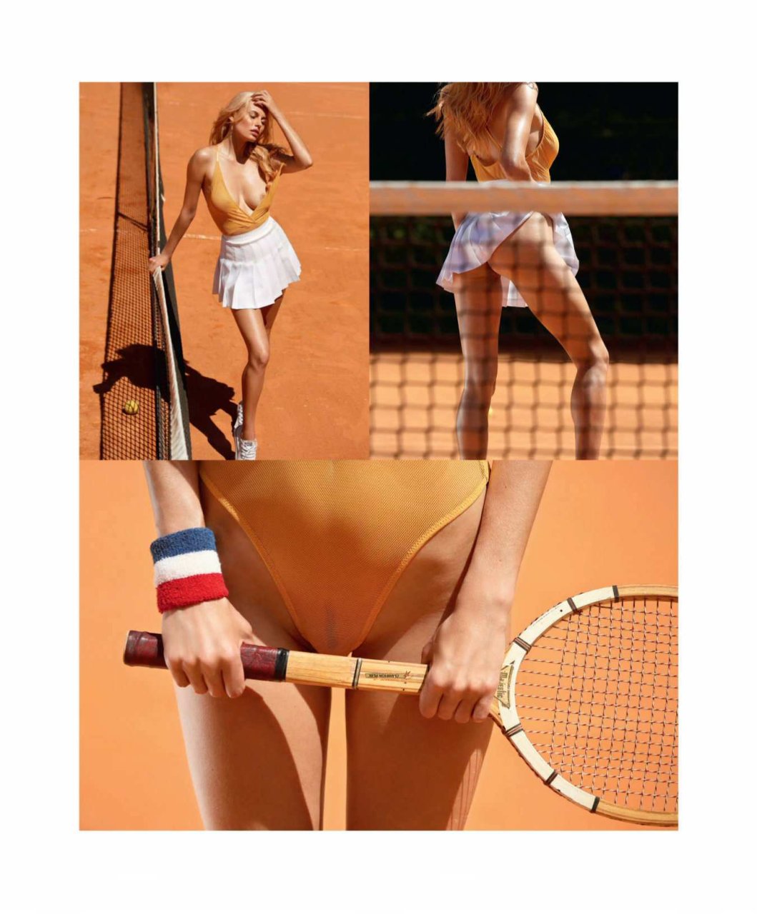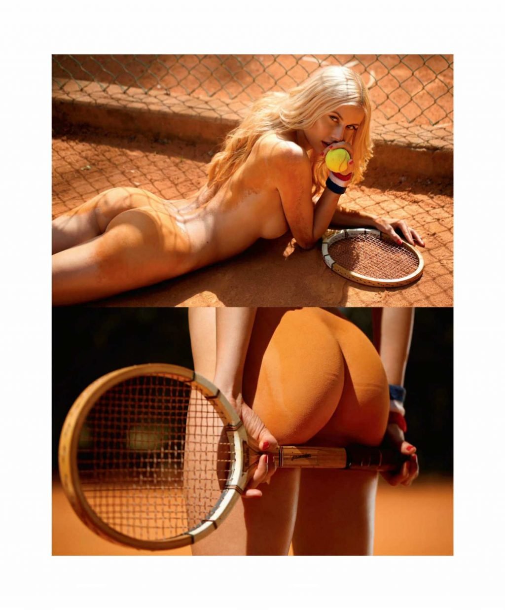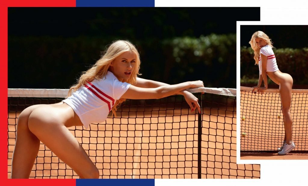 Model Olga de Mar decidió distraer a su oponente de juego con su hermoso cuerpo desnudo. Ella muestra sus grandes pechos y su impresionante cuerpo mojado en la cancha de tenis en la nueva sesión de fotos erótica para la revista Playboy (2018).