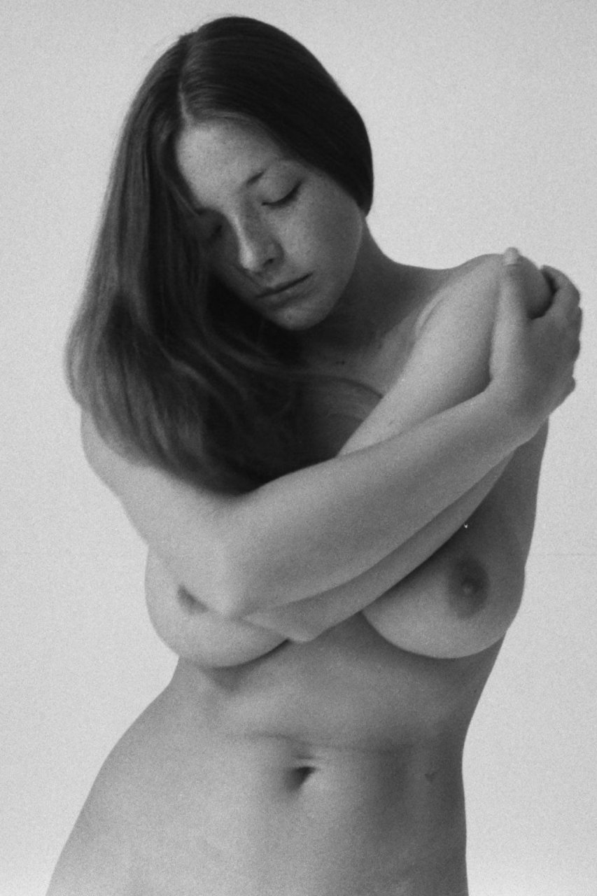Mira las fotos en blanco y negro del año pasado de Olga Kobzar desnuda por Daria Alexandrova. La modelo rusa mostró su desnudo frontal completo con grandes pechos y su vagina con vello en esta sesión de estudio.