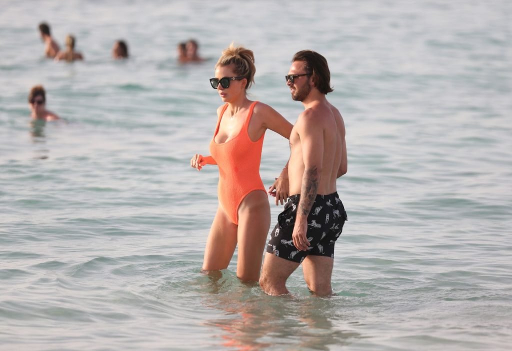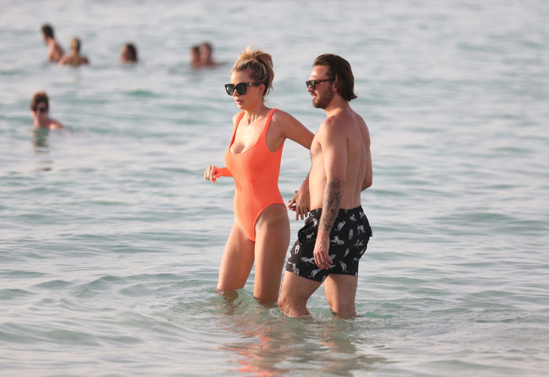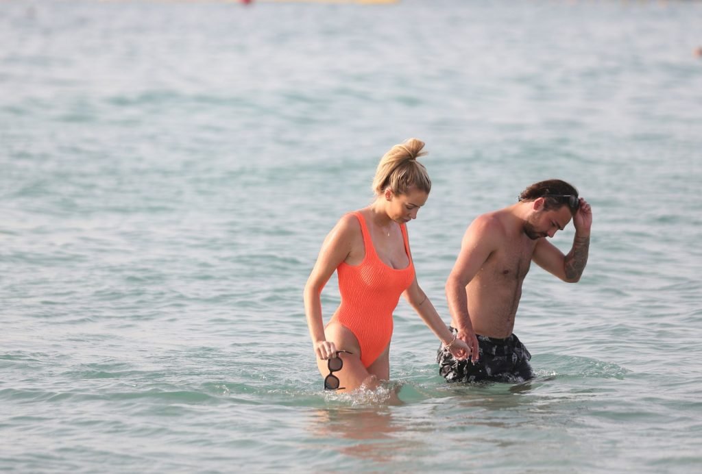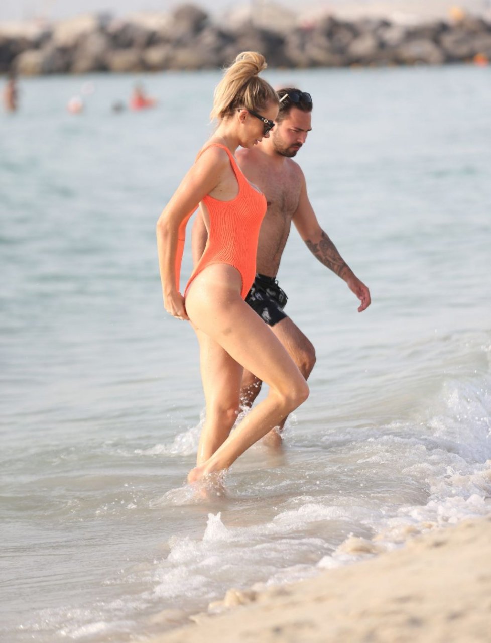 Olivia Attwood y su novio futbolista intermitente Bradley Dack fueron vistos de vacaciones en Dubái, 05/11/2019. Olivia fue vista luciendo su envidiable cuerpo con un bikini naranja.