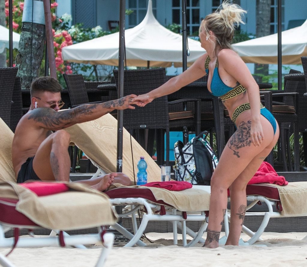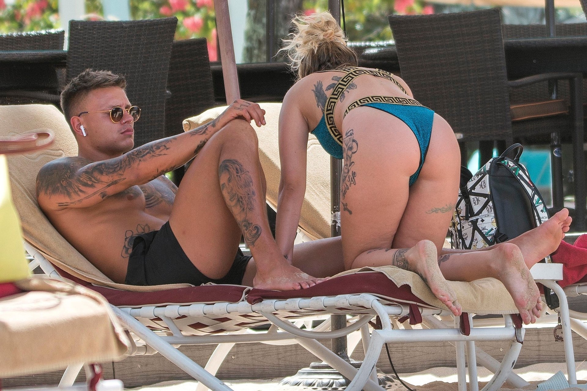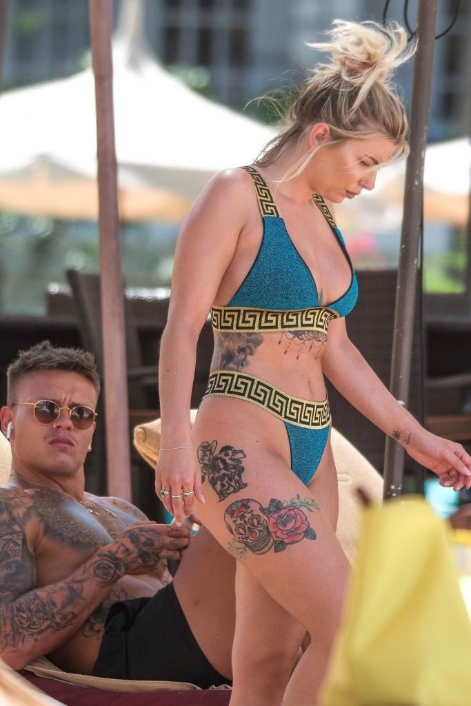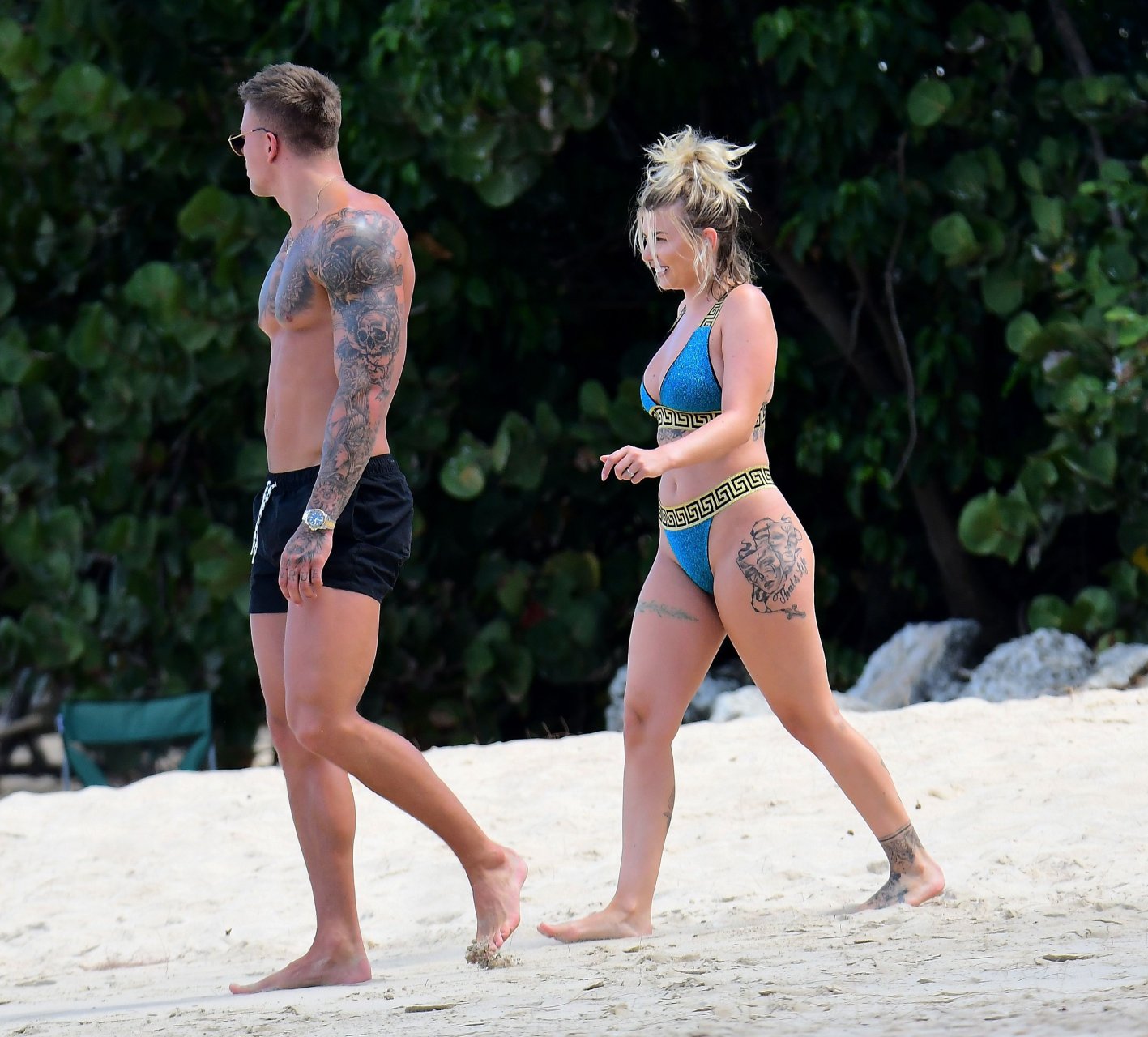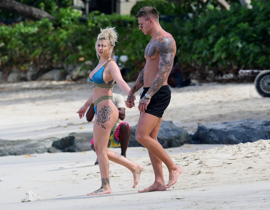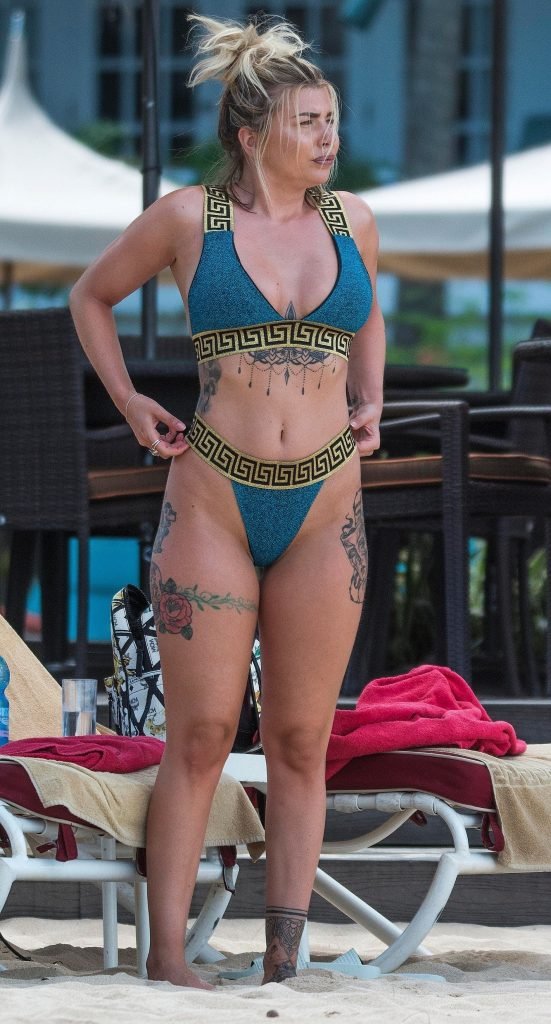 La estrella de Love Island y modelo Olivia Buckland pasó tiempo con su novio Alex Bowen en la playa de Barbados, 19/03/2018. Olivia Buckland mostró su gran trasero con un bikini azul con adorno. Está posando para los paparazzi.